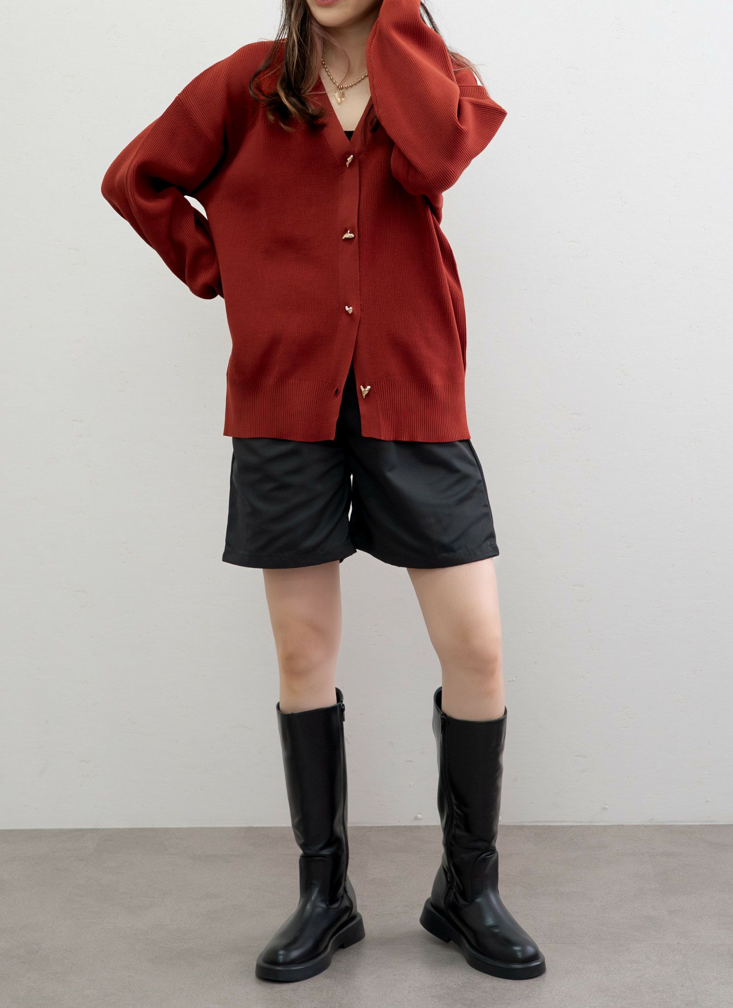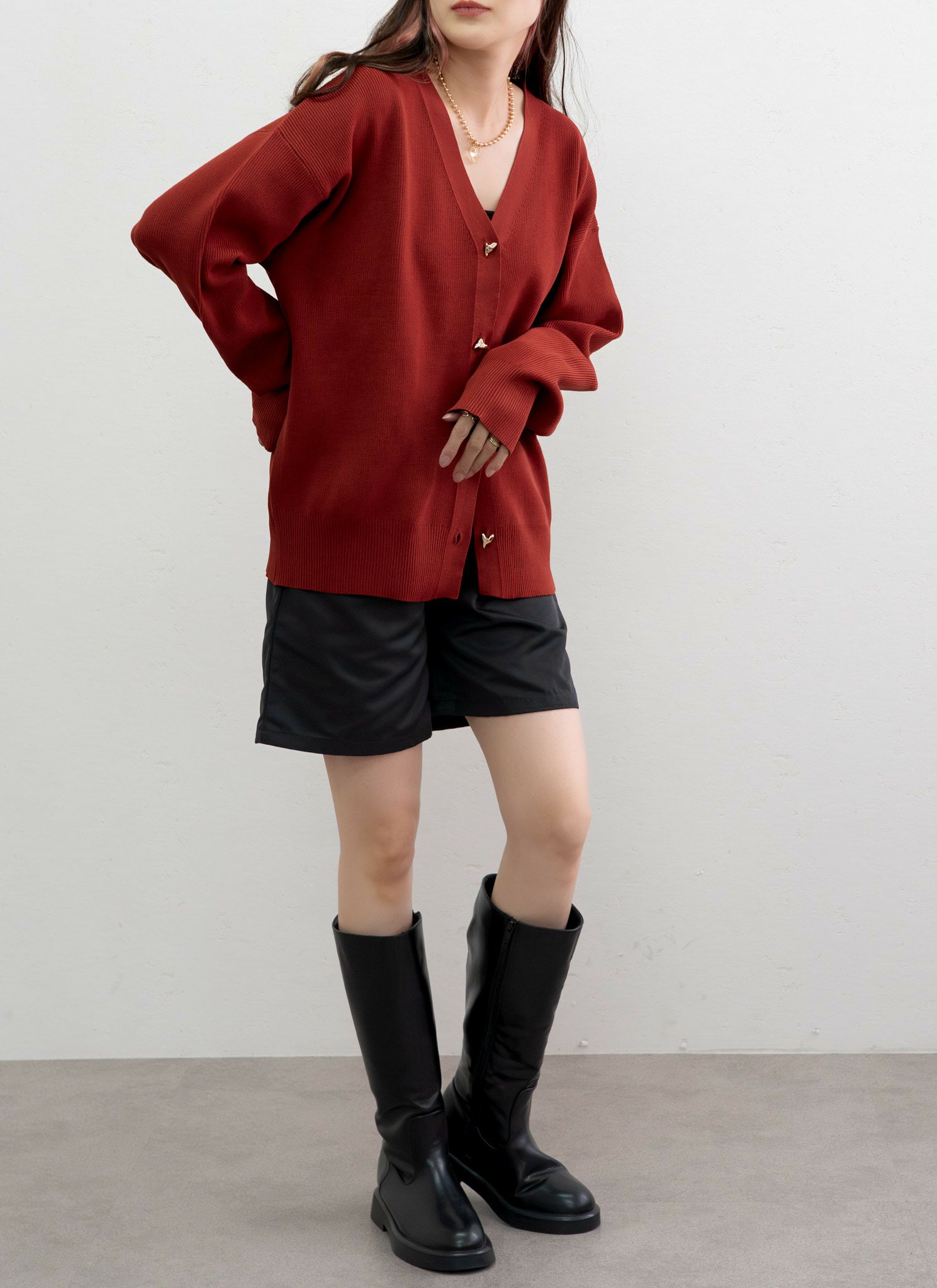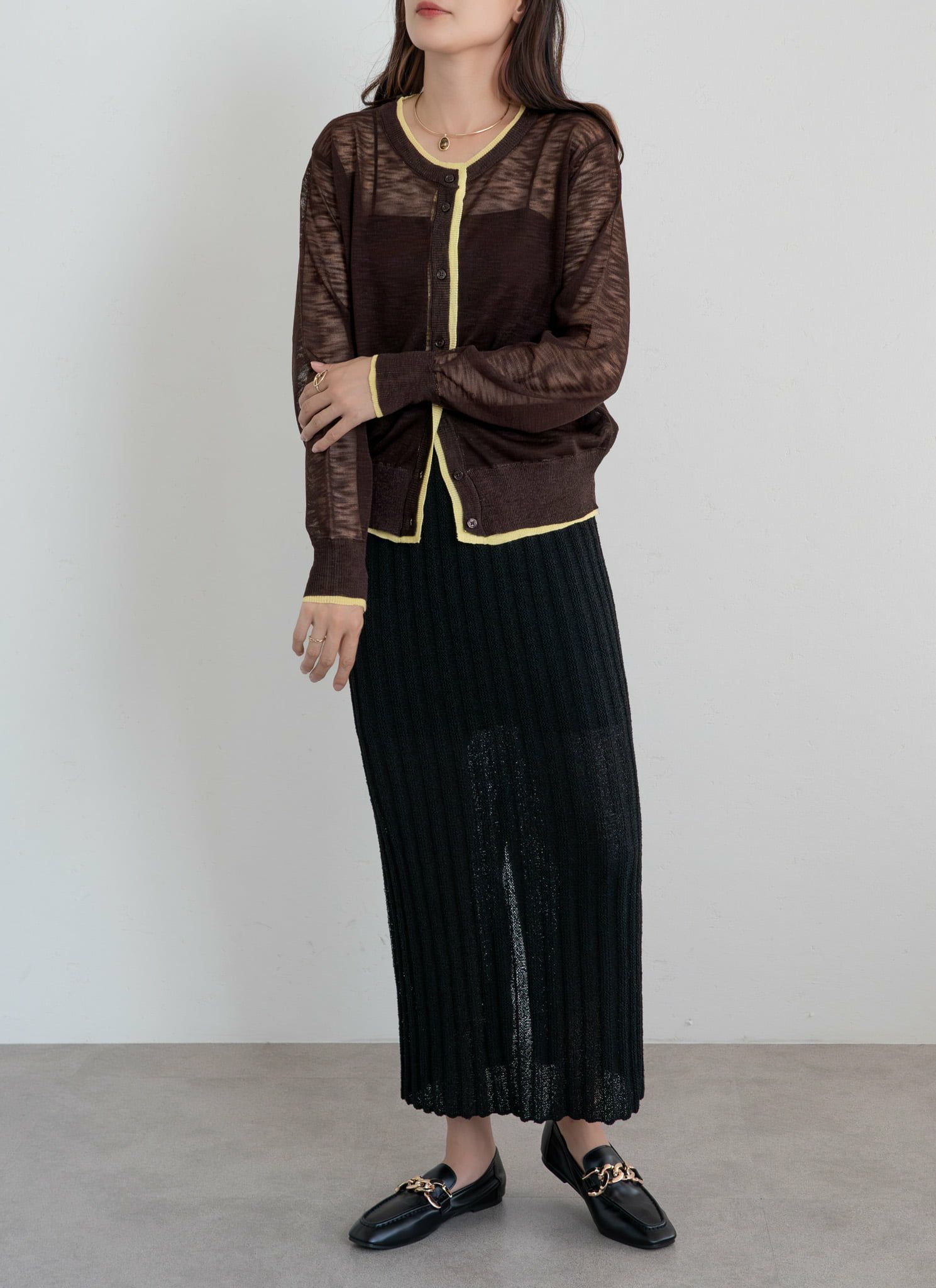 revoam【きちんと感とトレンドを両立する、大人のためのレイヤードニット】 襟レイヤードニットカーデ