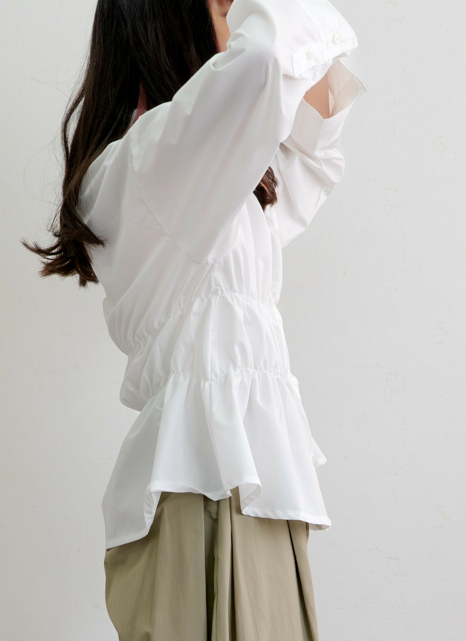 revoam【襟元のフリルで、視線を惹きつける。大人の甘さを引き出す、主役級映えシャツ】 ブロードフリルブラウス