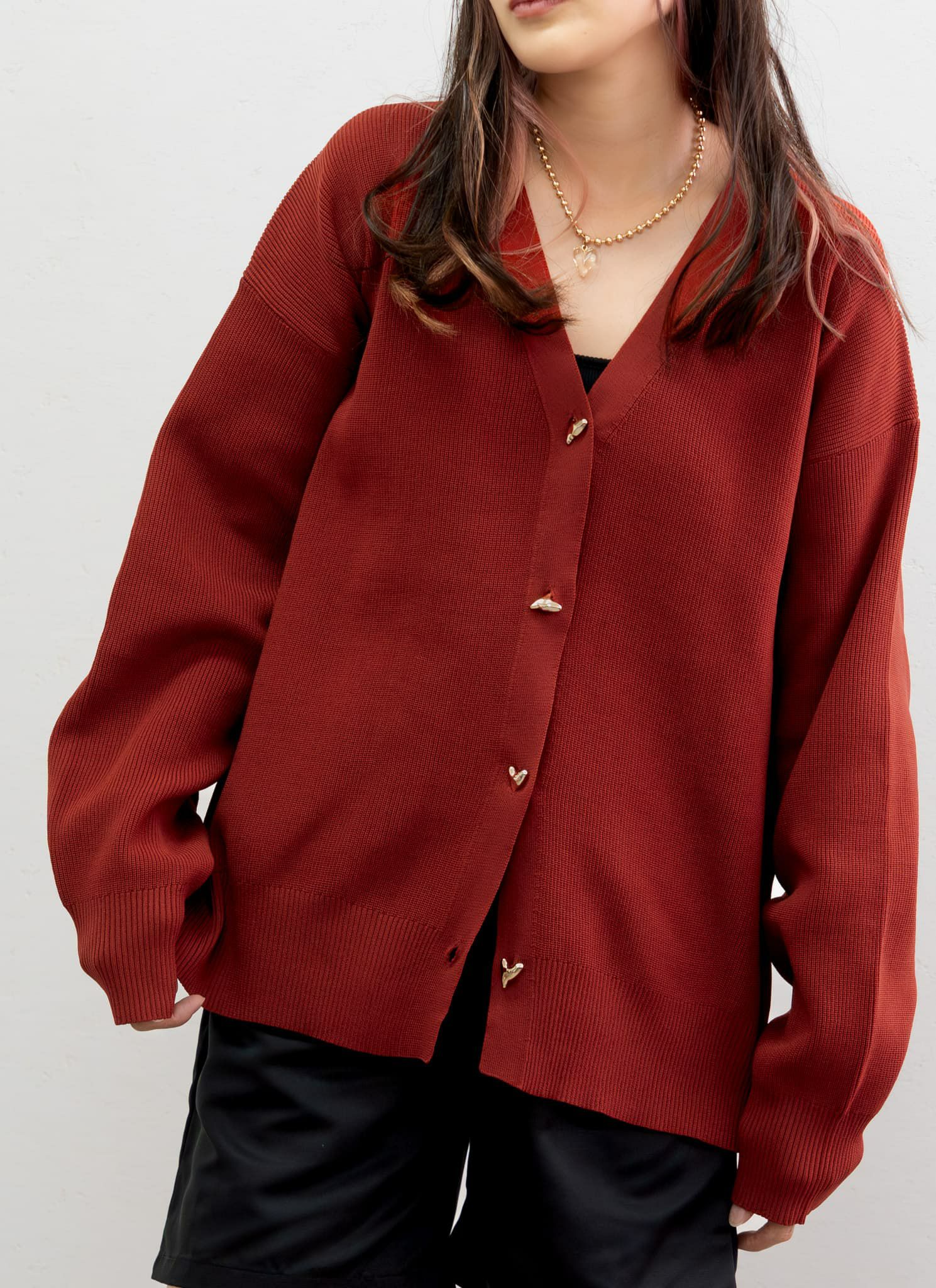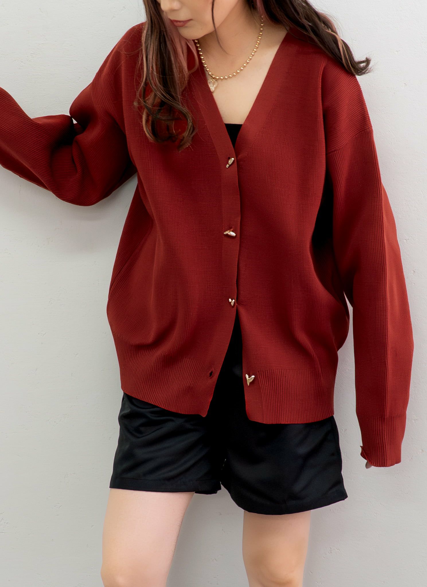 revoam【アクセサリーいらずの華やかさ。大きなメタルボタンが主役の、品格カーディガン。】 メタル釦クルーネックカーデ