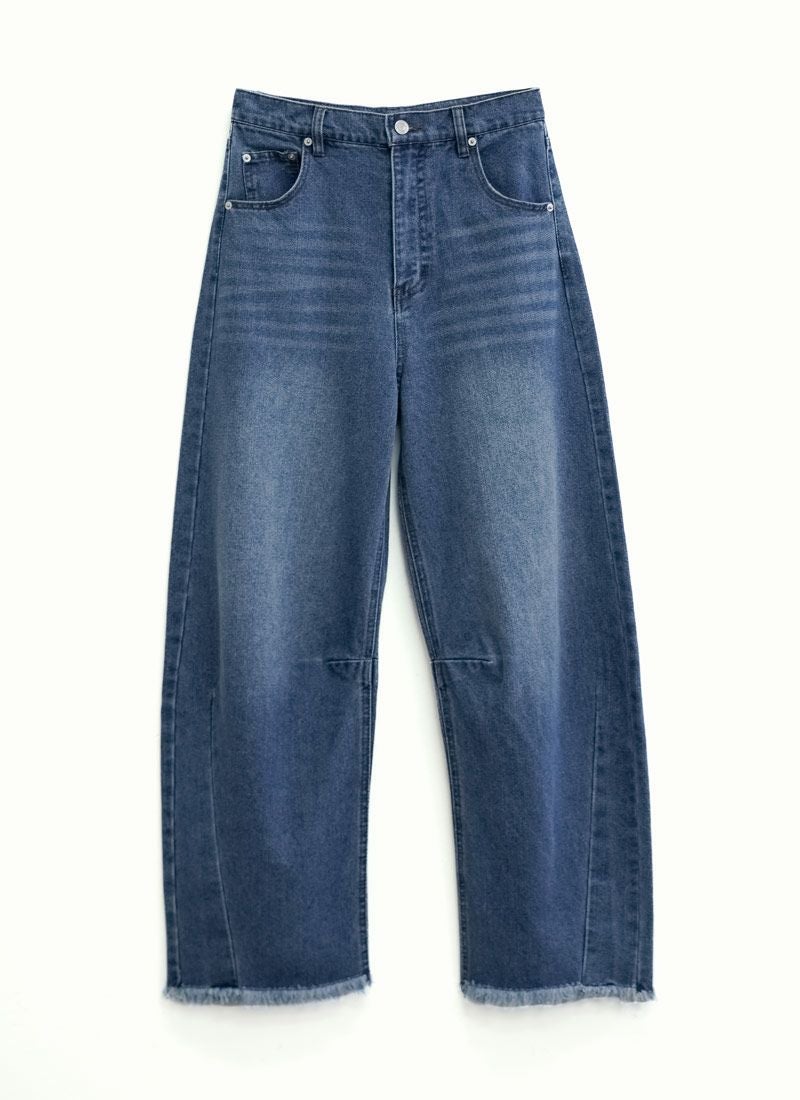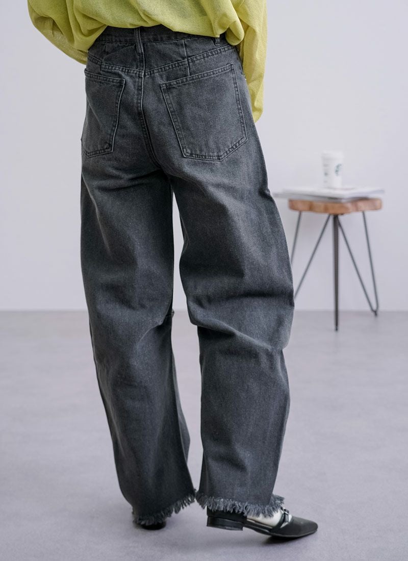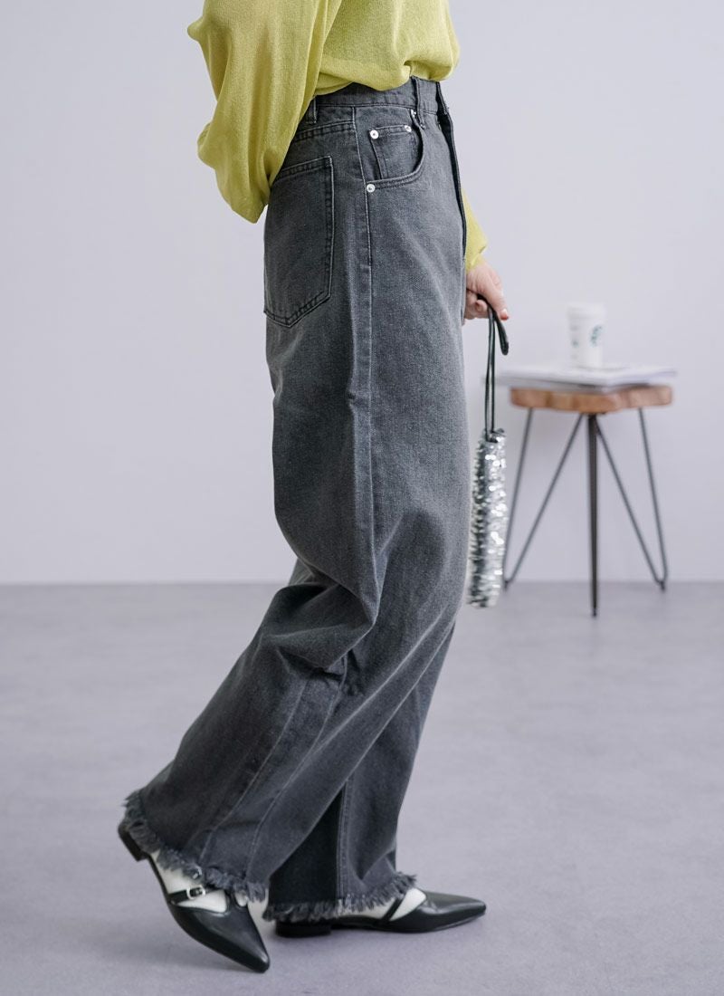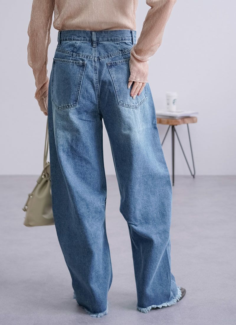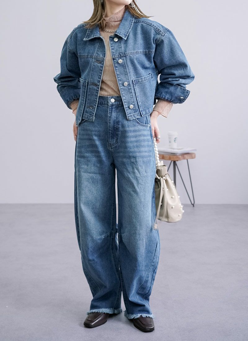 revoam【抜け感と女らしさを叶えるカーブデニム。ゆるっと感と絶妙シルエットで、大人のデニムコーデを格上げ】 【10%OFF】裾フリンジデニムカーブパンツ