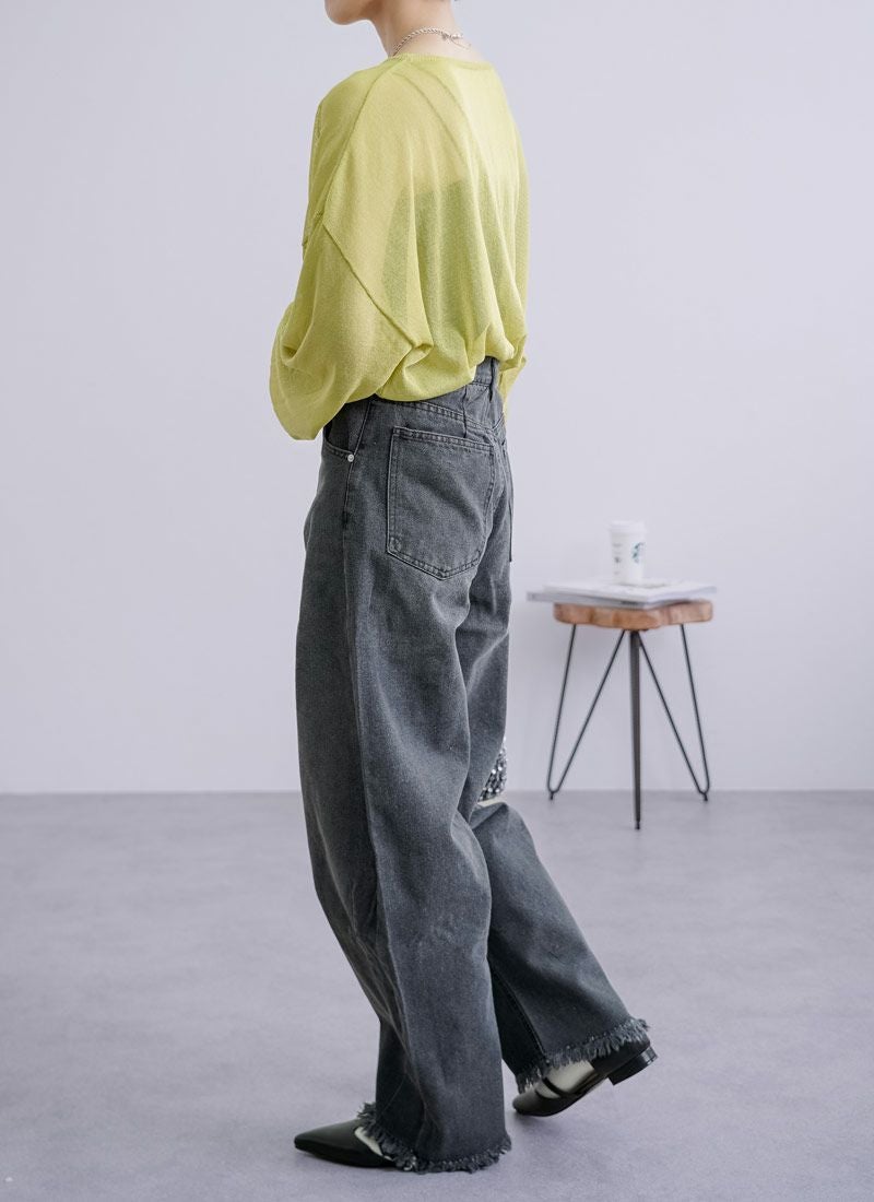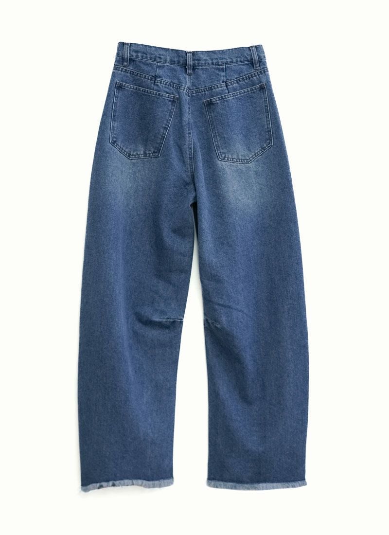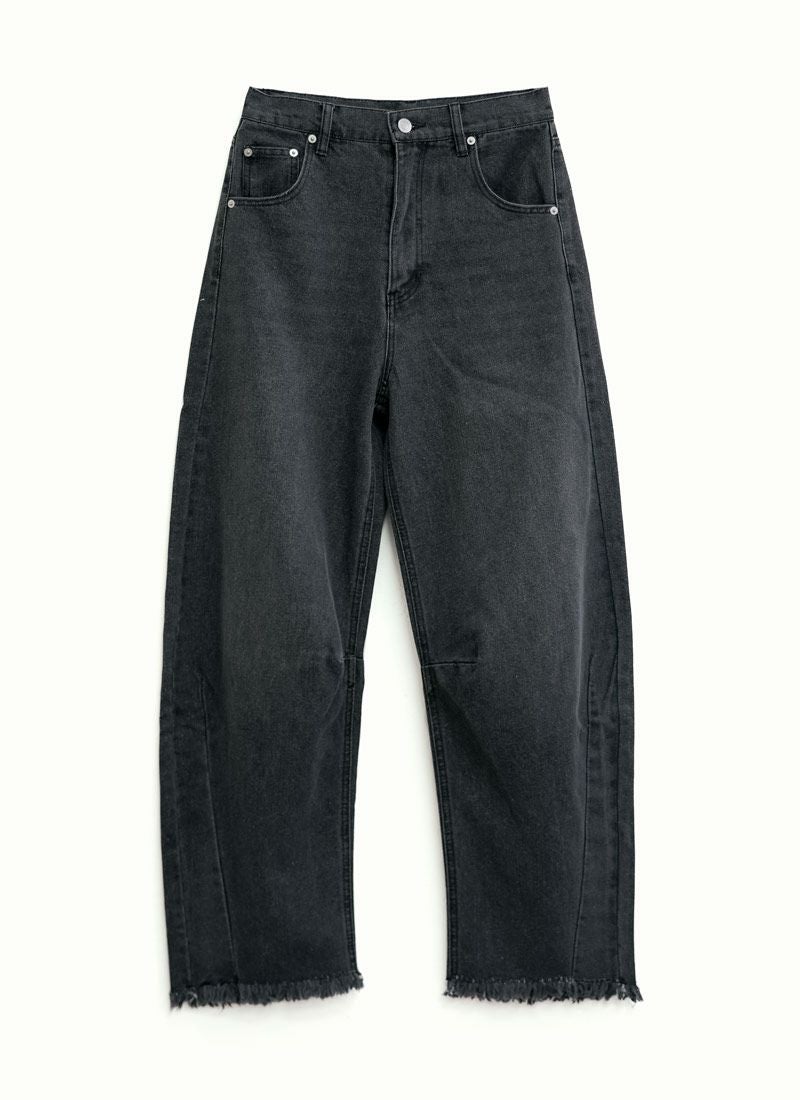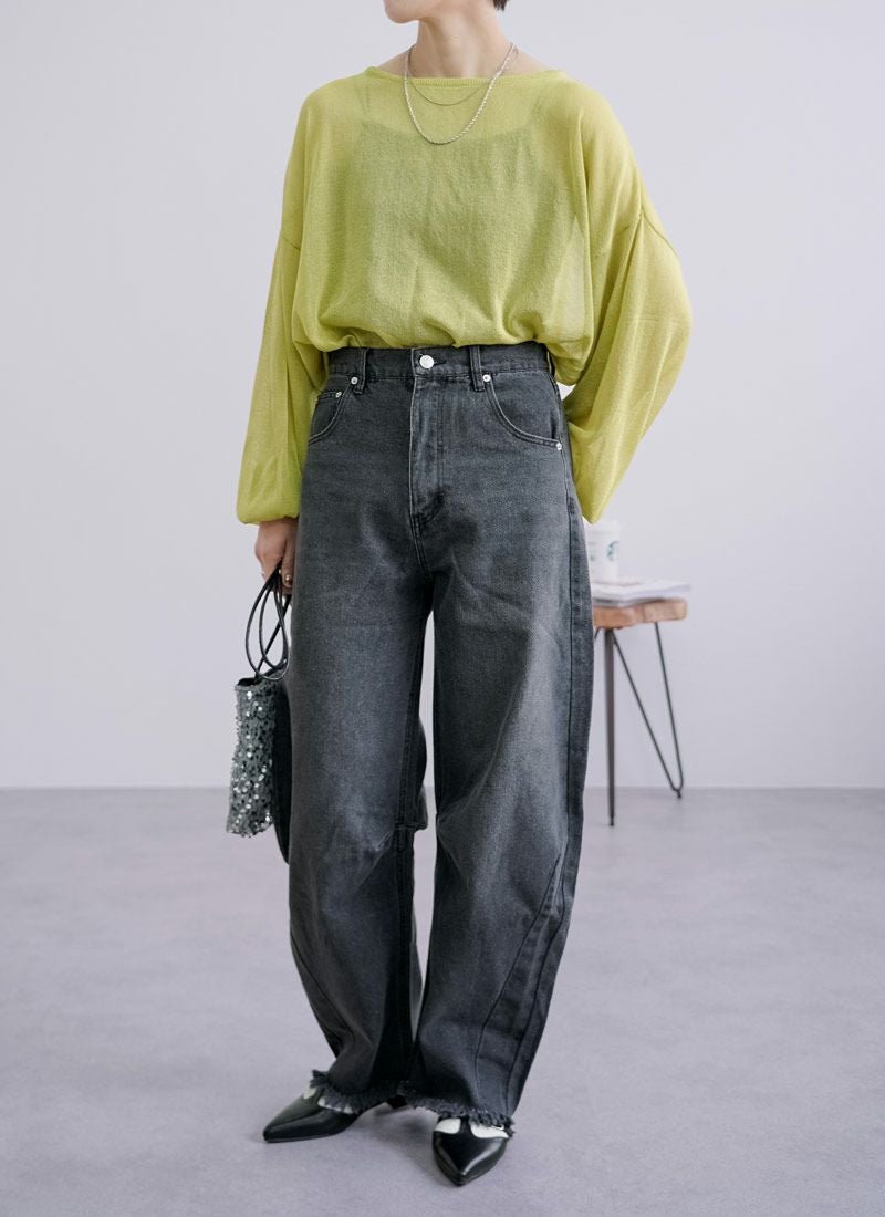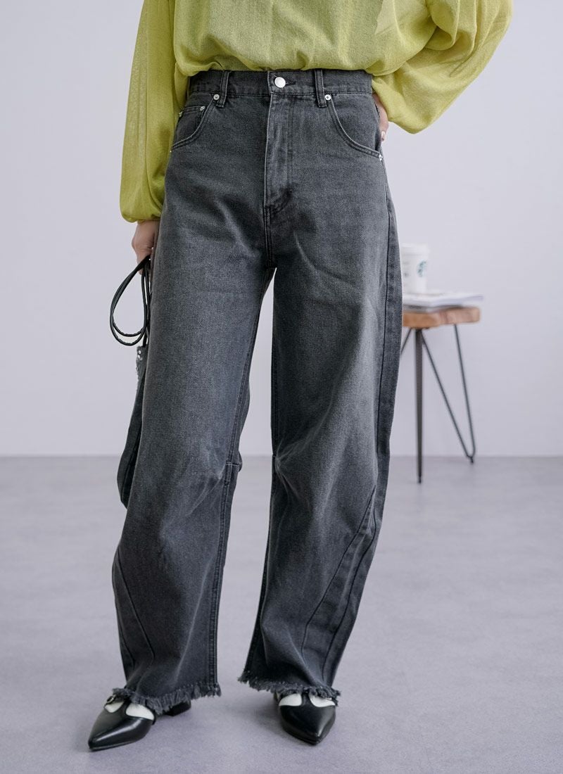 revoam【抜け感と女らしさを叶えるカーブデニム。ゆるっと感と絶妙シルエットで、大人のデニムコーデを格上げ】 【10%OFF】裾フリンジデニムカーブパンツ