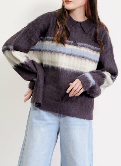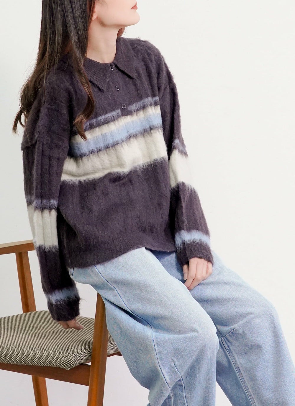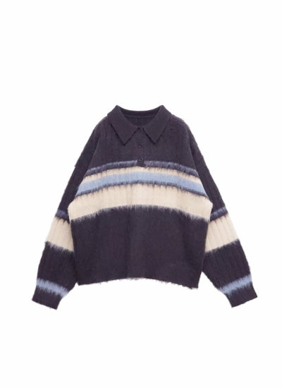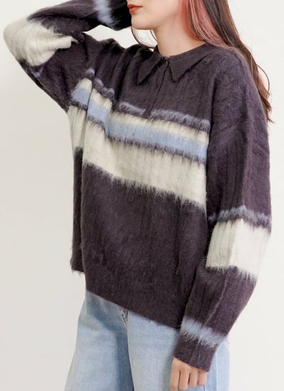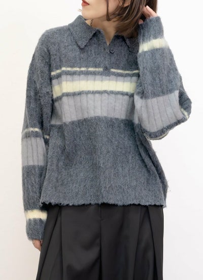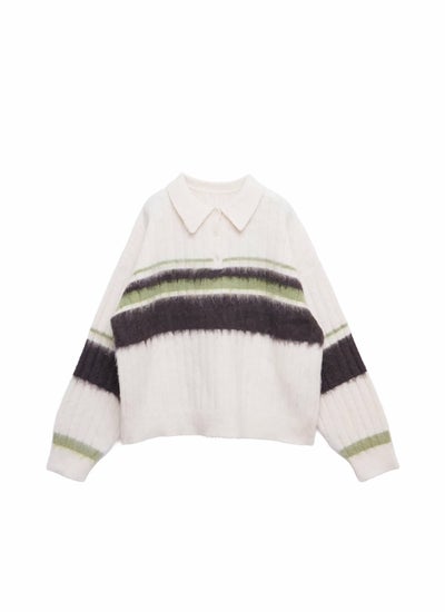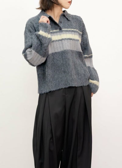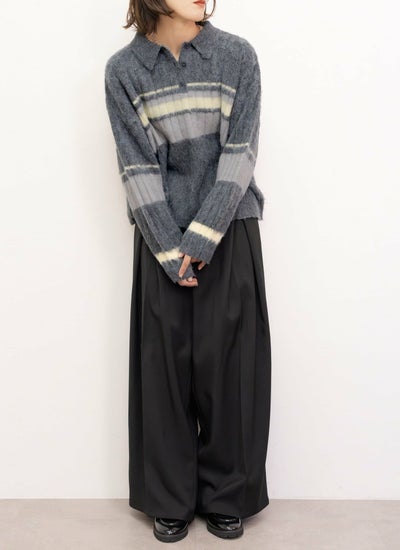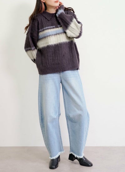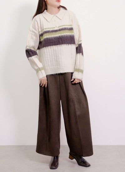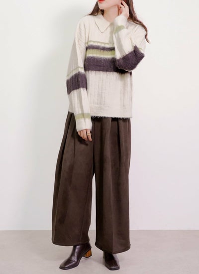 ふんわりとした起毛感がシーズンムードを高める襟付きニットプルオーバー。