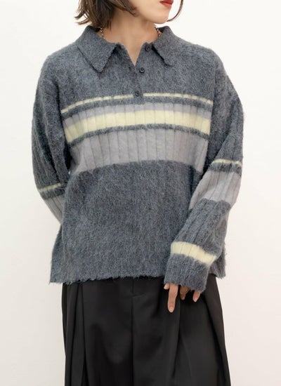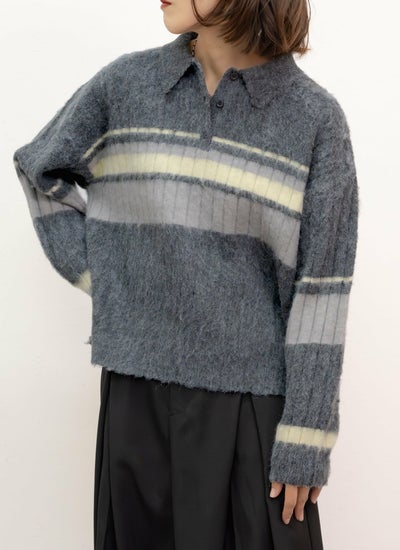 revoam【配色ボーダーが映える、主役級ポロニット】 【20%OFF】マルチボーダーポロニット