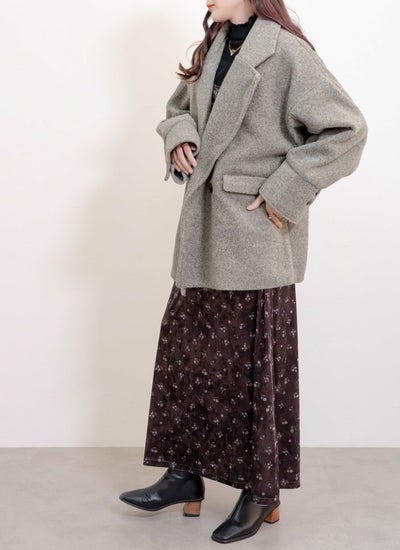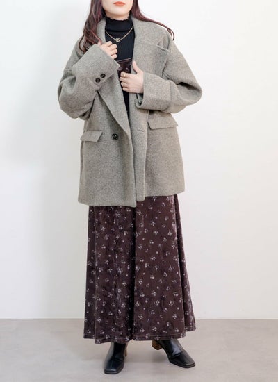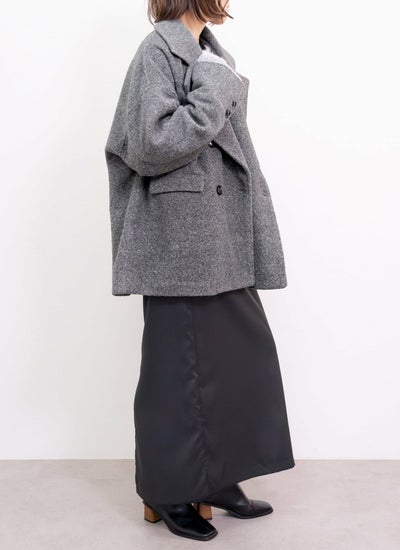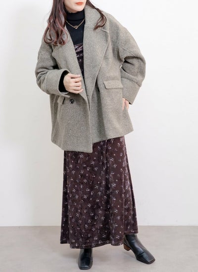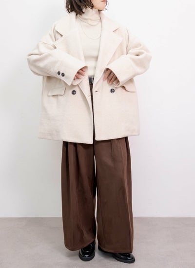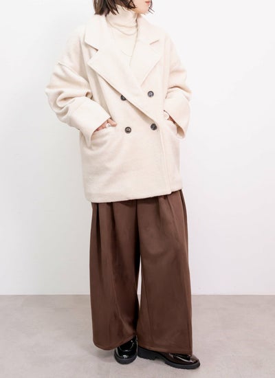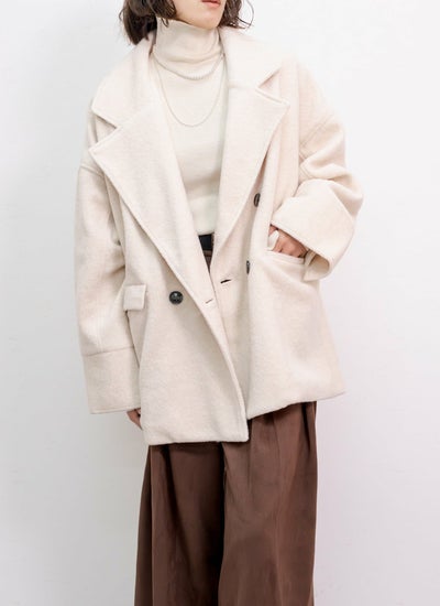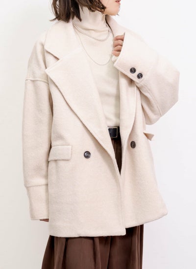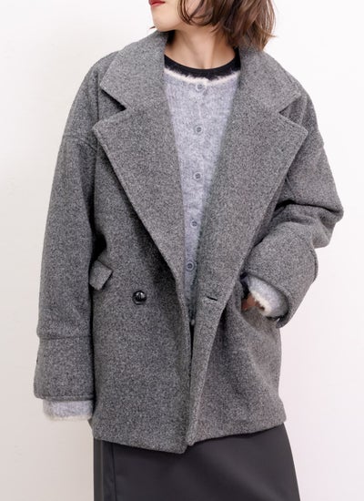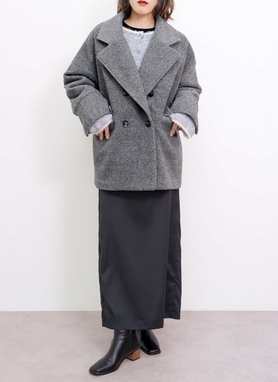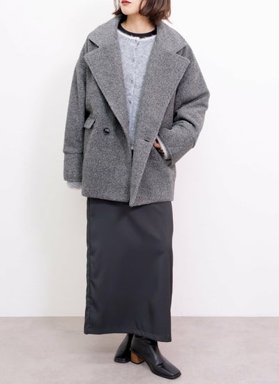 柔らかい肌触りとふんわり軽いのが特徴のスライバーニット素材のダブルコート。