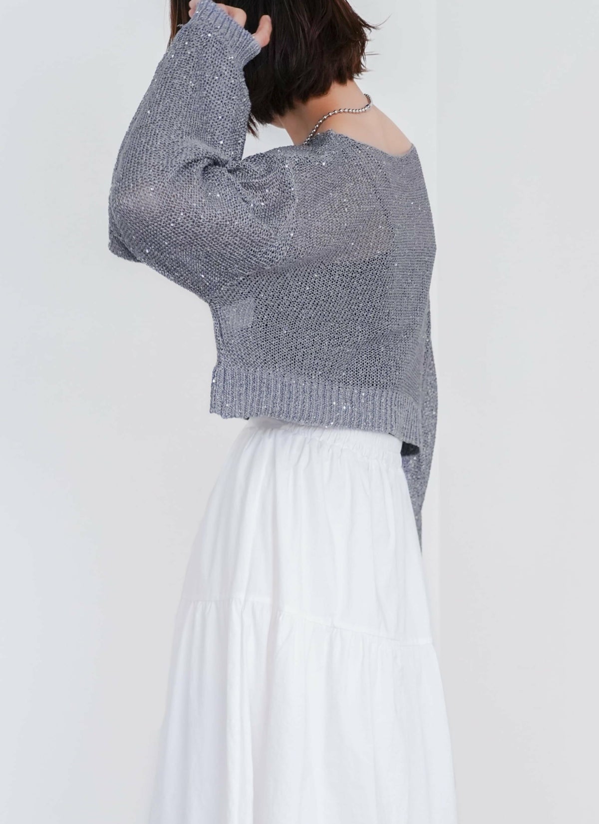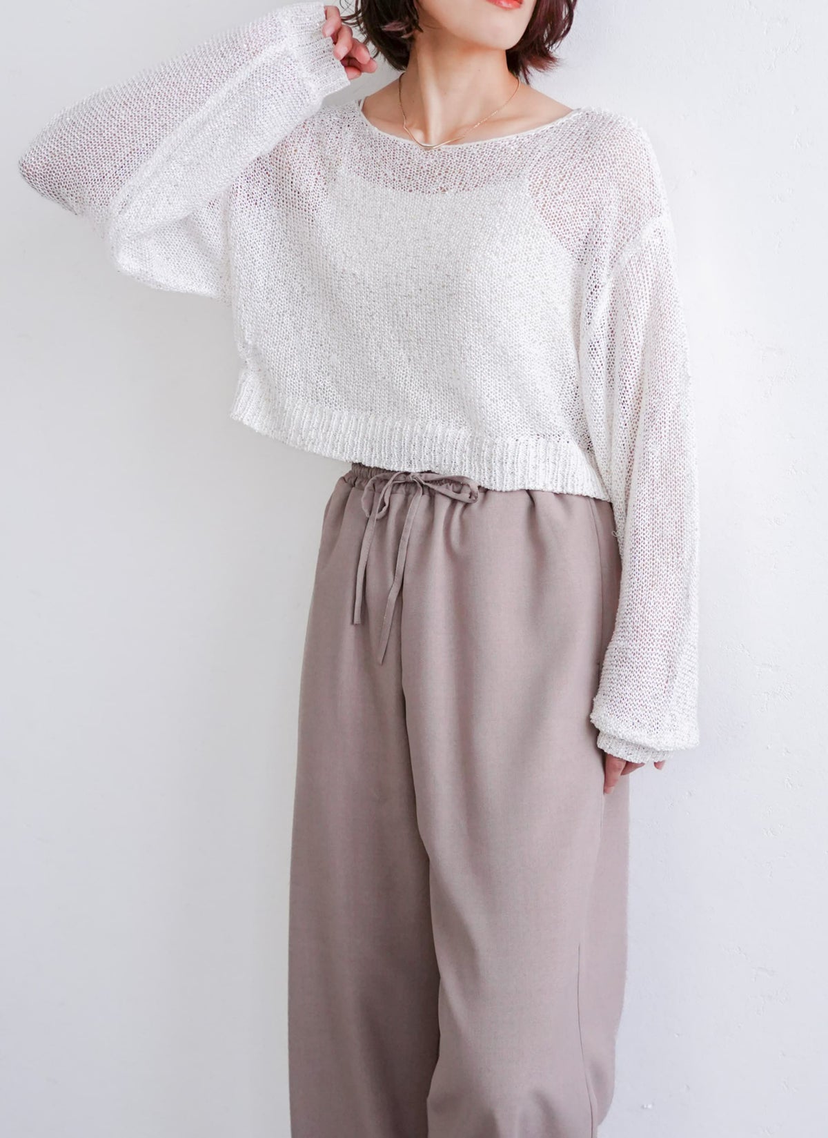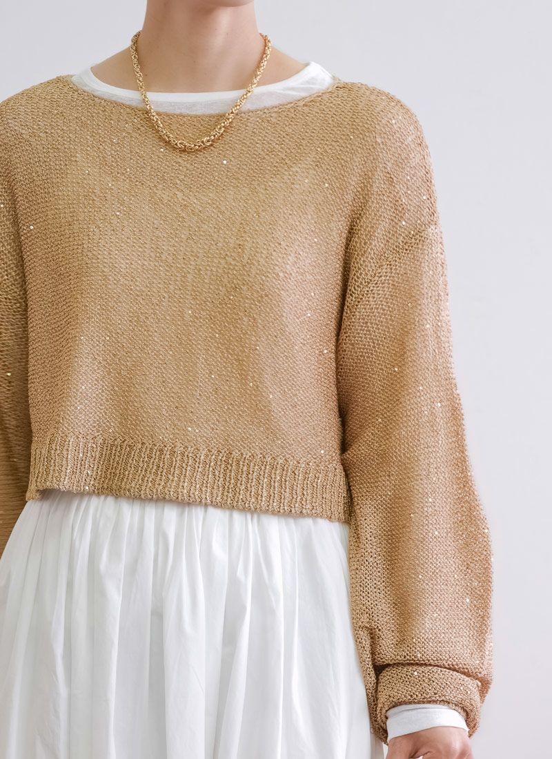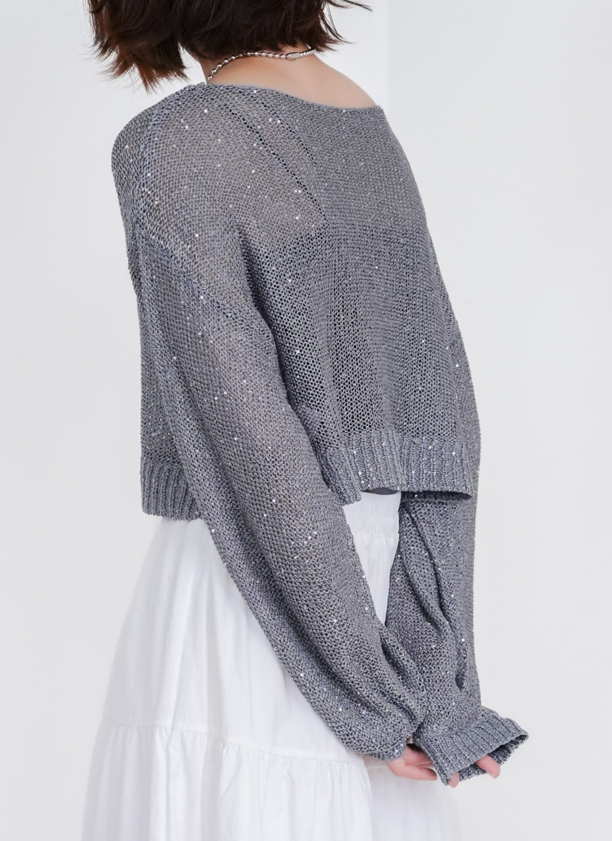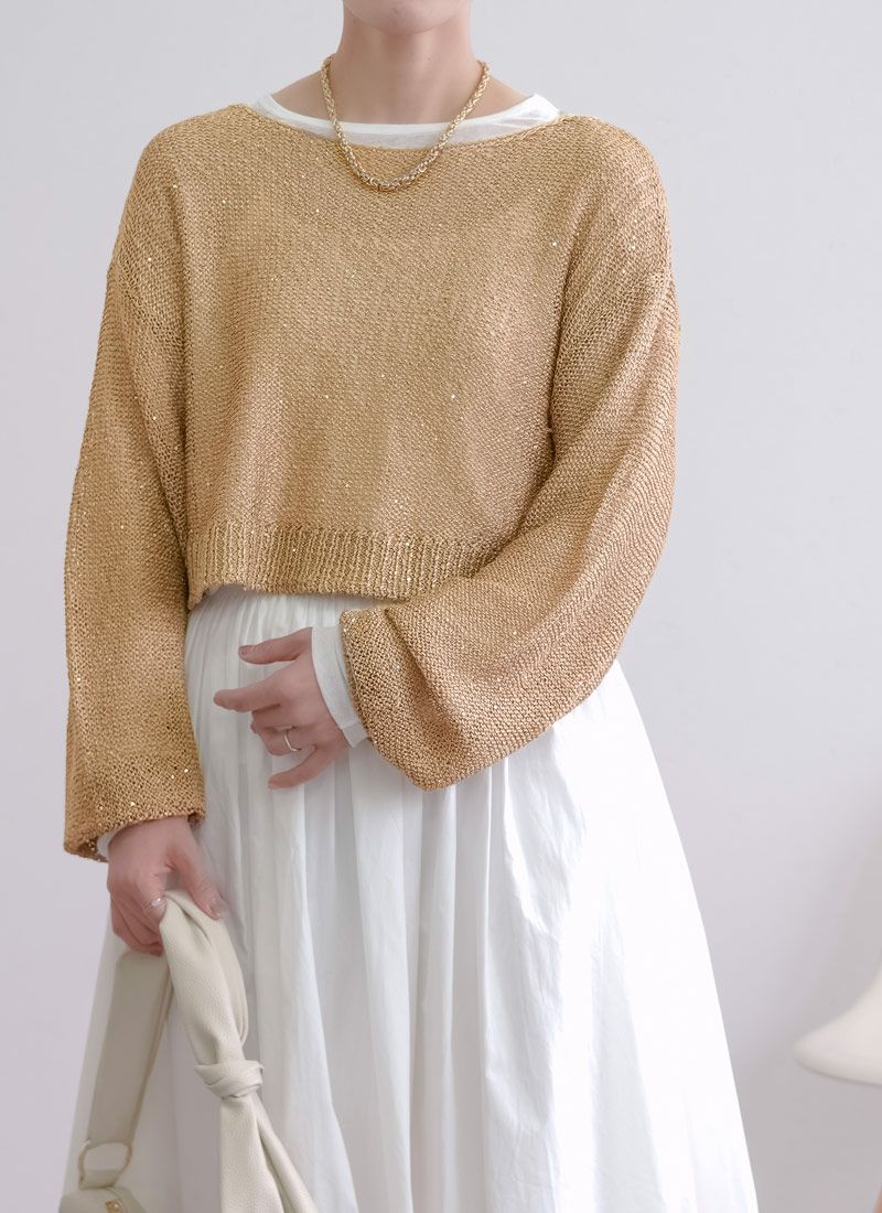 revoam【さりげないラメ感が、大人の可愛さを引き立てる。ゆるっとシルエットのショートニット】 【50%OFF】ラメスパンコールショートニット