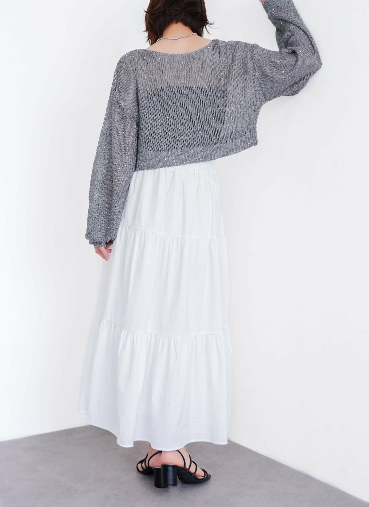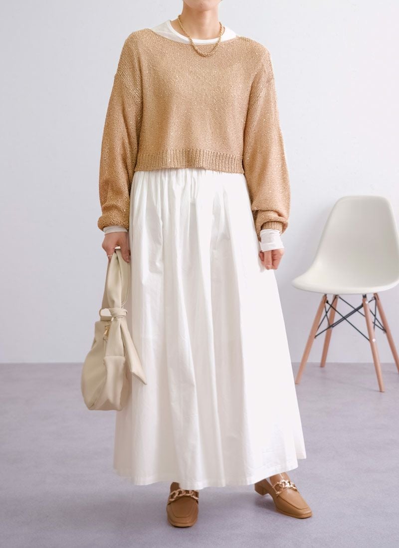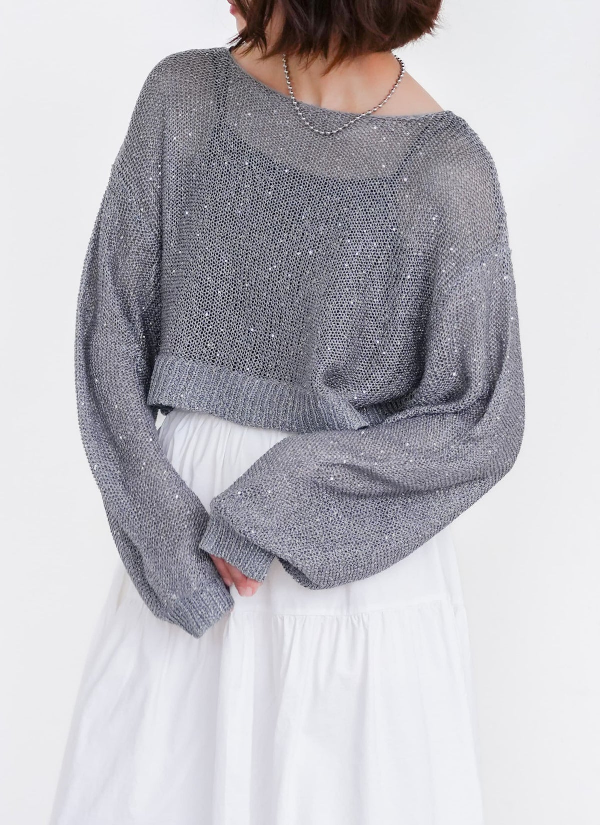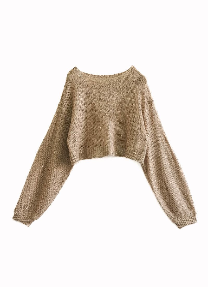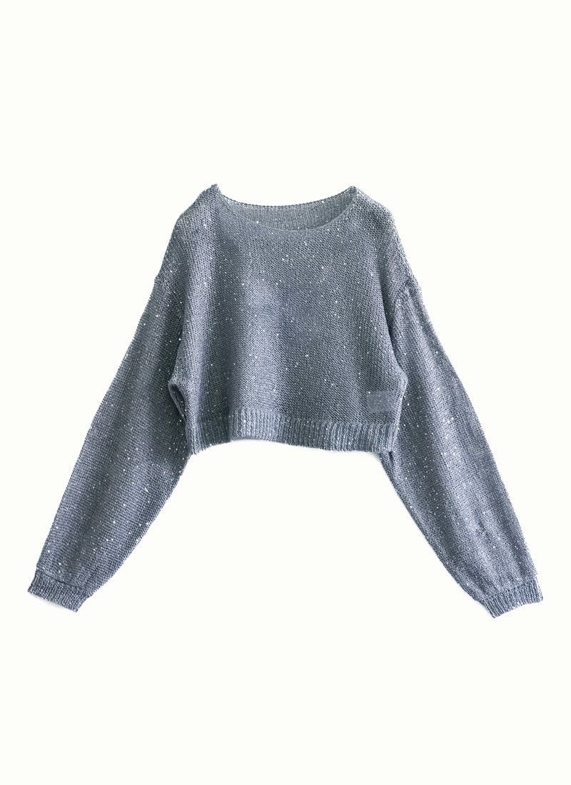 revoam【さりげないラメ感が、大人の可愛さを引き立てる。ゆるっとシルエットのショートニット】 【50%OFF】ラメスパンコールショートニット