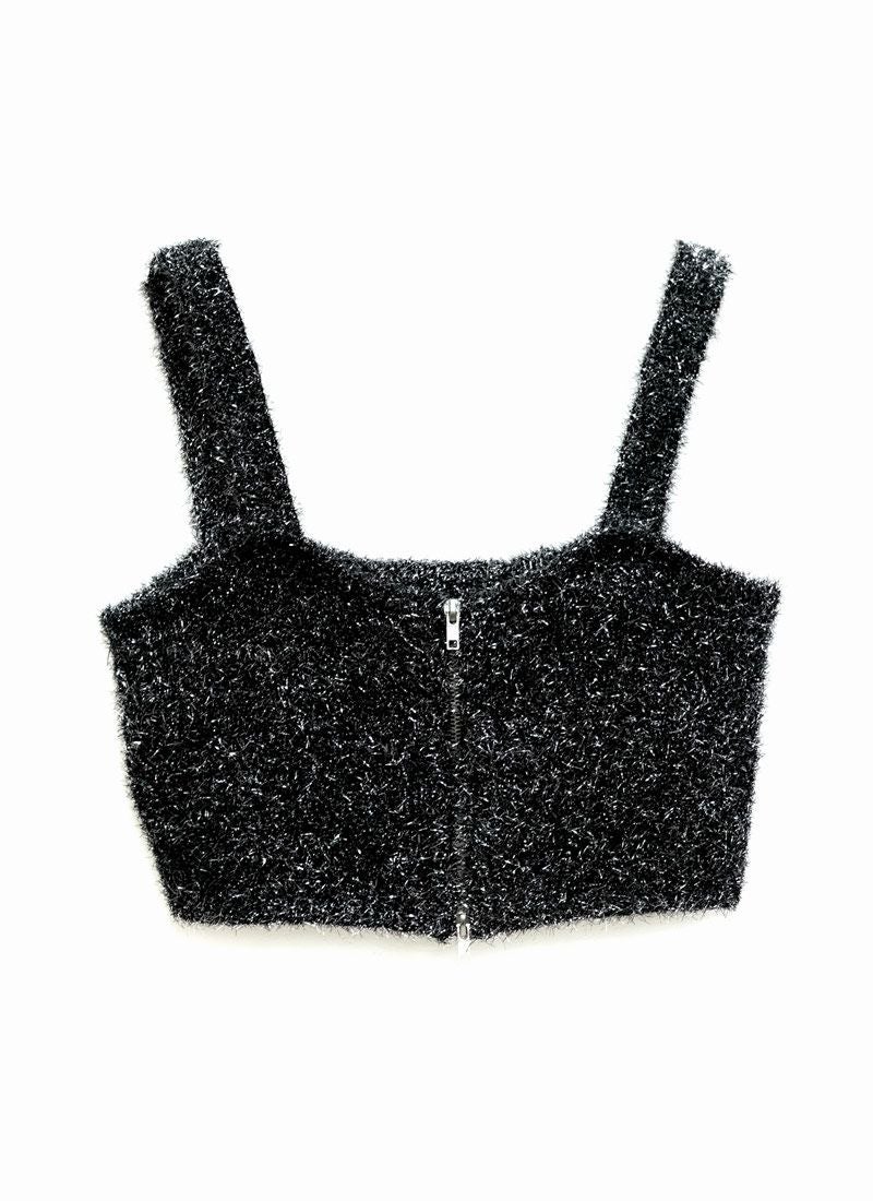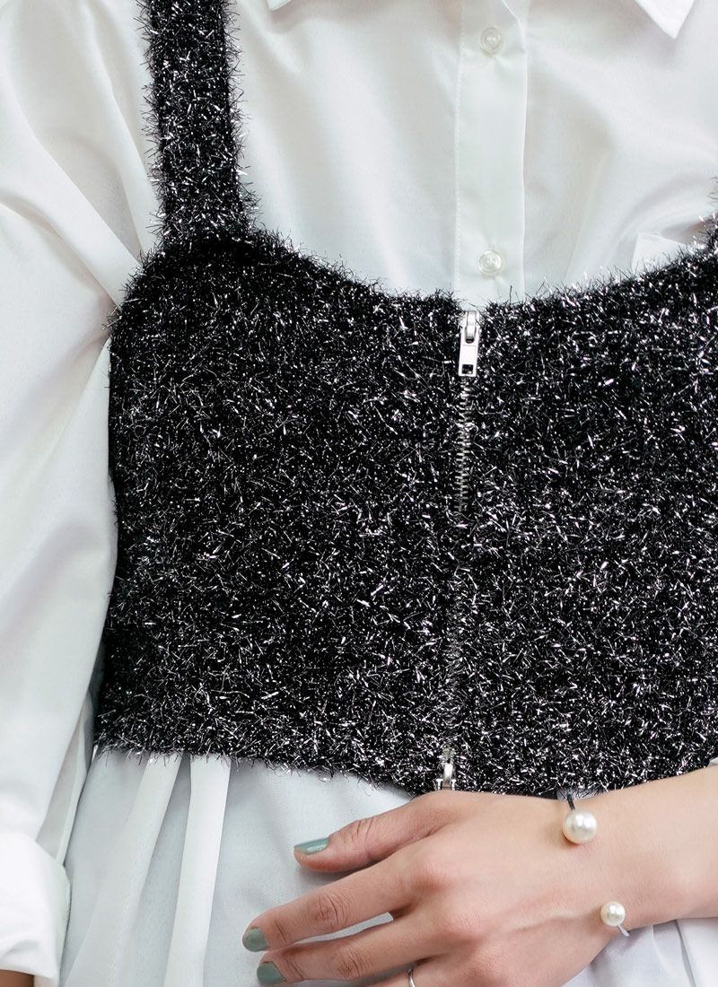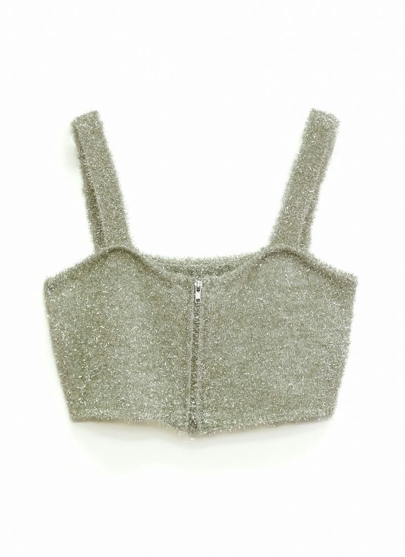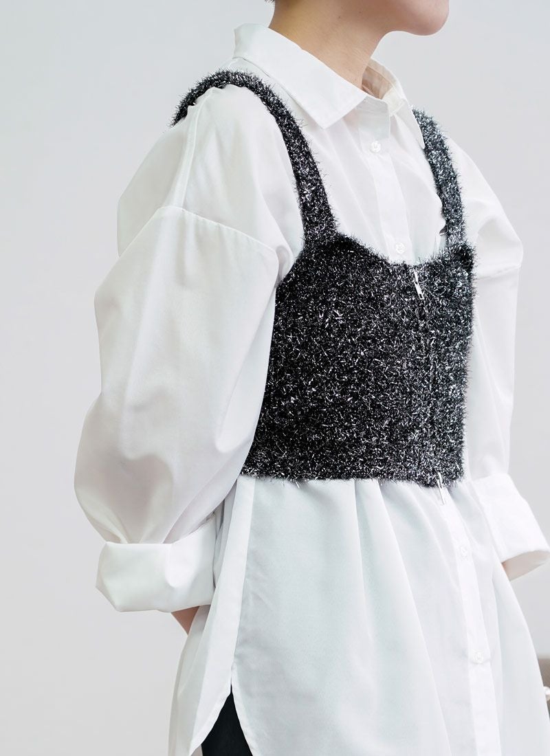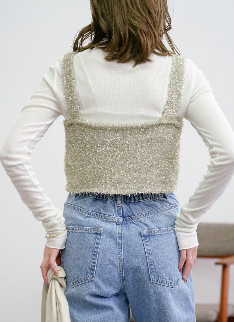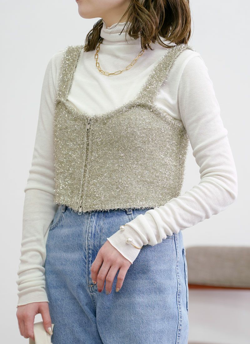 revoam【甘すぎない、辛すぎない。トレンドのグリッター素材で、レイヤードが楽しくなる主役級ビスチェ】 【50%OFF】グリッターニットダブルジップビスチェ