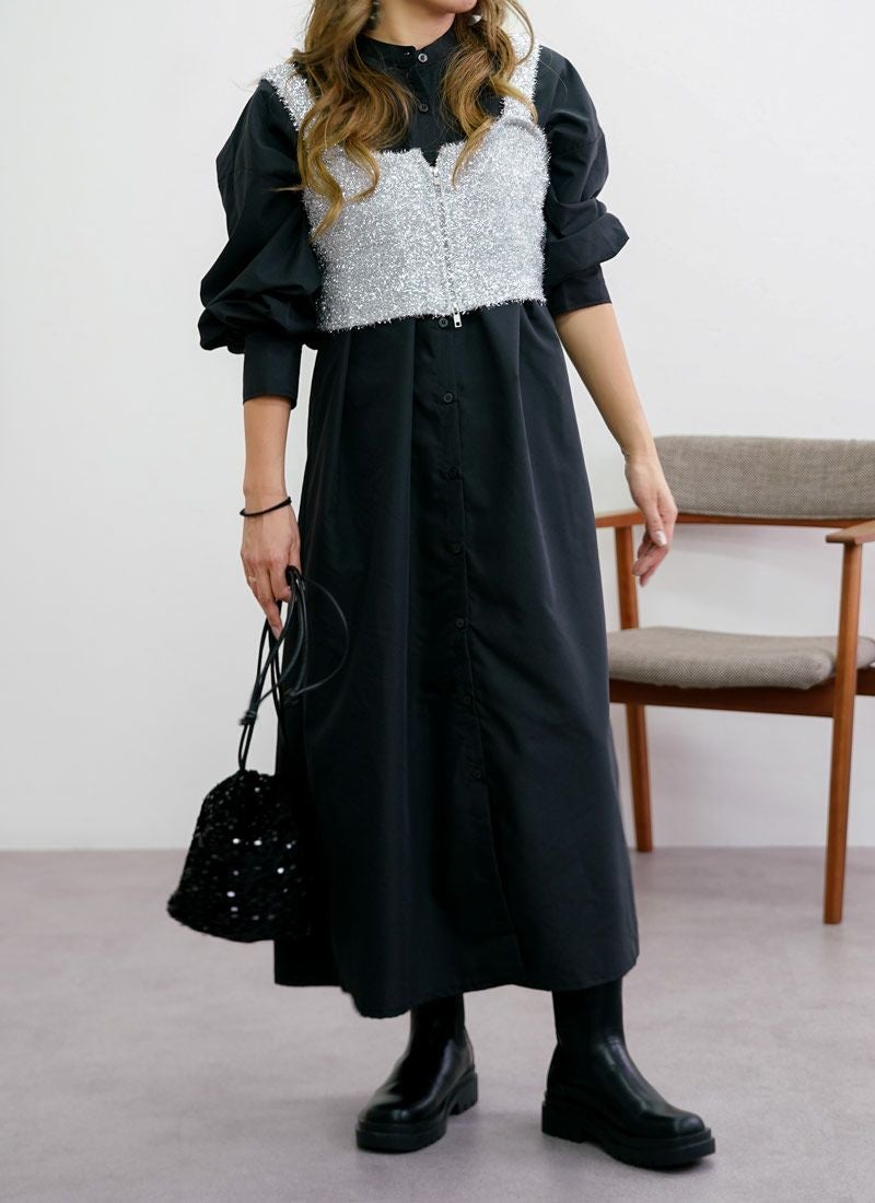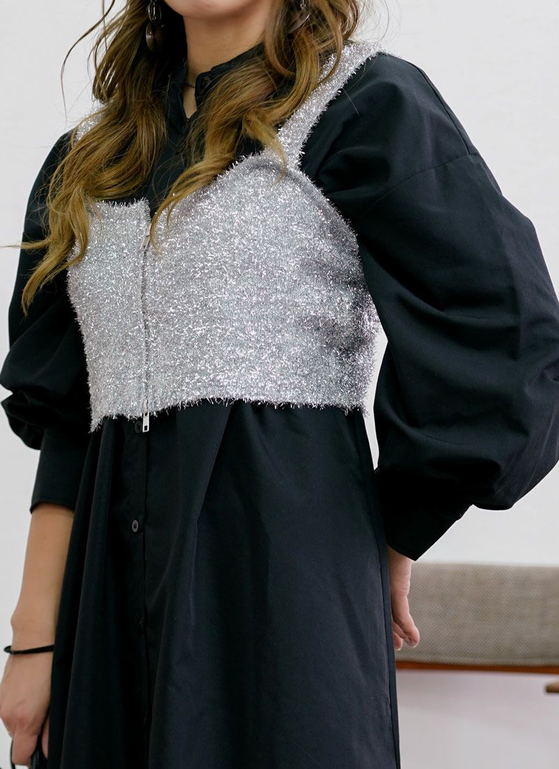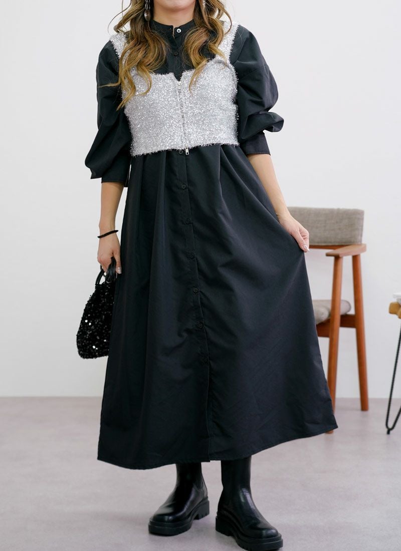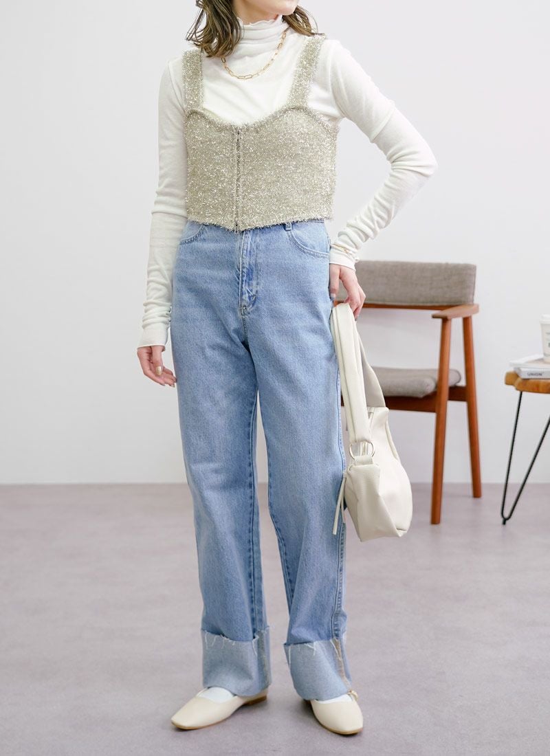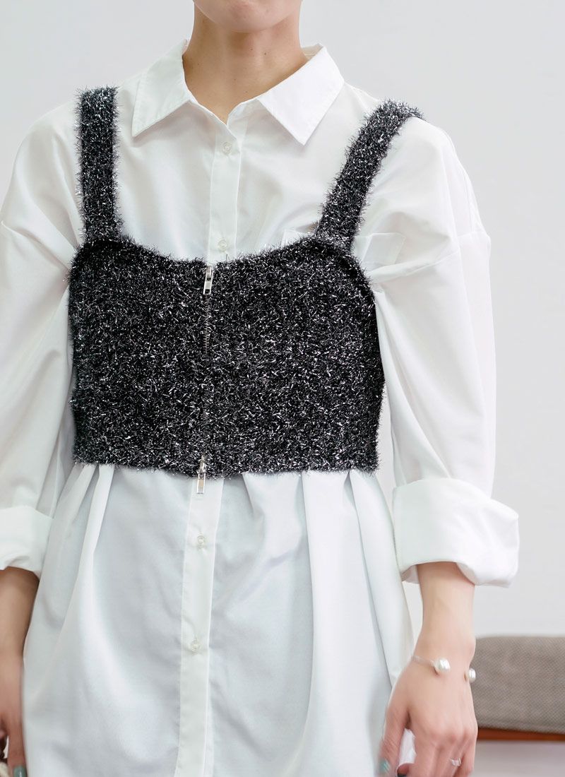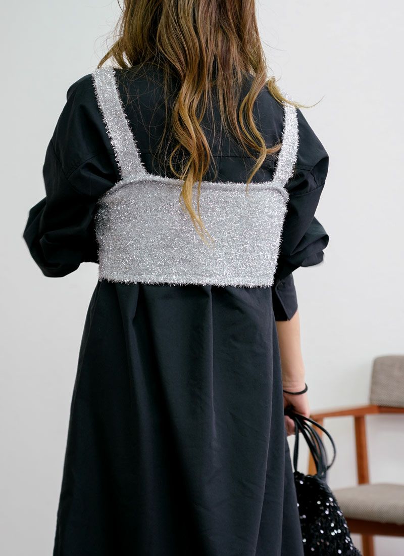 revoam【甘すぎない、辛すぎない。トレンドのグリッター素材で、レイヤードが楽しくなる主役級ビスチェ】 【50%OFF】グリッターニットダブルジップビスチェ