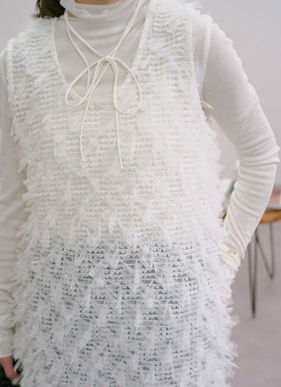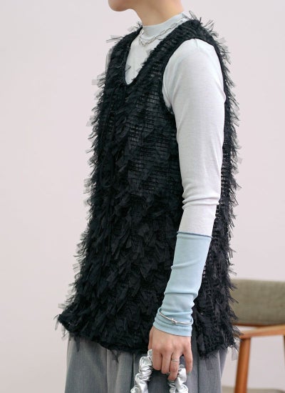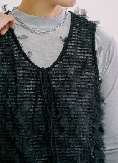 表面感のあるチュールジャガード素材がトレンドライクなベスト。