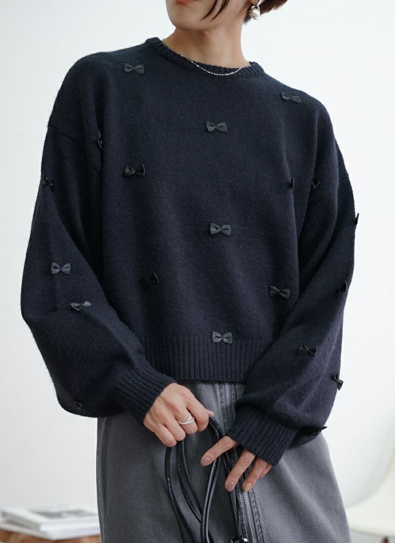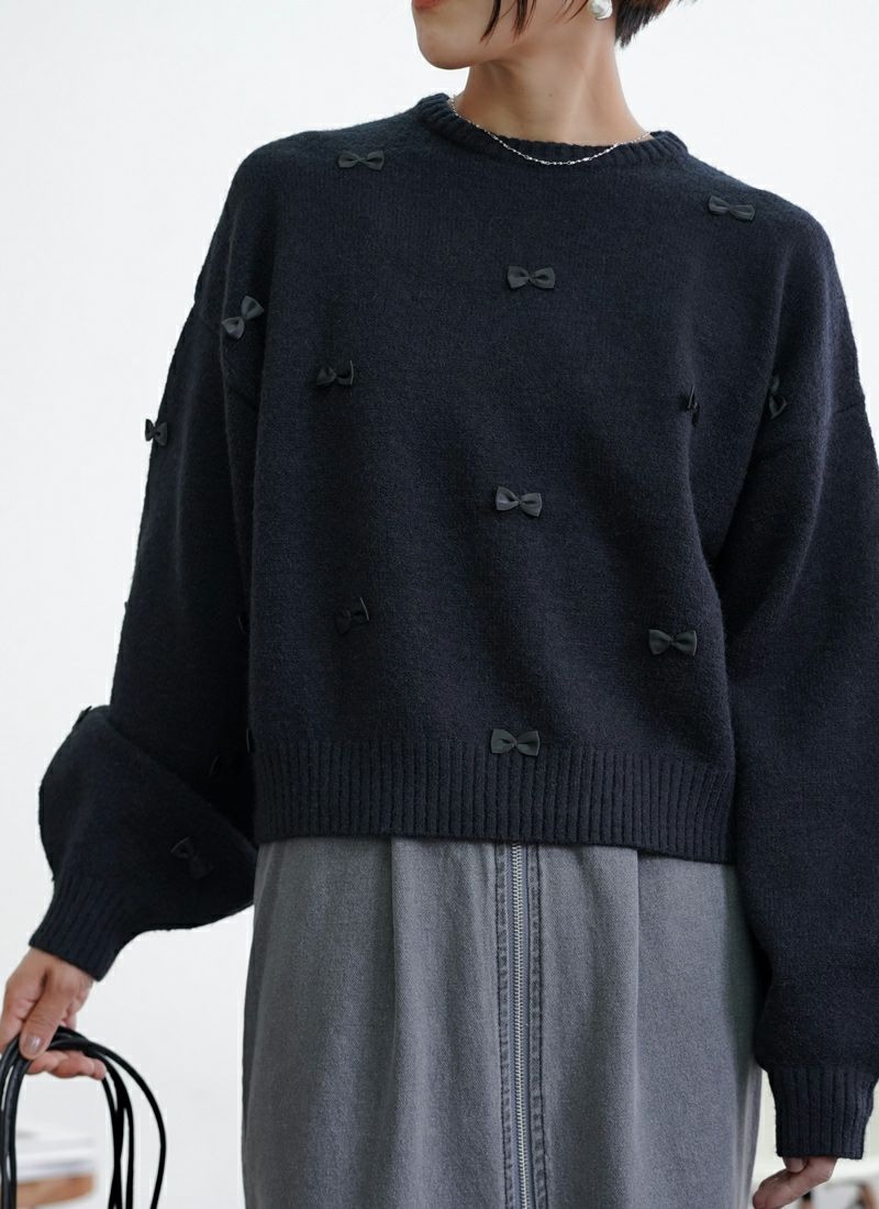 【新作おすすめ】 【30%OFF】アルパカタッチリボンニットプルオーバー