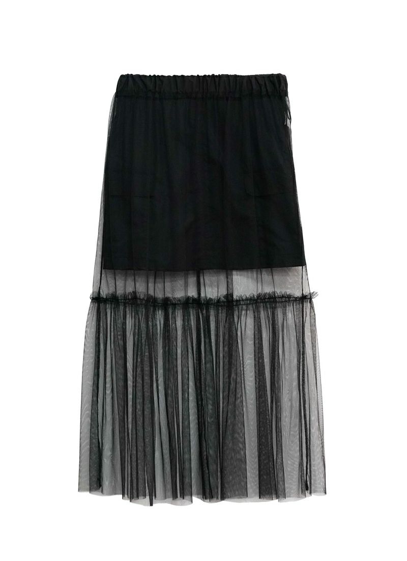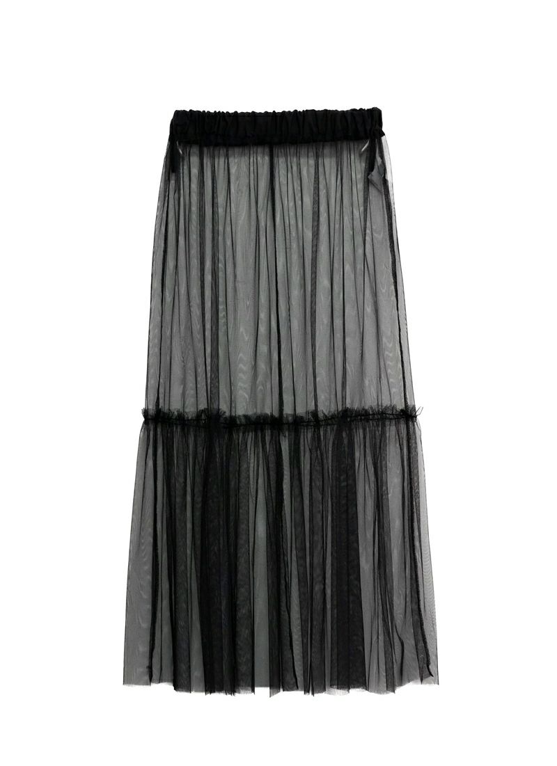 revoam【透け感×ボリュームが、ひと目で可愛い。動きに揺れる、レイヤードチュールスカート】 【25%OFF】タフタ×チュール レイヤードスカート