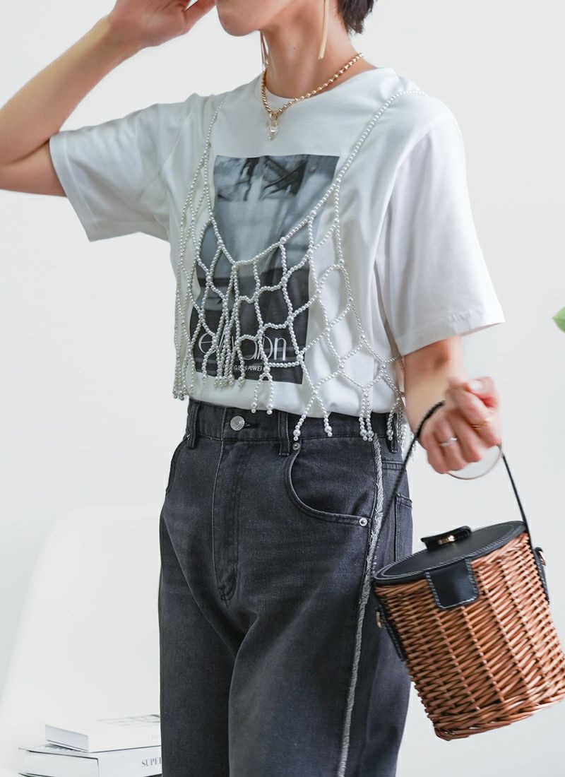 revoam【きらめく箔プリントが主役。大人モードなオーバーサイズTee】 【20%OFF】オーバーサイズ箔プリントロンTee