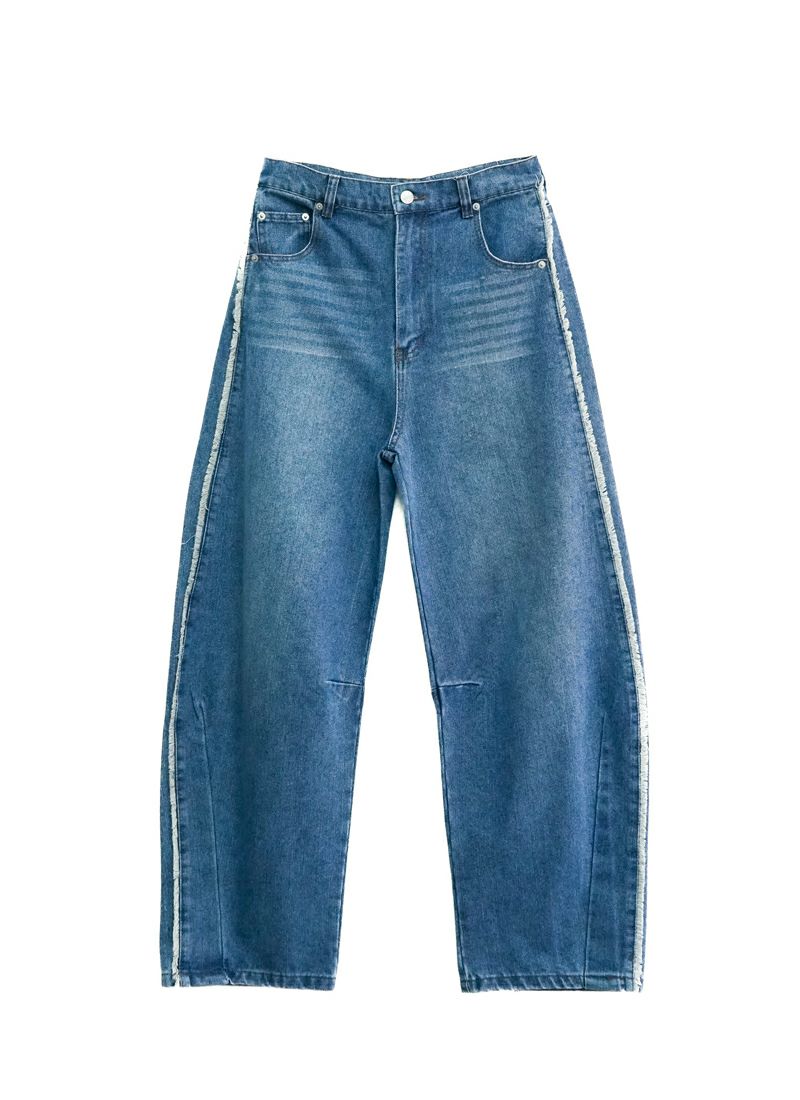 revoam【ゆるっと感が、こなれの鍵。ラインで魅せる旬バランス、楽しておしゃれが叶う一本】 【10%OFF】サイドフリンジデニム カーブパンツ