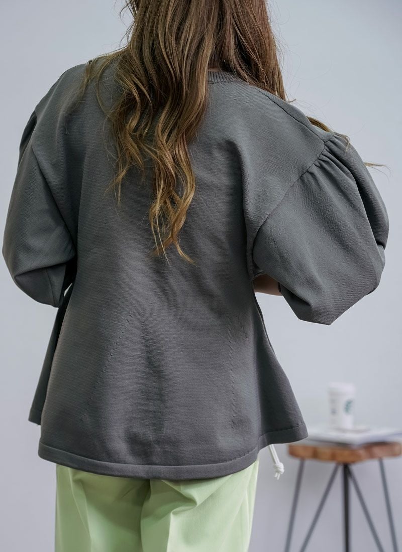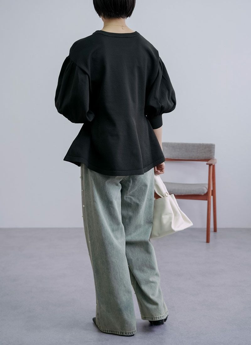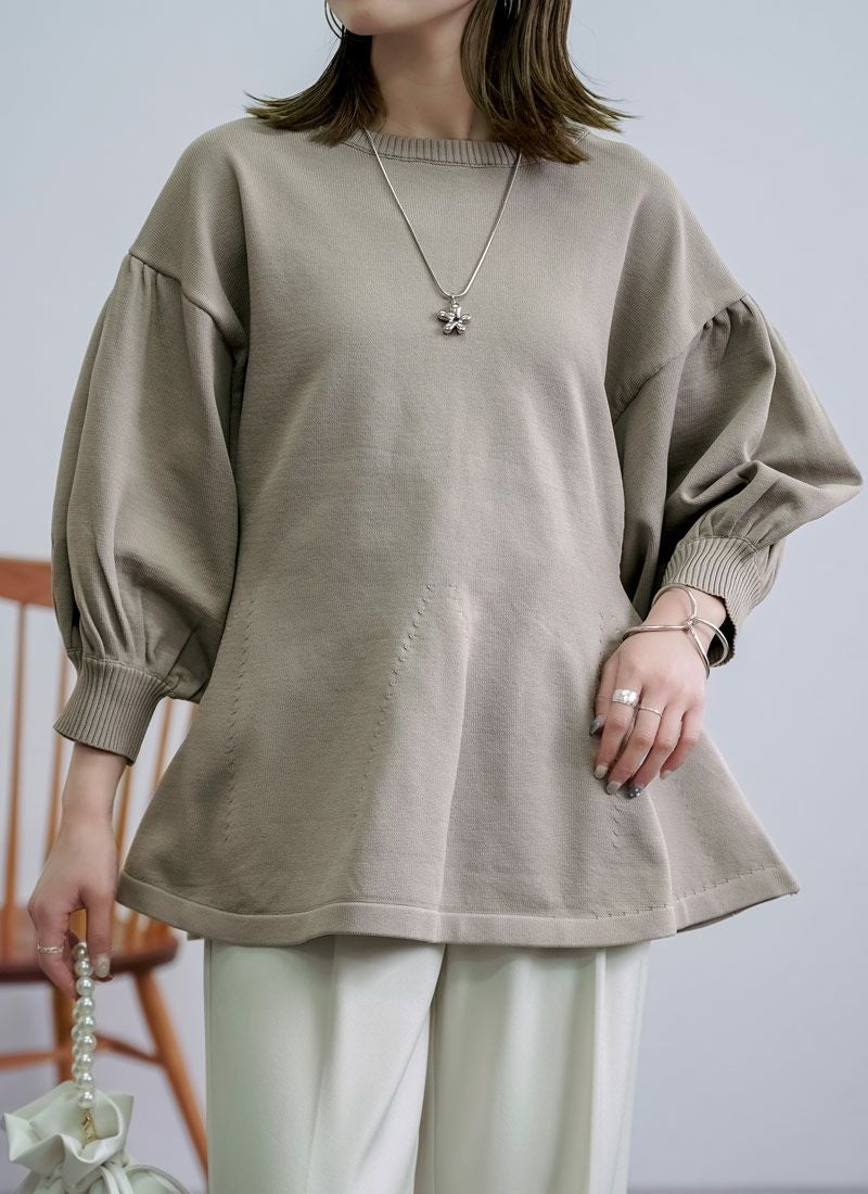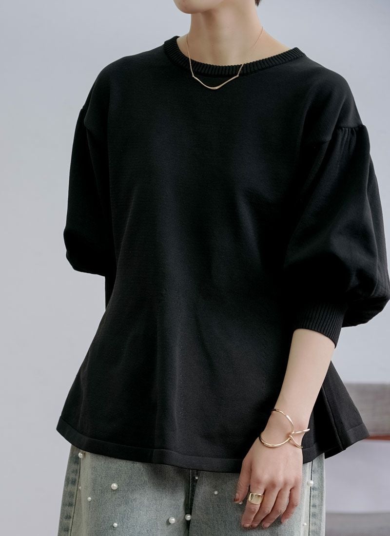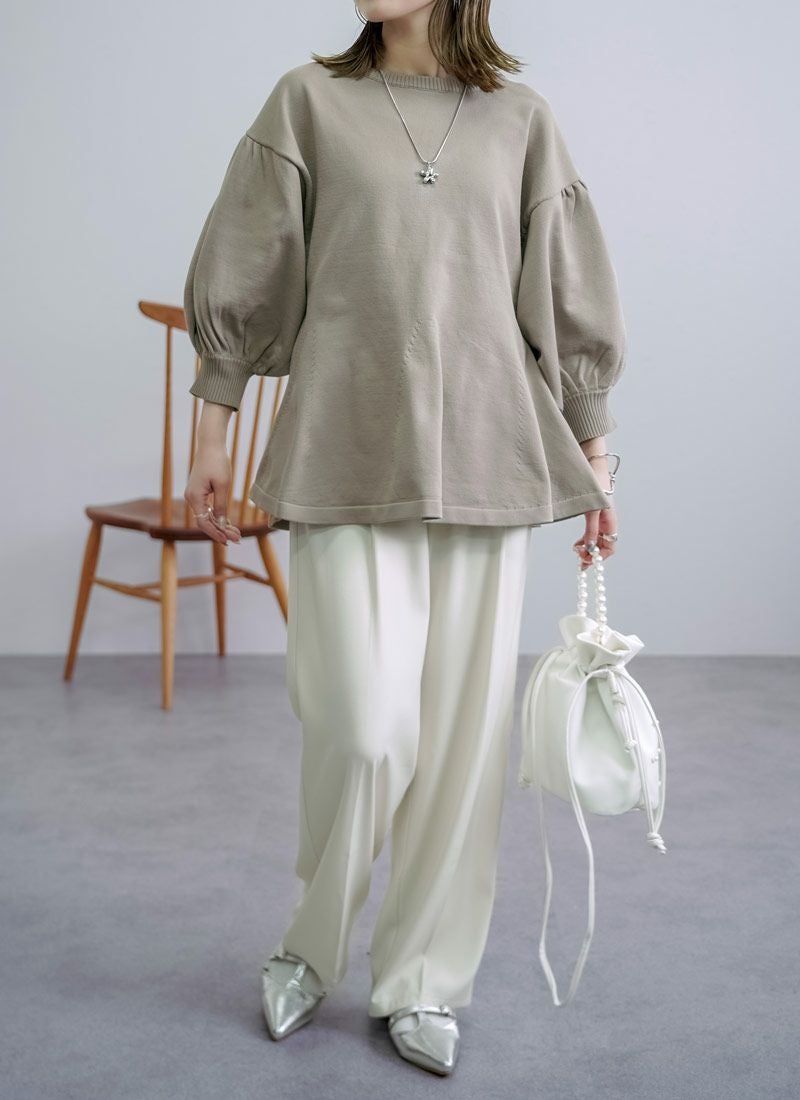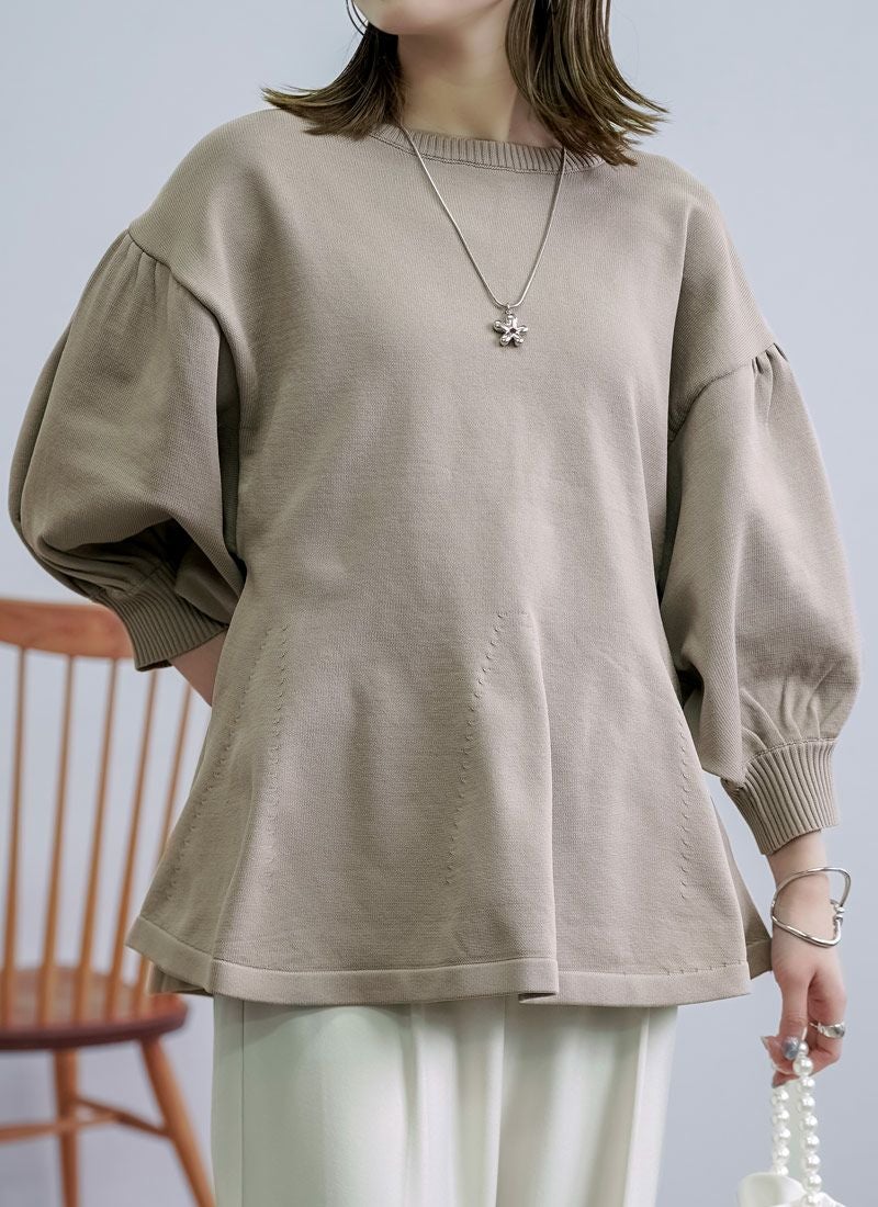 revoam【着るだけで華やか見えを叶える主役トップス。立体感のあるペプラムとボリューム袖がシルエット美人に】 【30%OFF】ボリュームスリーブペプラムニットプルオーバー