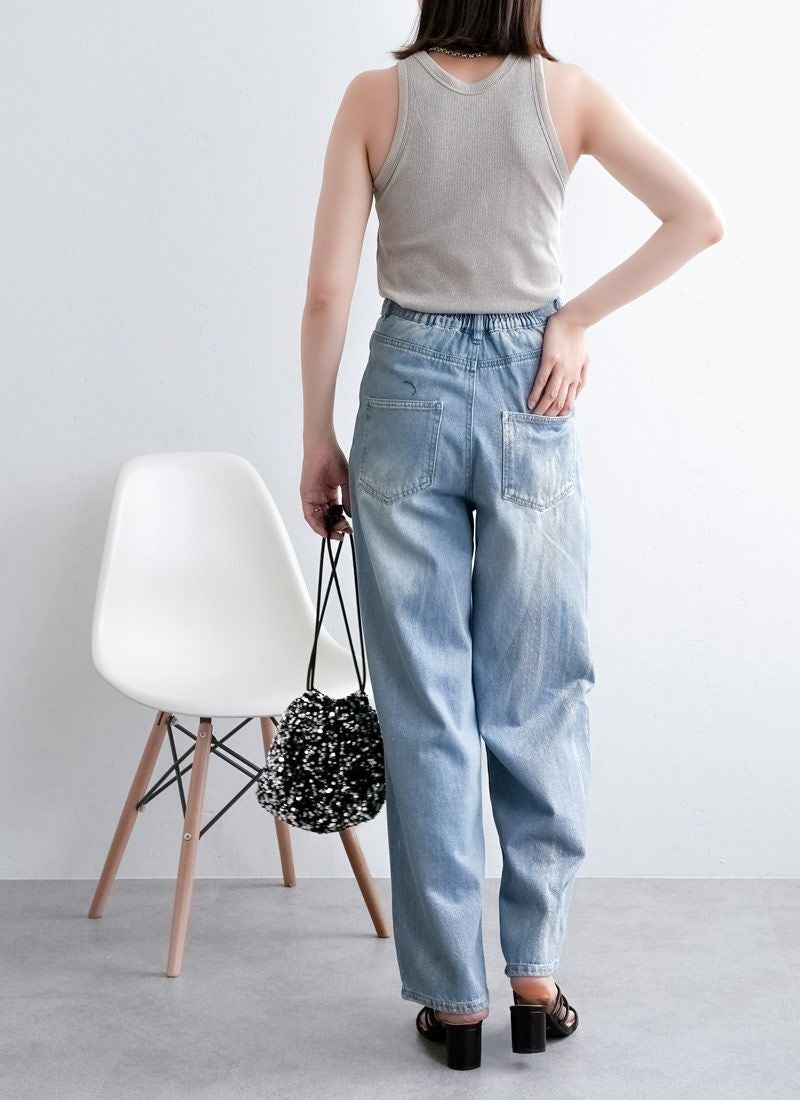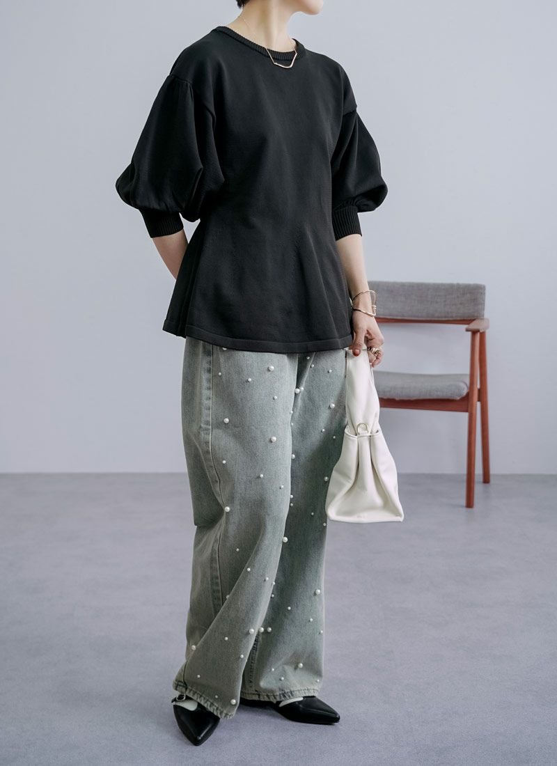 revoam【パールを散りばめた、大人のときめきデニム。さりげないパールの輝きが日常をちょっと特別に】 【25%OFF】パールストレートデニムパンツ