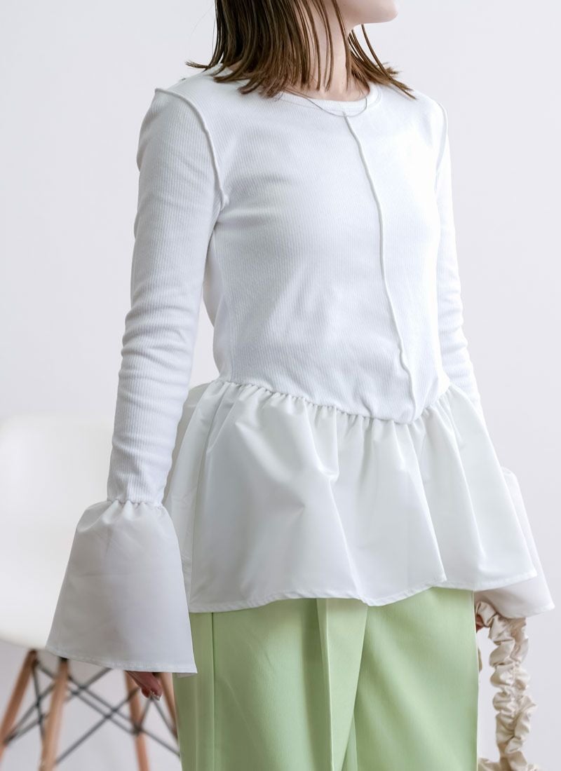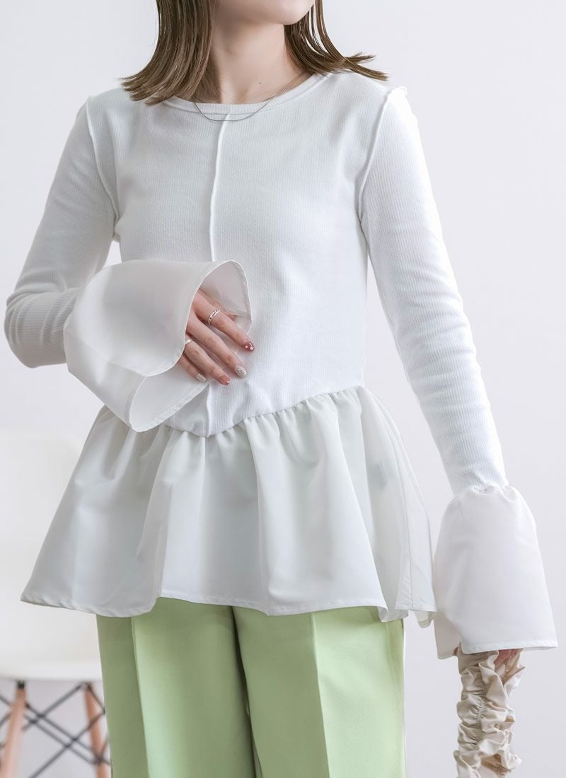 【新作おすすめ】 【30%OFF】フリルペプラムリブトップス