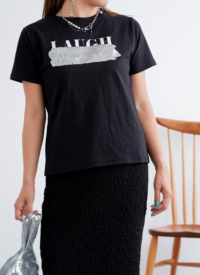 revoam【シンプルなのに映える。“ロゴ消し箔”で魅せる、大人のTシャツ】 【35%OFF】ロゴ消し箔プリントコンパクトTee