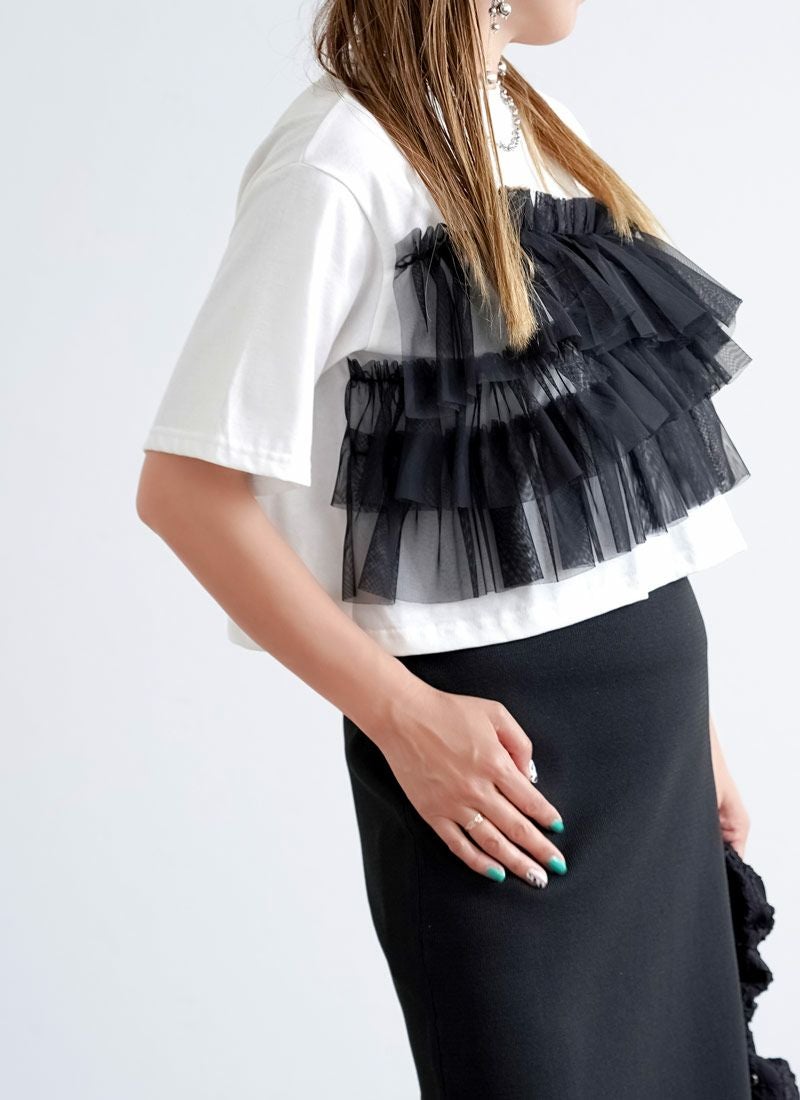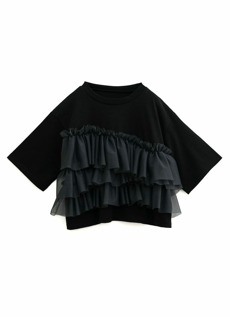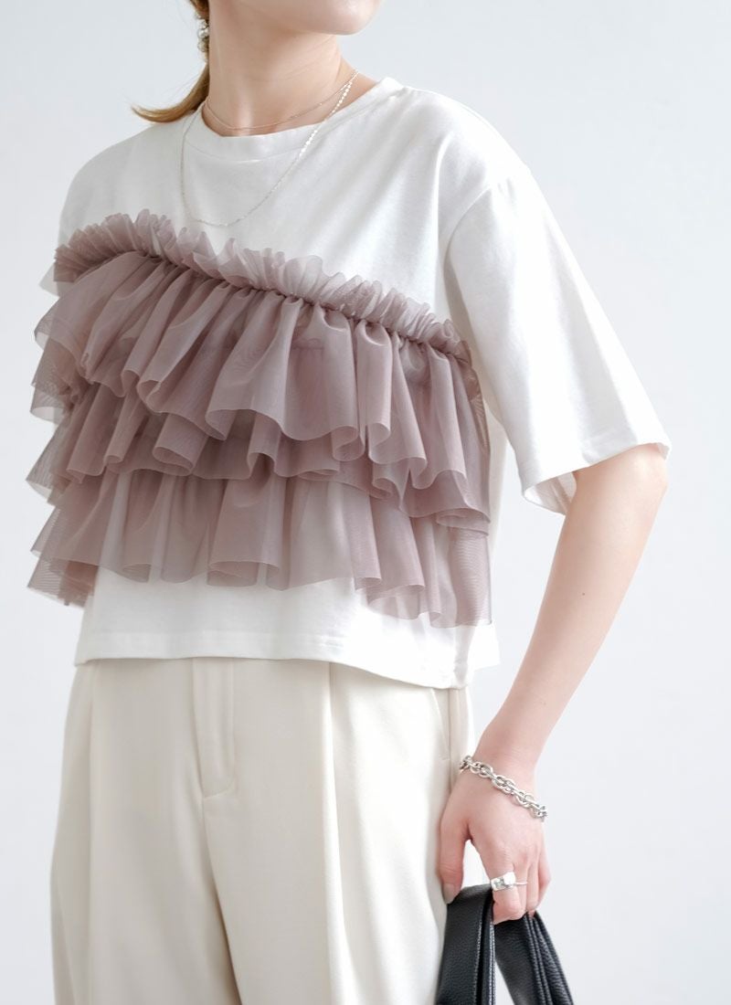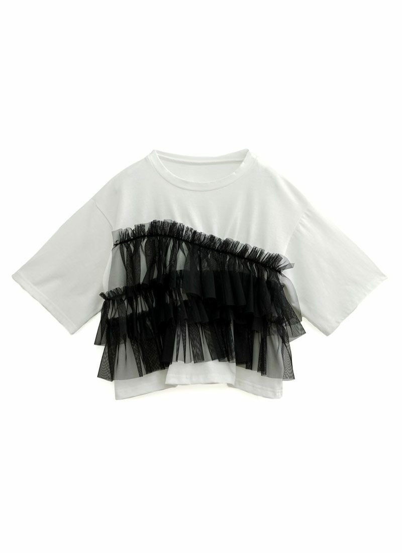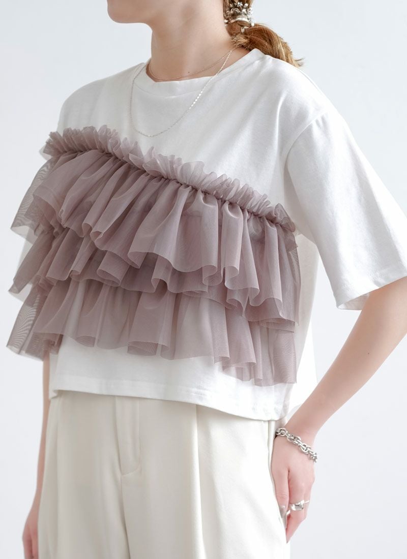 revoam【甘すぎない、大人のチュールT。ふんわり感×短丈で、今っぽバランス】 【35%OFF】チュールドッキングクロップドTee