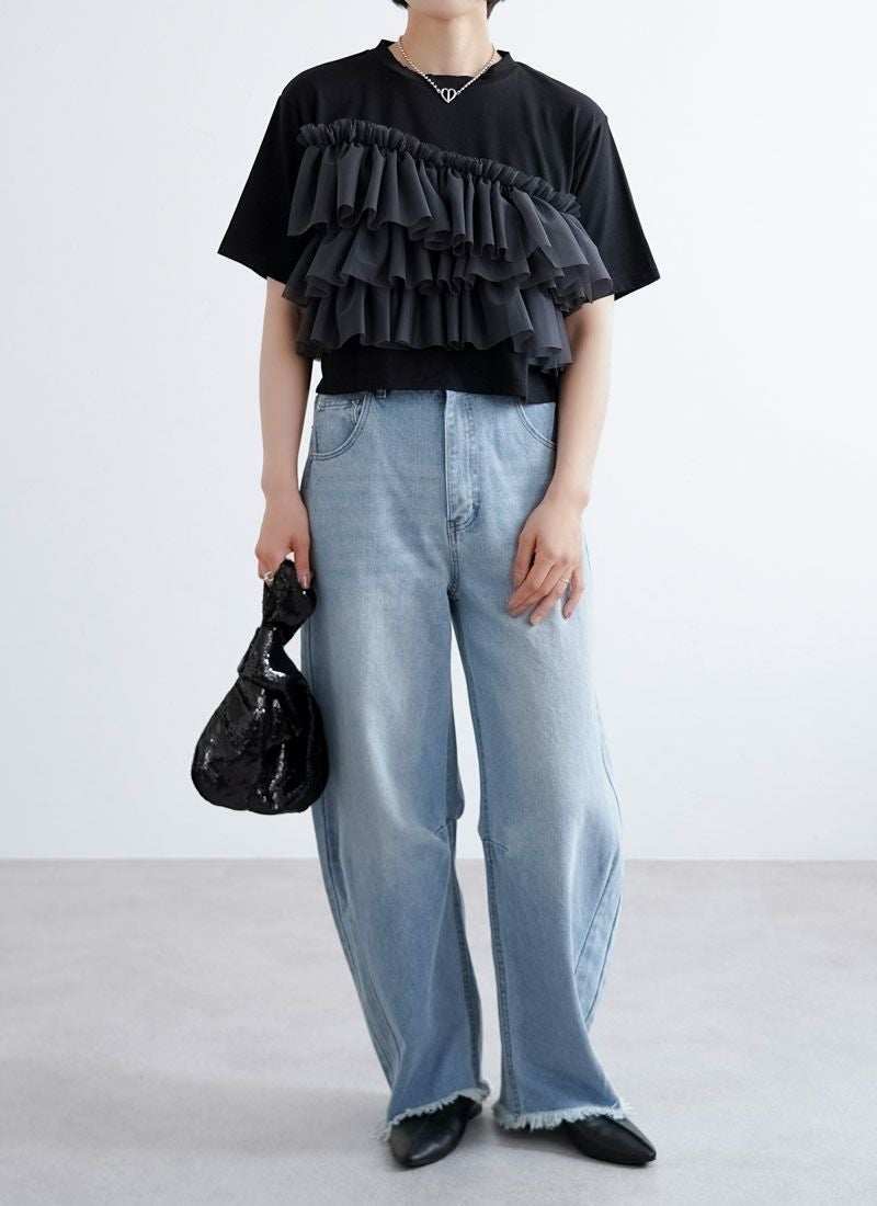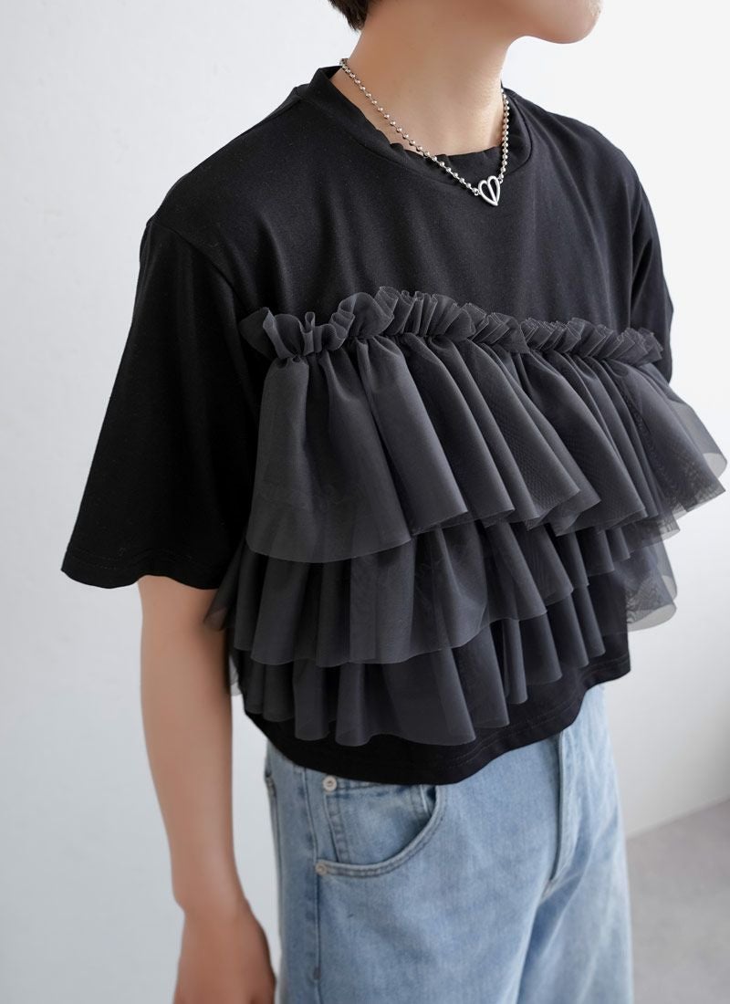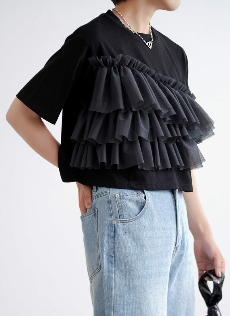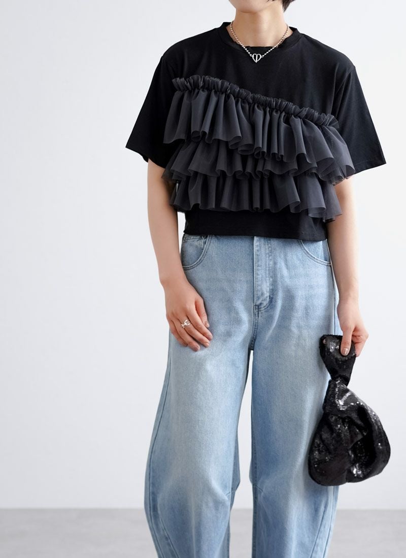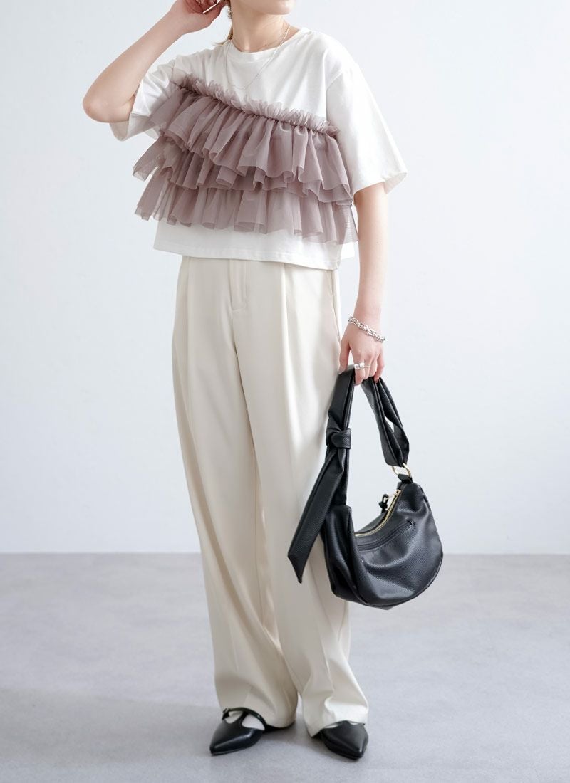 revoam【甘すぎない、大人のチュールT。ふんわり感×短丈で、今っぽバランス】 【35%OFF】チュールドッキングクロップドTee