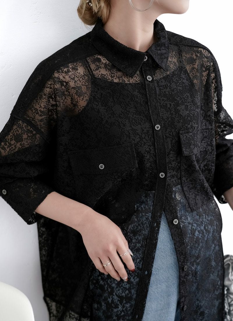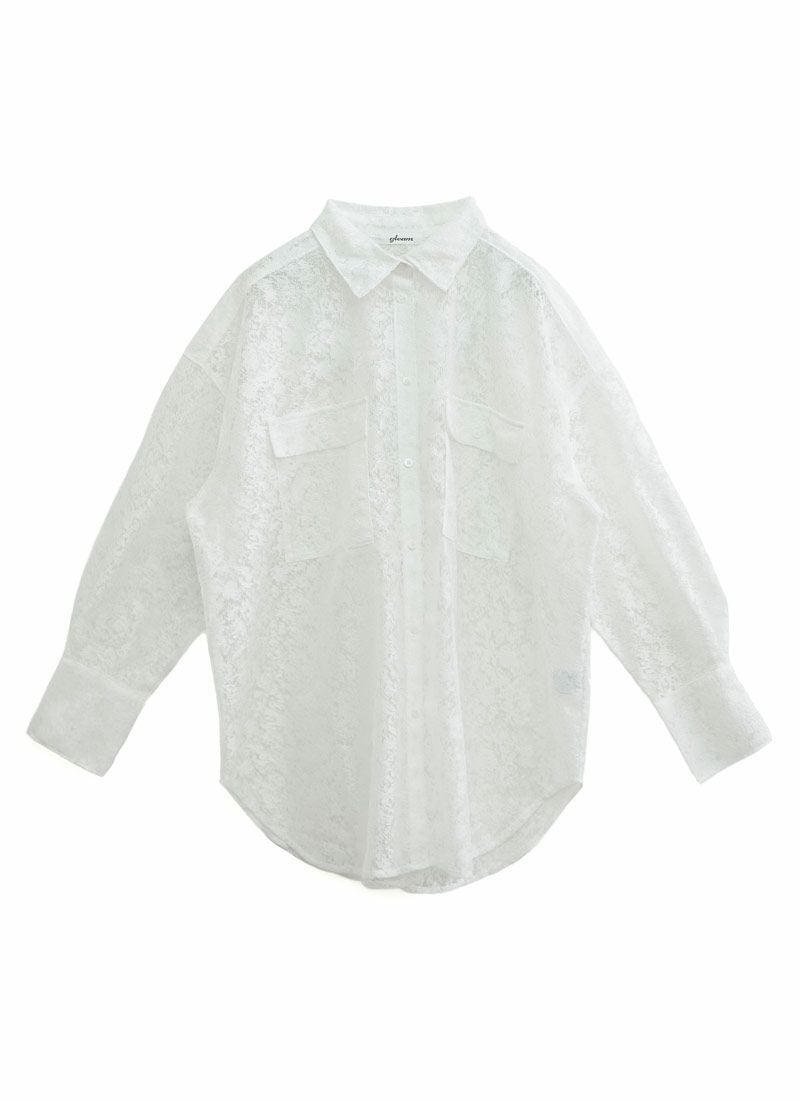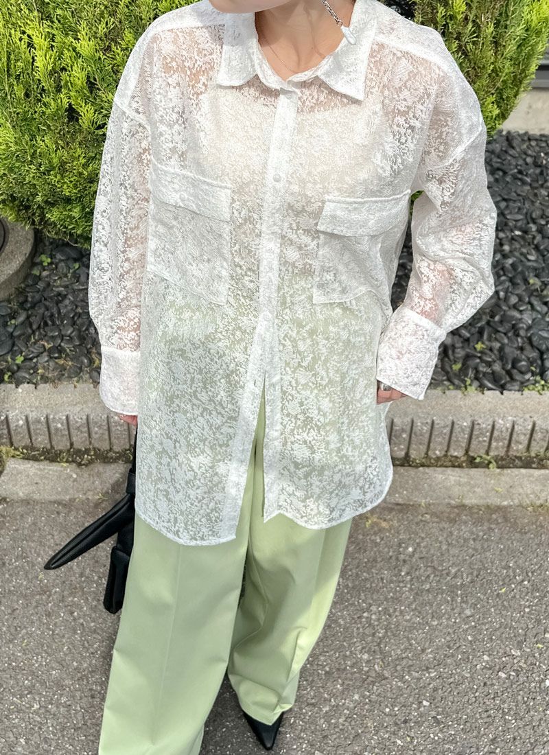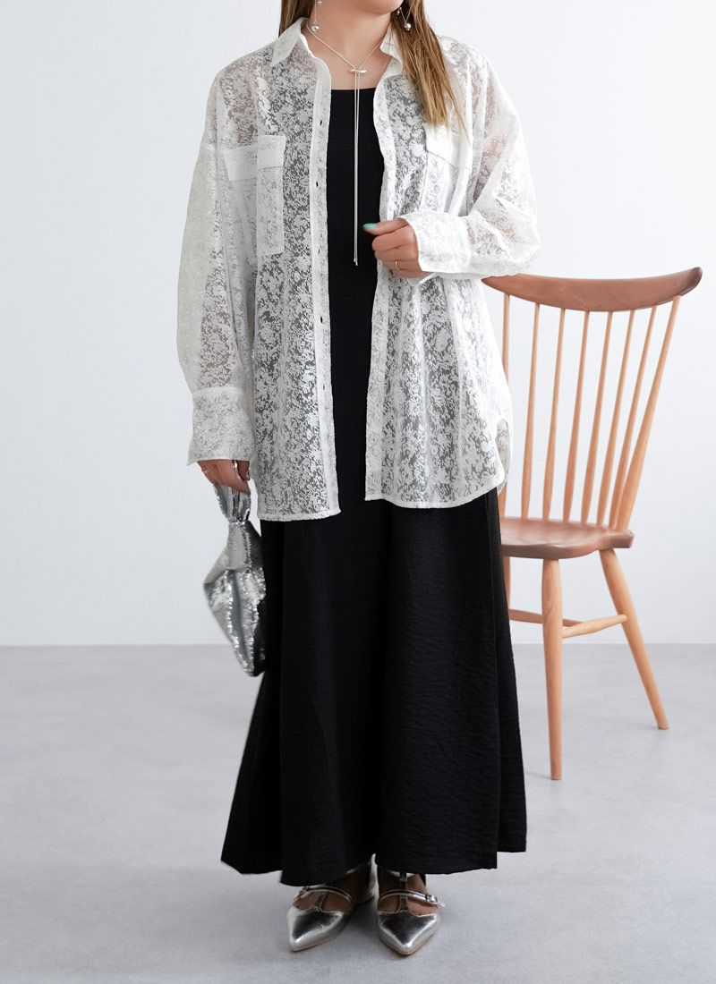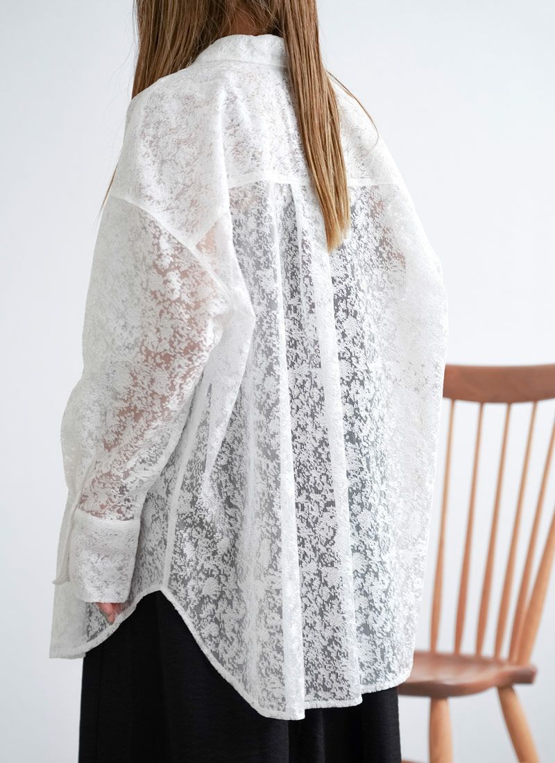revoam【羽織るだけで今っぽい。レースとシアーの異素材感が映えるトレンド感満載の一枚】 【10%OFF】レースシアービッグシャツ