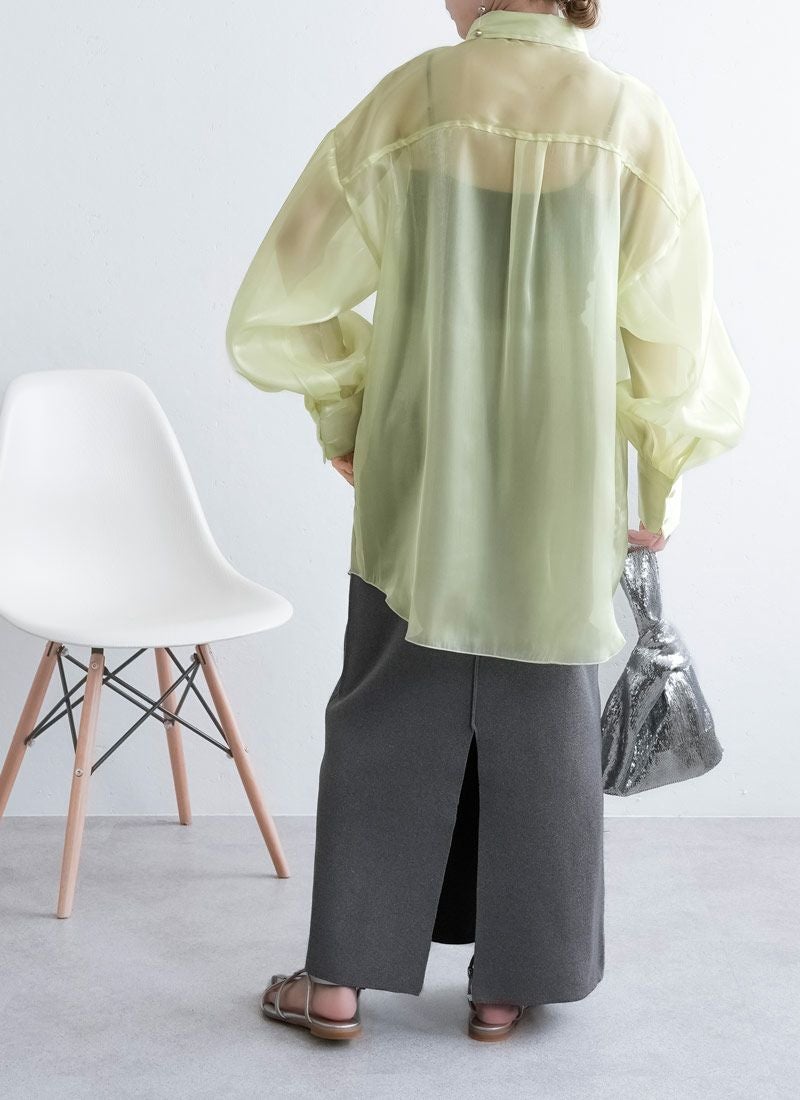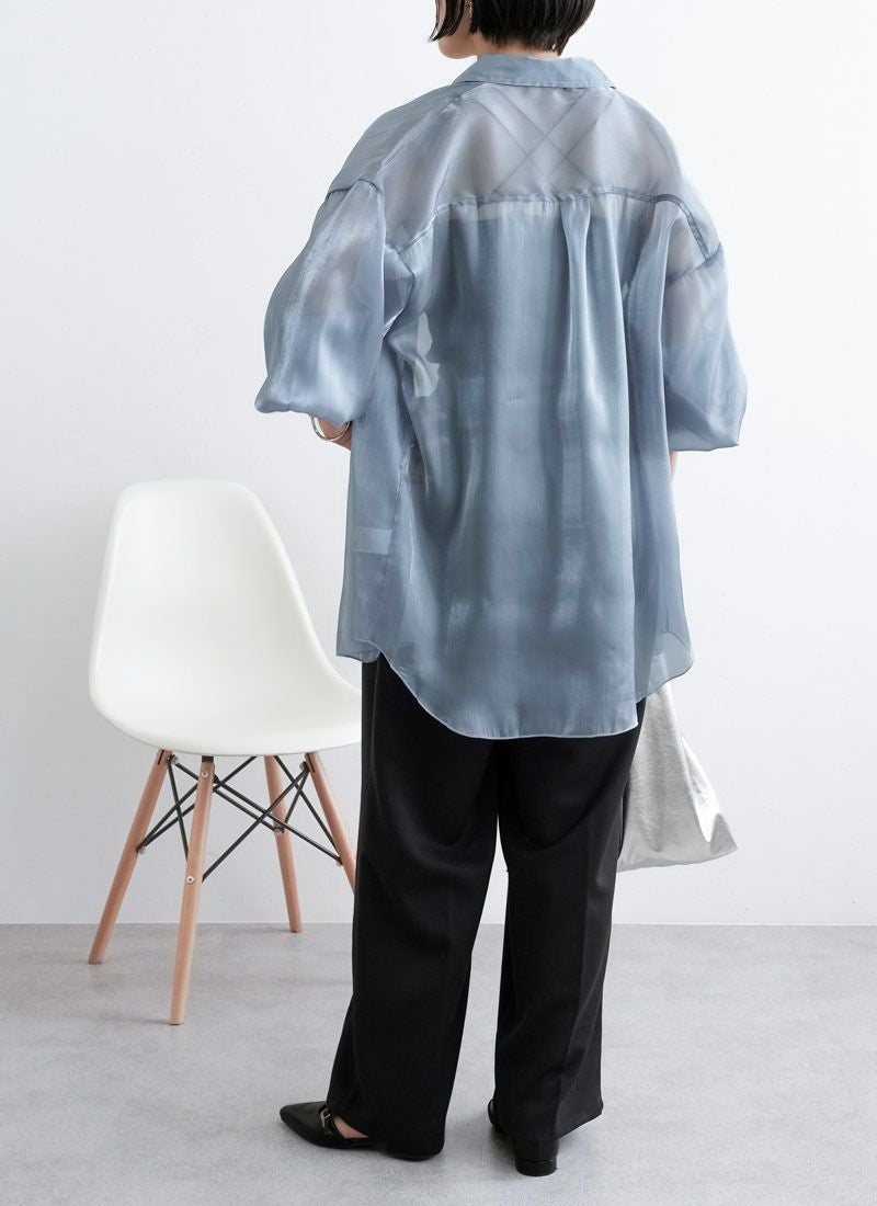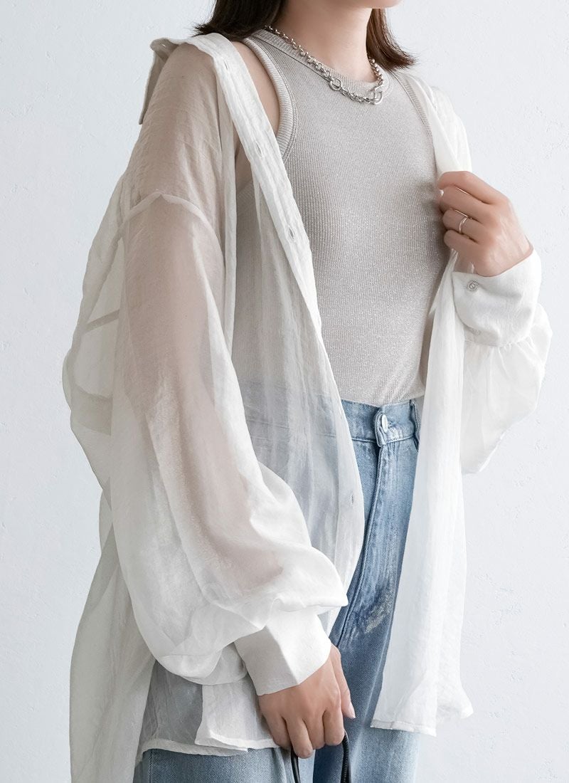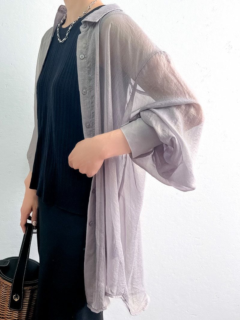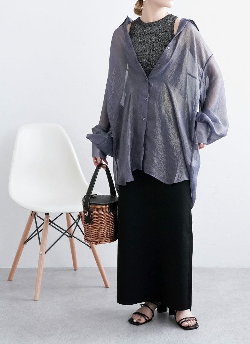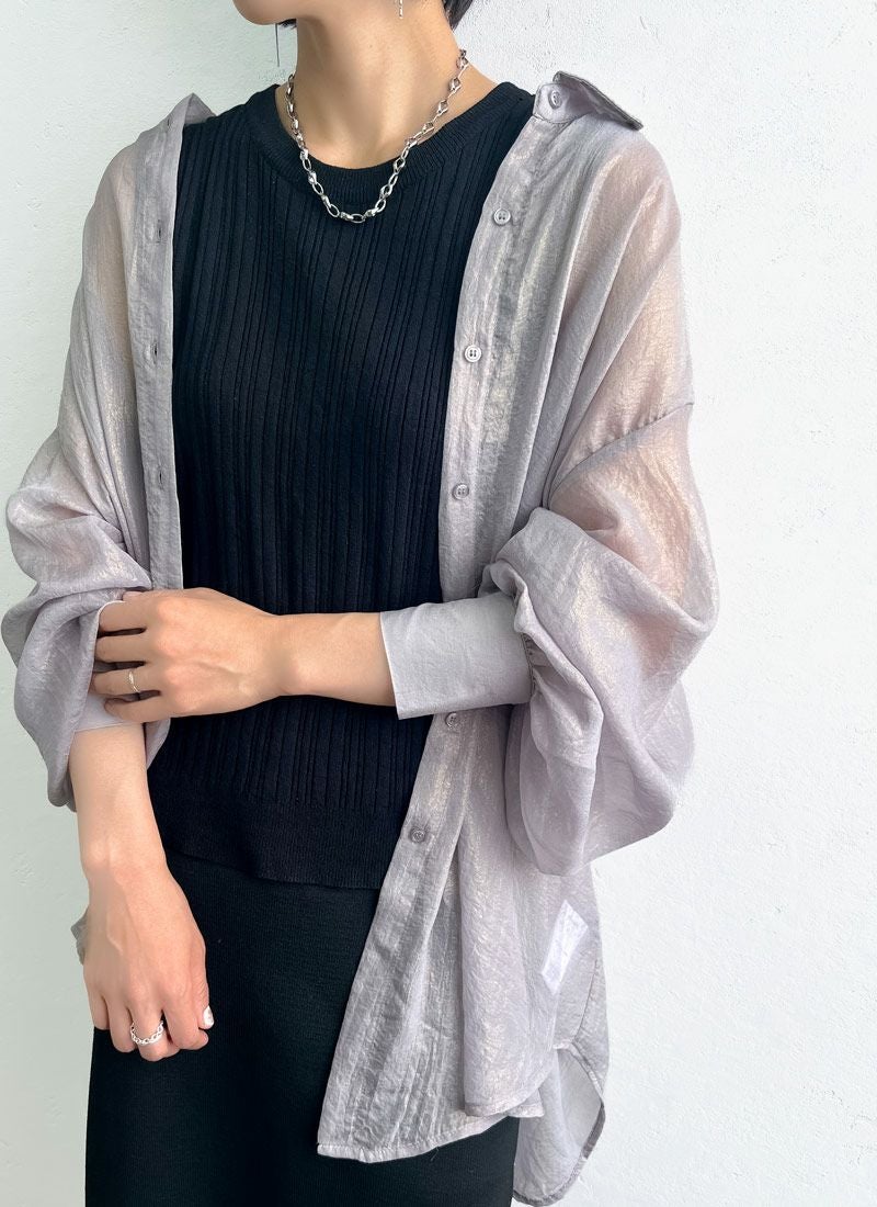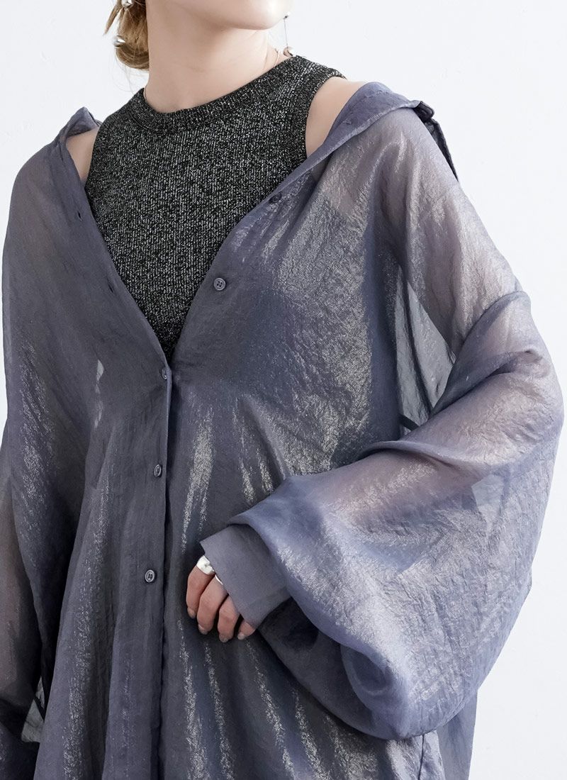 revoam【透け感とラメの上品なバランスで、大人の“こなれ感”を演出。羽織るだけで季節を先取りする、オーガンジーシャツ】 【10%OFF】ラメオーガンジーシャツ