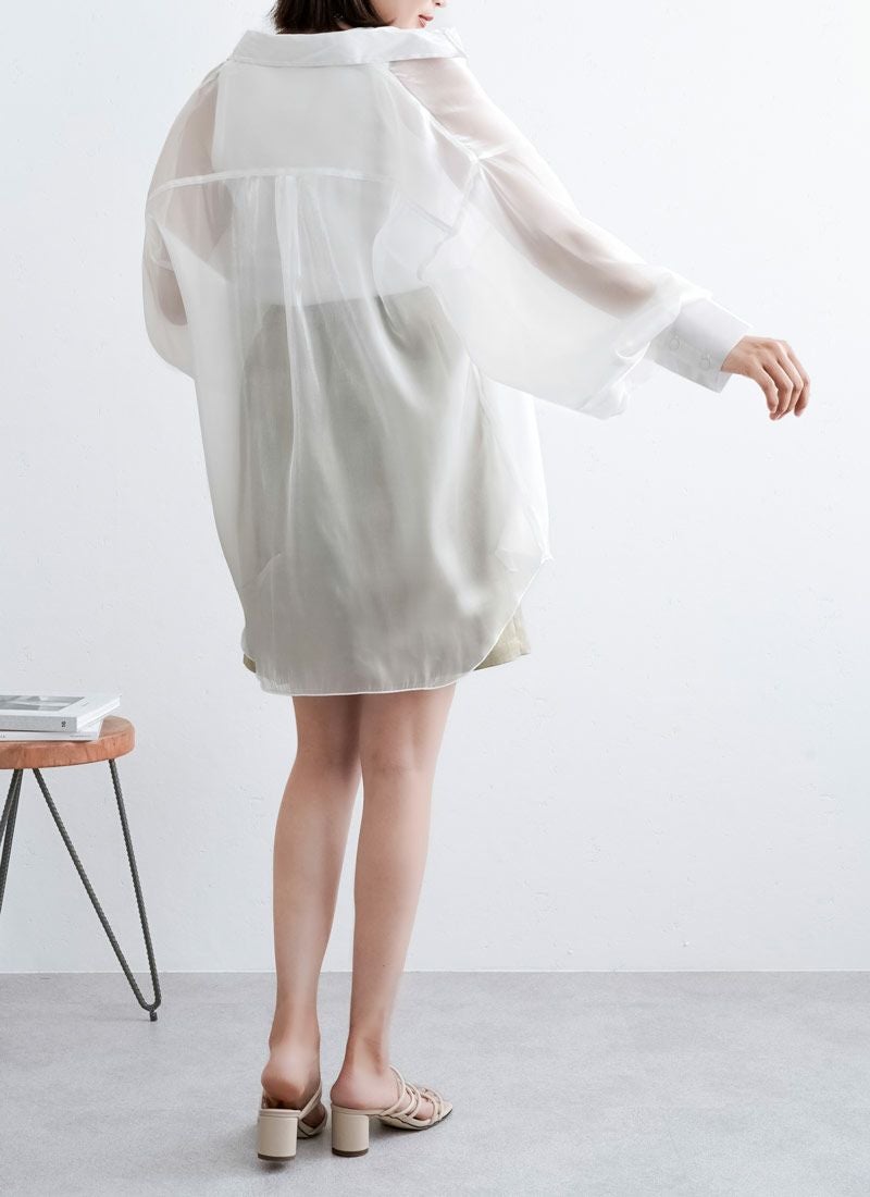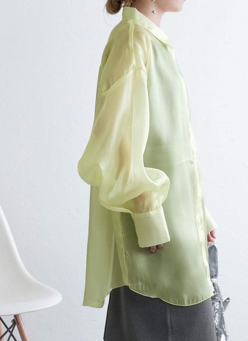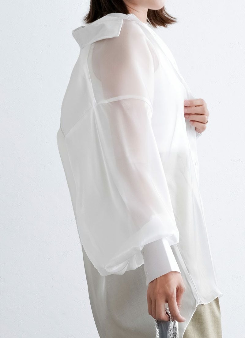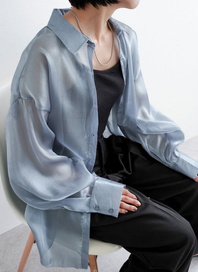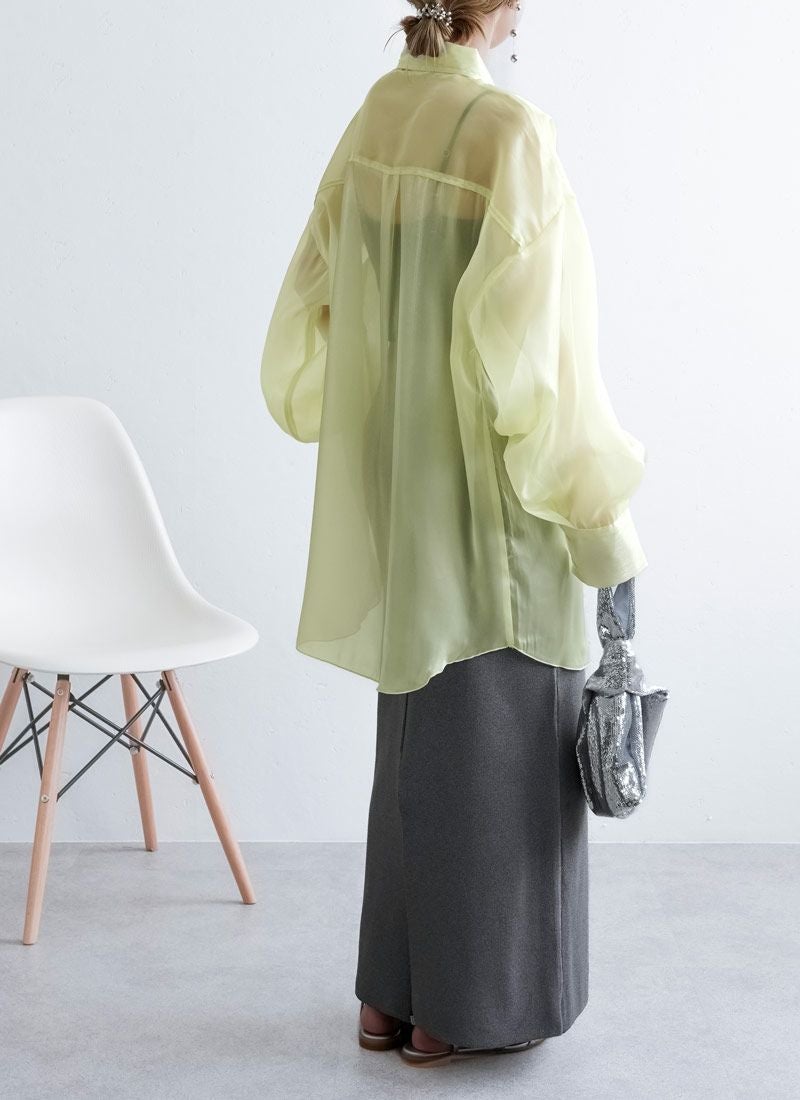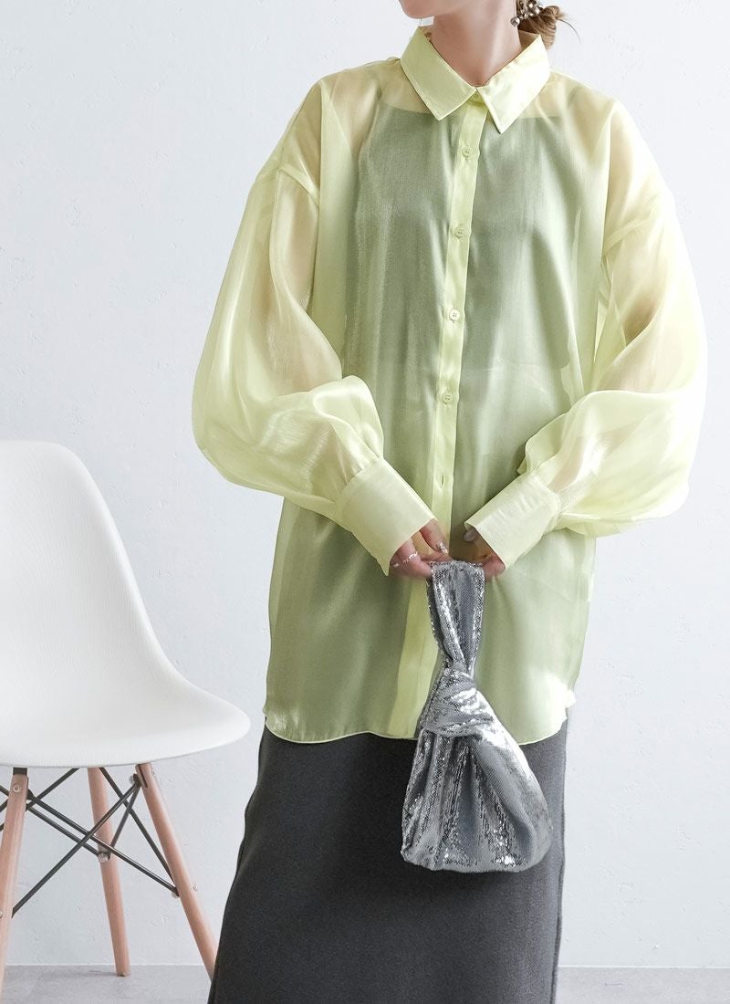 revoam【透け感とラメの上品なバランスで、大人の“こなれ感”を演出。羽織るだけで季節を先取りする、オーガンジーシャツ】 【10%OFF】ラメオーガンジーシャツ
