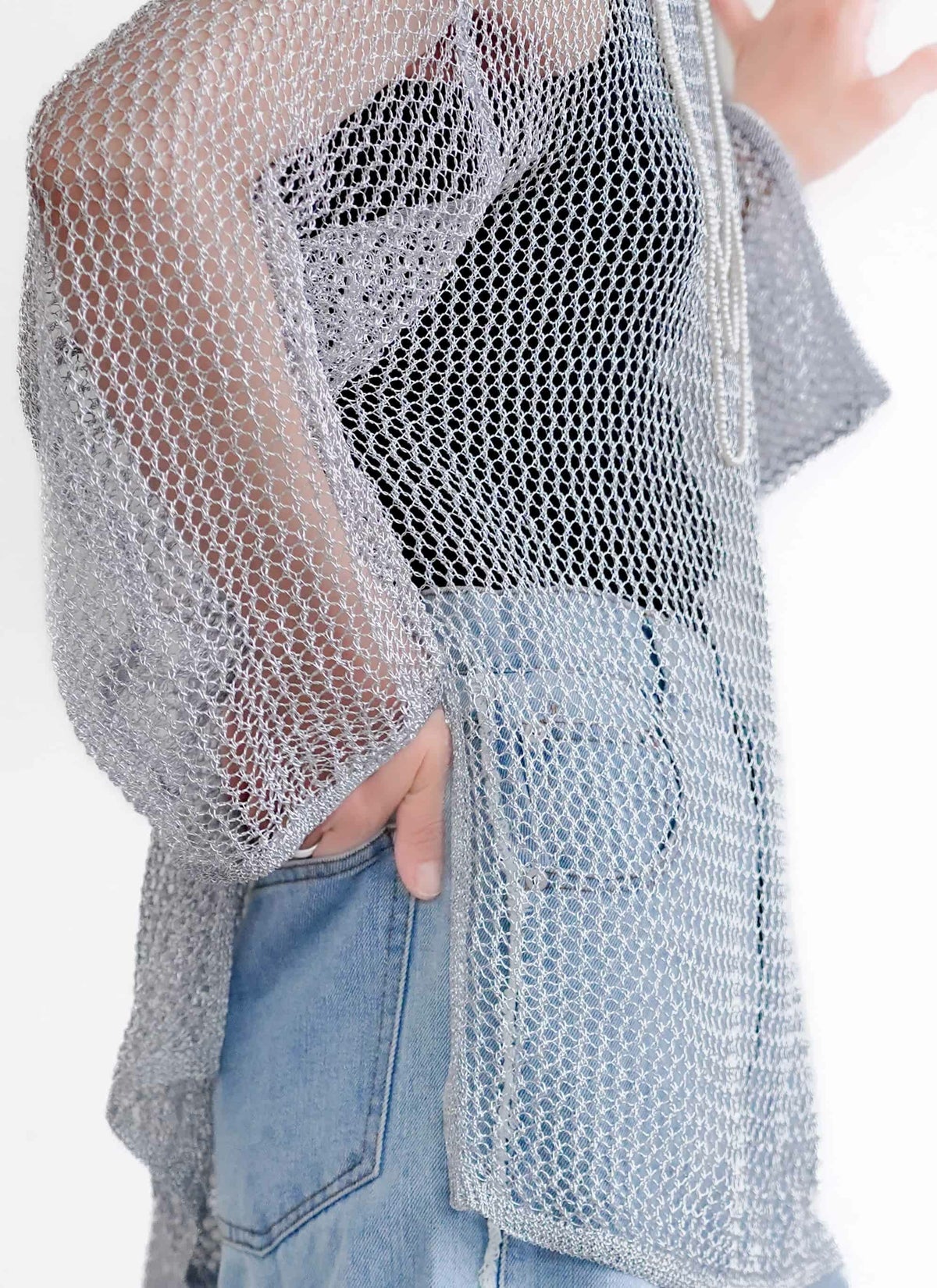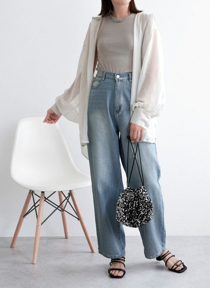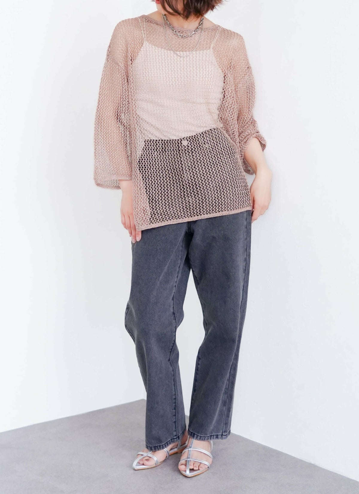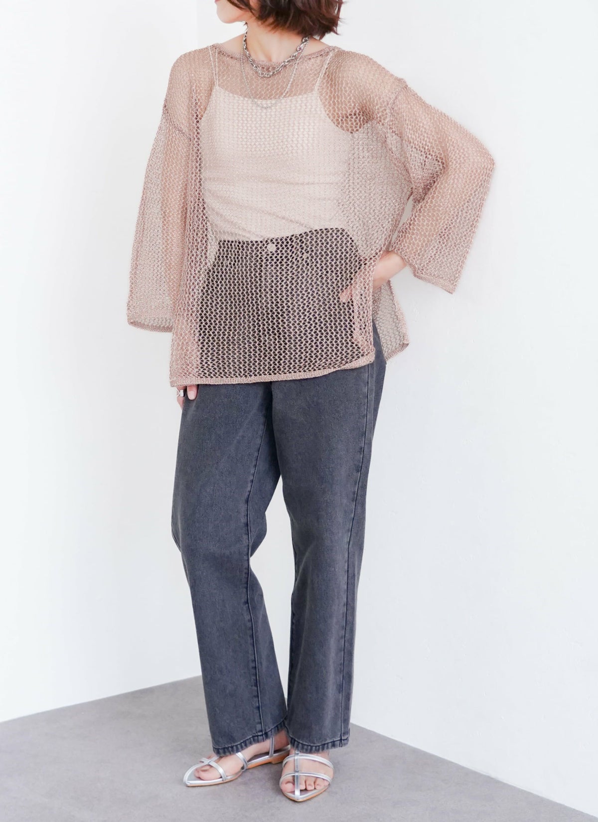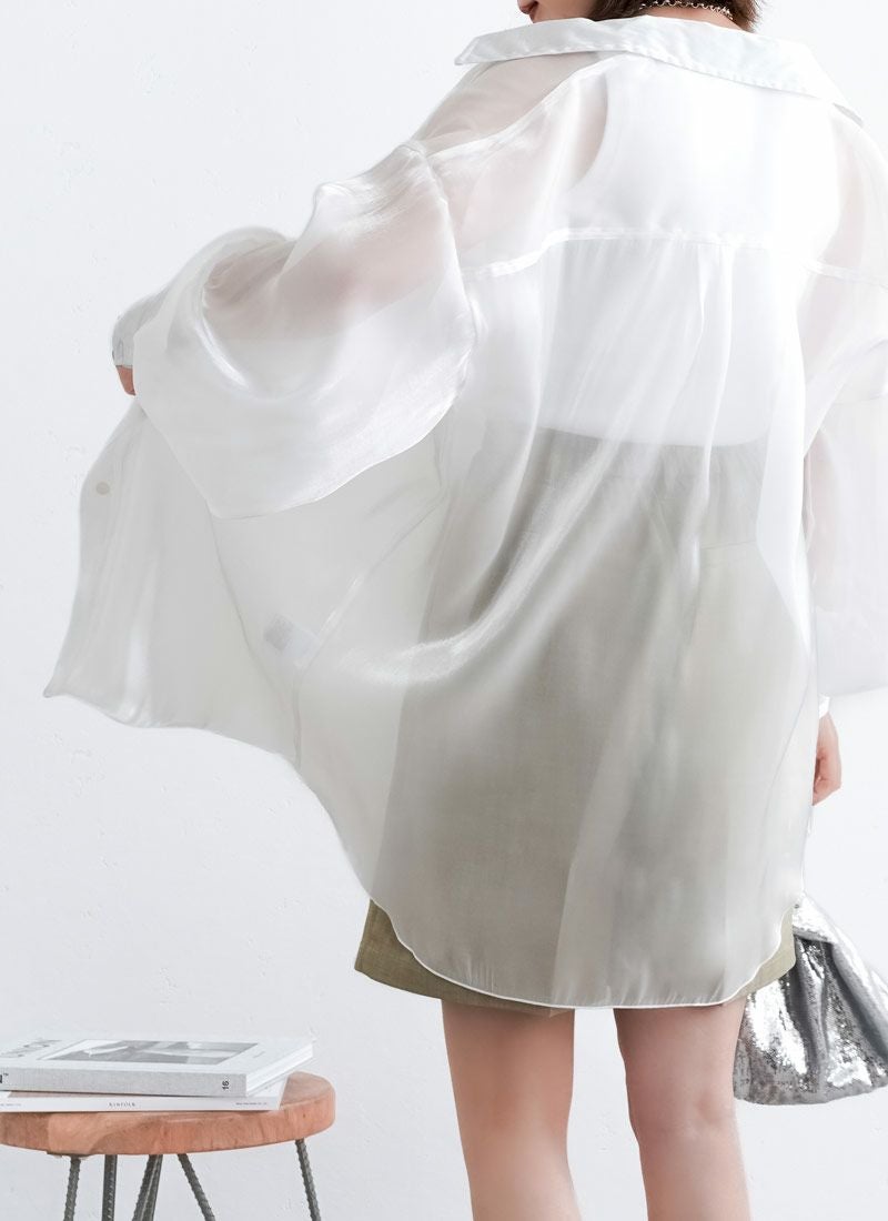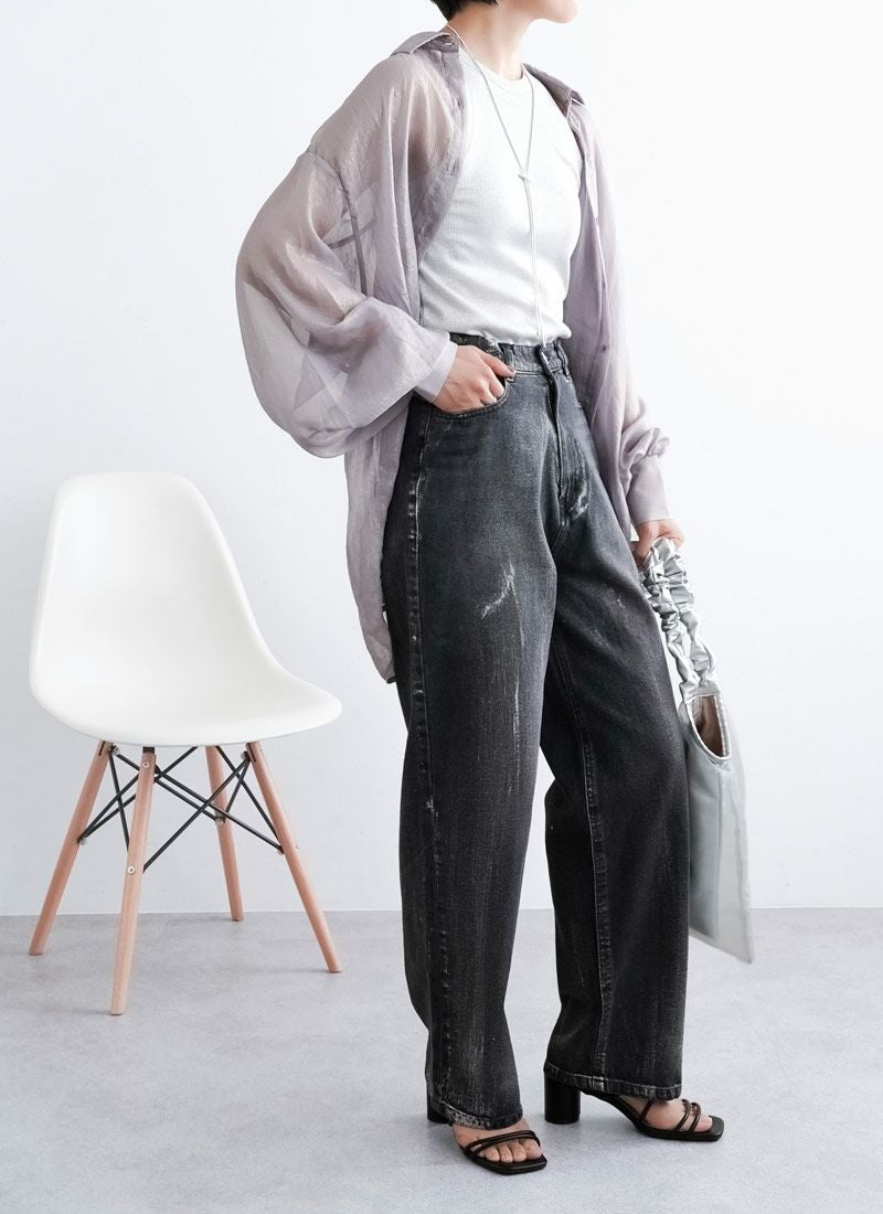 revoam【透け感とラメの上品なバランスで、大人の“こなれ感”を演出。羽織るだけで季節を先取りする、オーガンジーシャツ】 【10%OFF】ラメオーガンジーシャツ