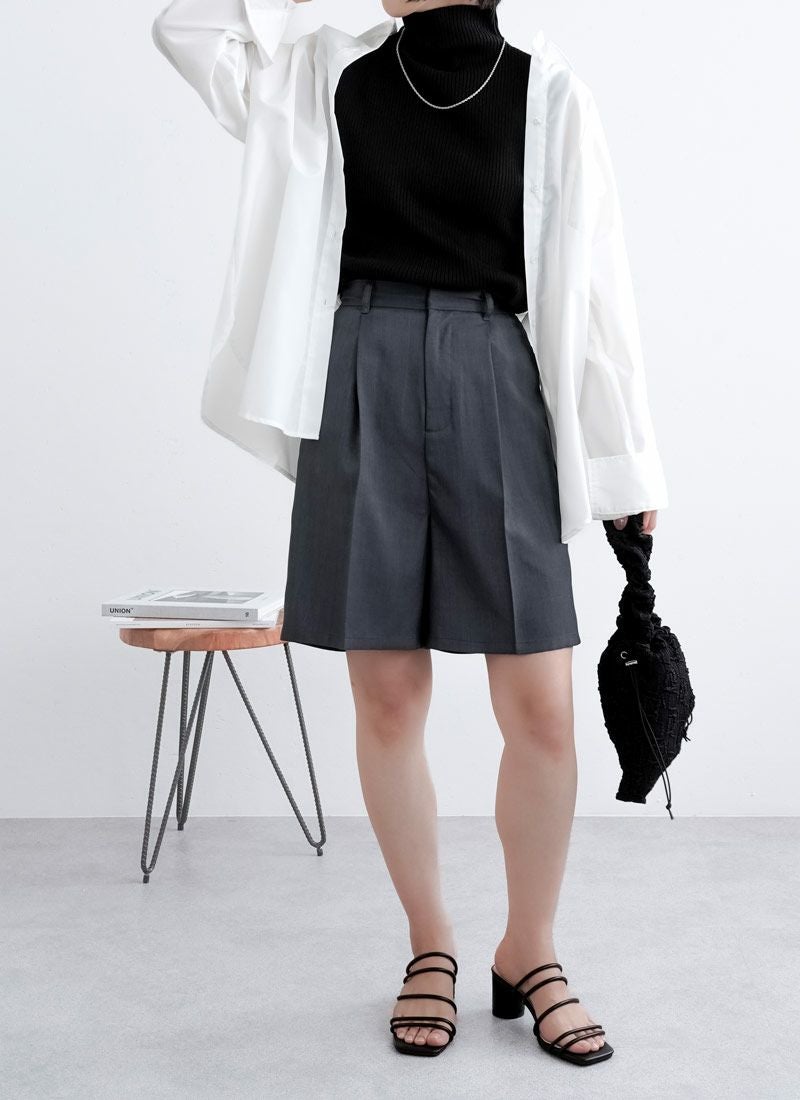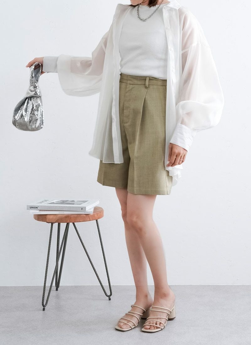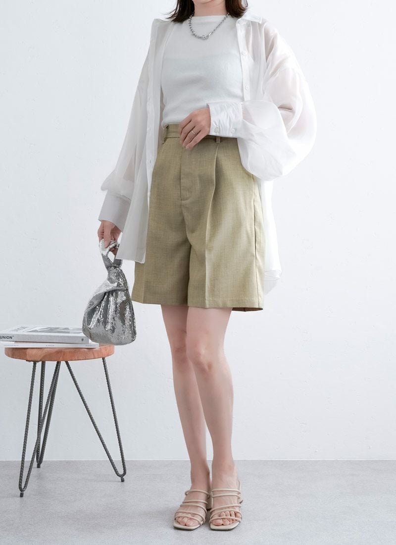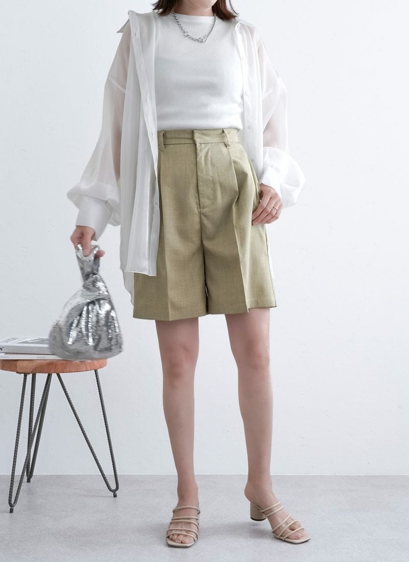 revoam【軽やかに上品に。ハーフ丈でも大人見えを叶える、絶妙なシルエットと素材感】 【20%OFF】ヘザーエステルツイルハーフパンツ