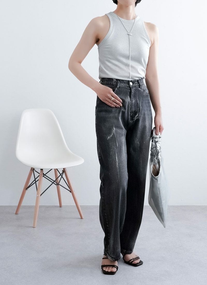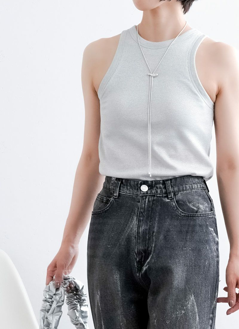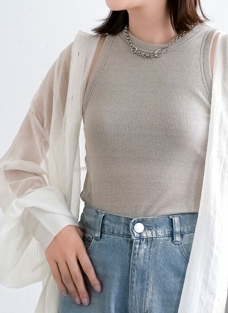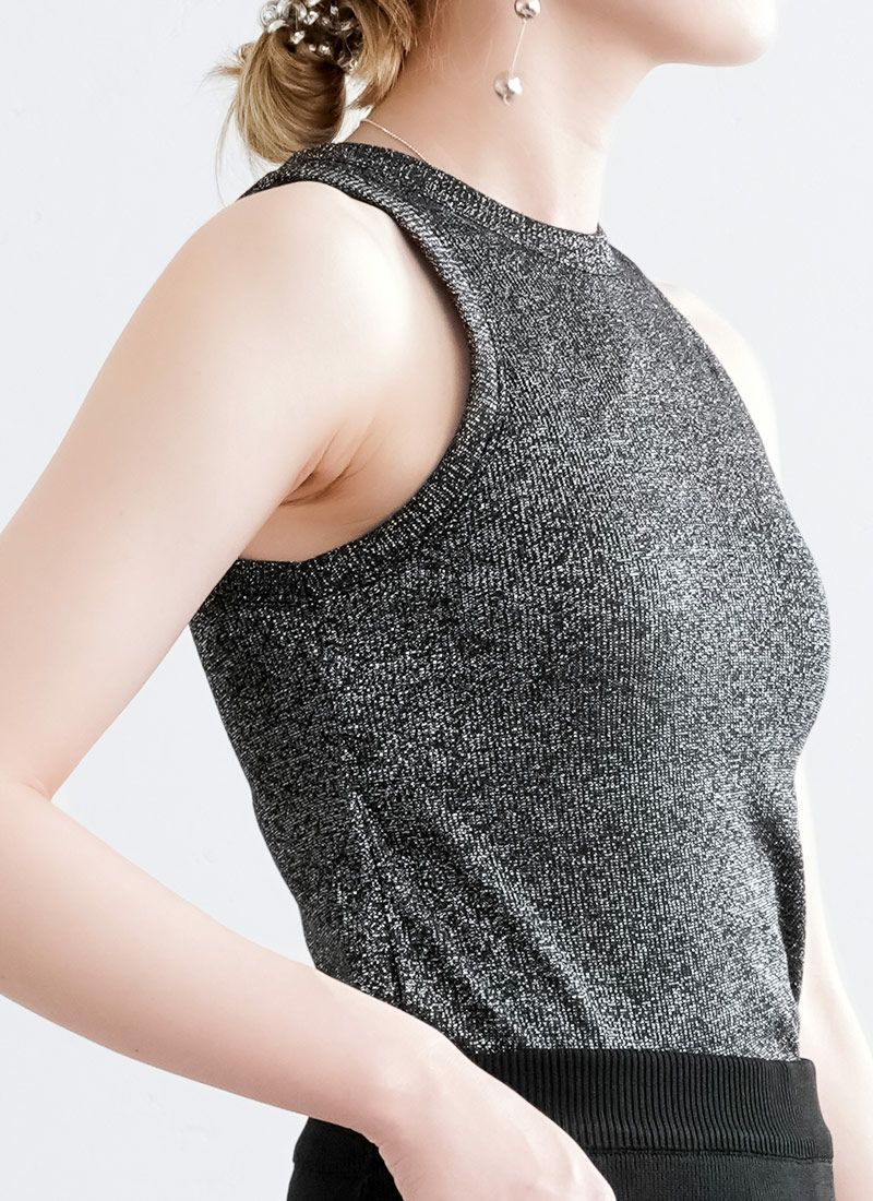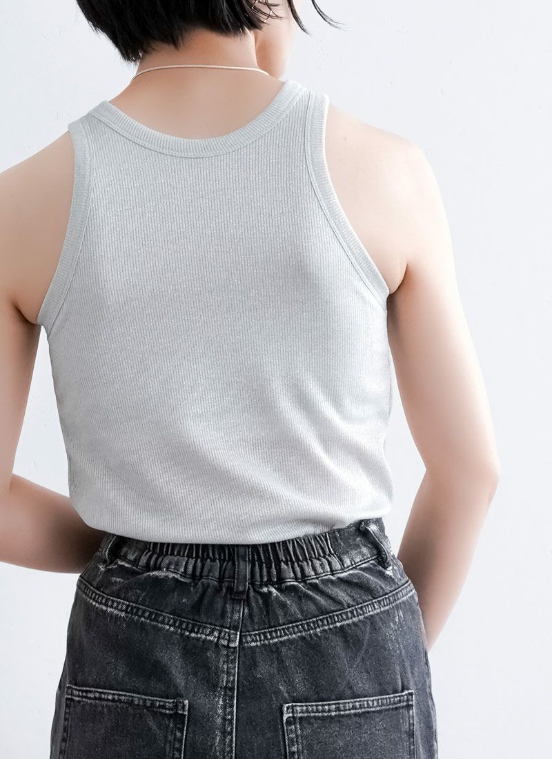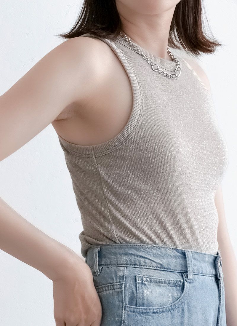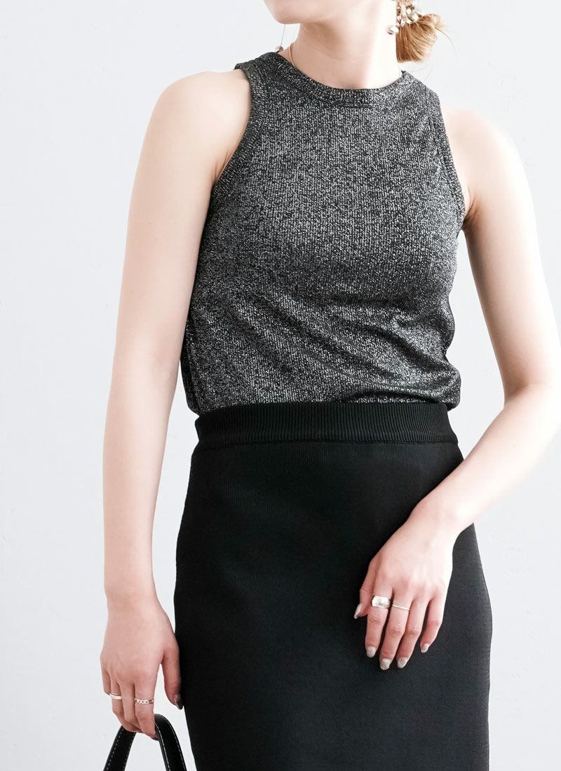 revoam【ラメのきらめきで、ヘルシーな夏スタイルに。アメスリ×カップ付きで、ブラいらずの抜け感タンク】 【20%OFF】カップ付きラメアメスリタンク