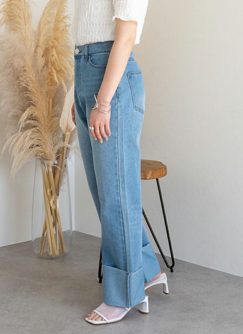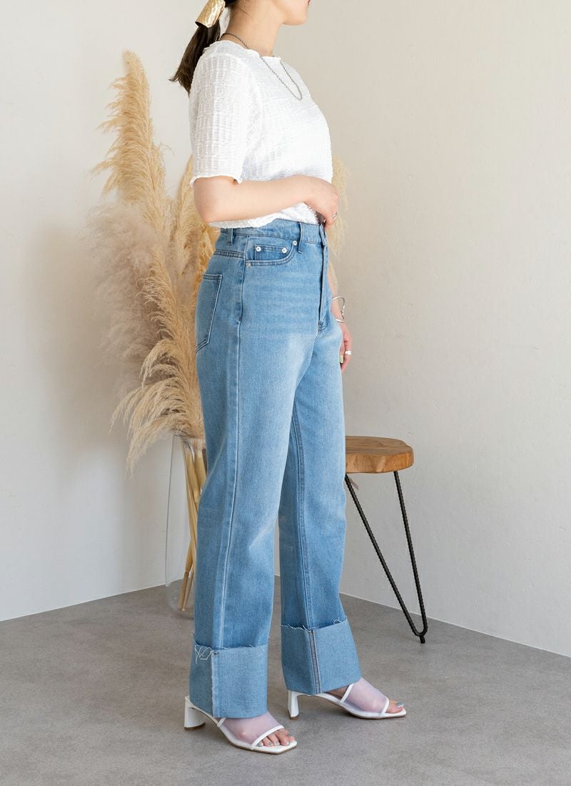 revoam【旬のバランス、叶える1本。ロールアップで足元軽やか、脚長見えもきれいに】 【35%OFF】デニムロールアップパンツ