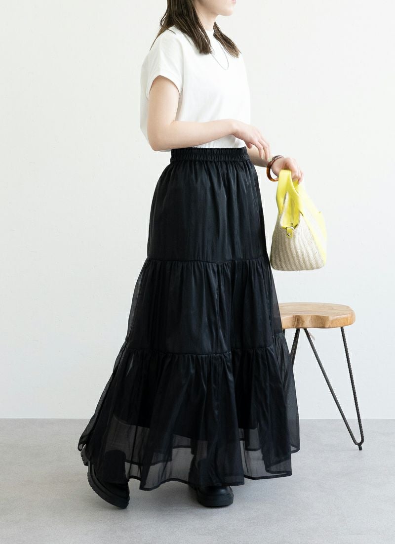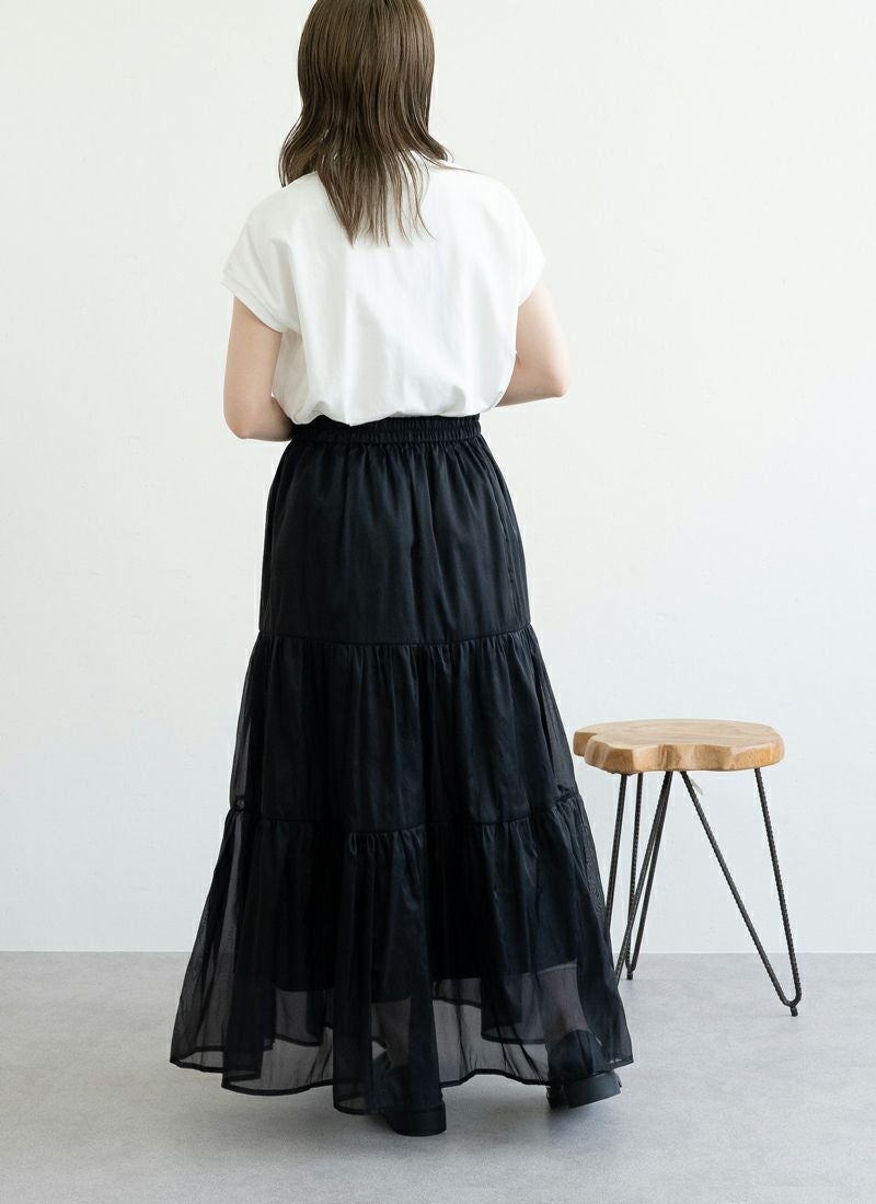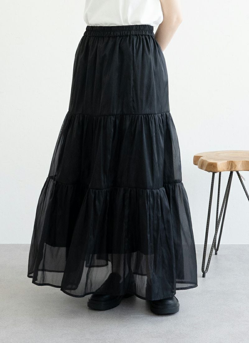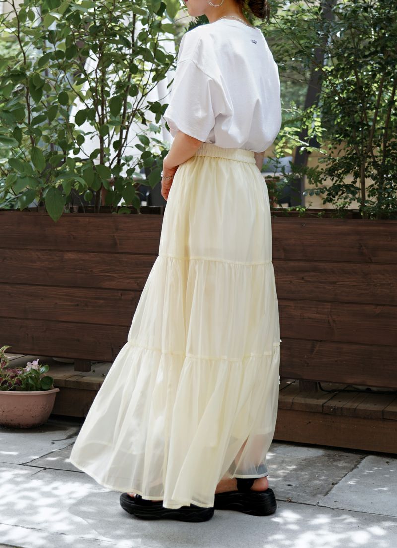 revoam【ふわっと広がるボリューム感が魅力。涼しげに揺れる、オーガンジースカート】 【30%OFF】ブロードオーガンジーティアードスカート