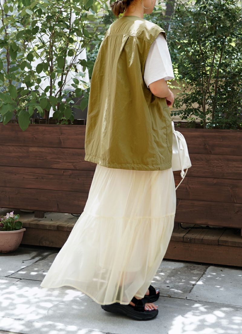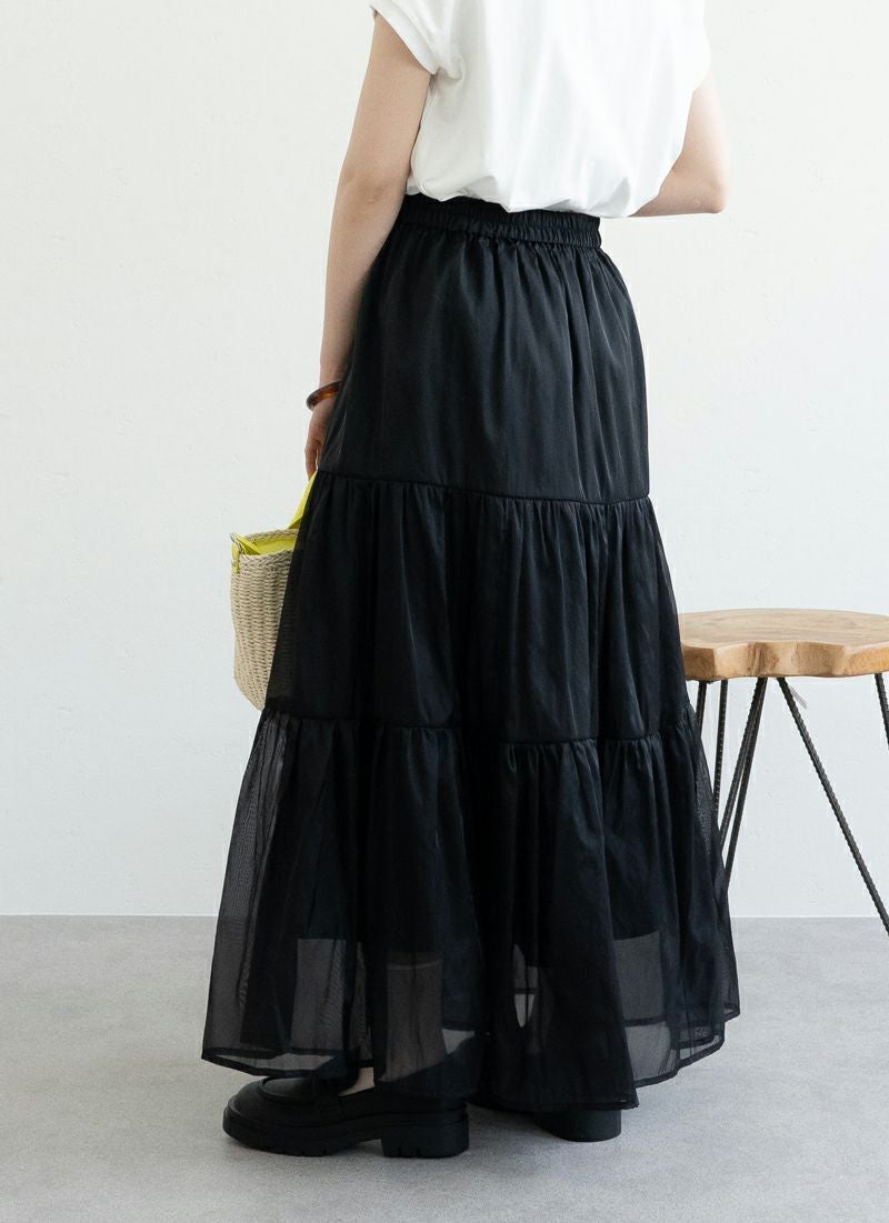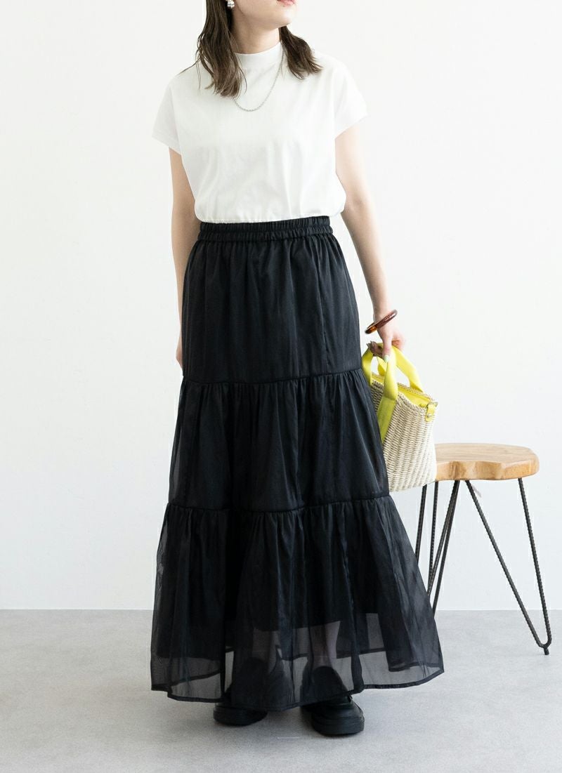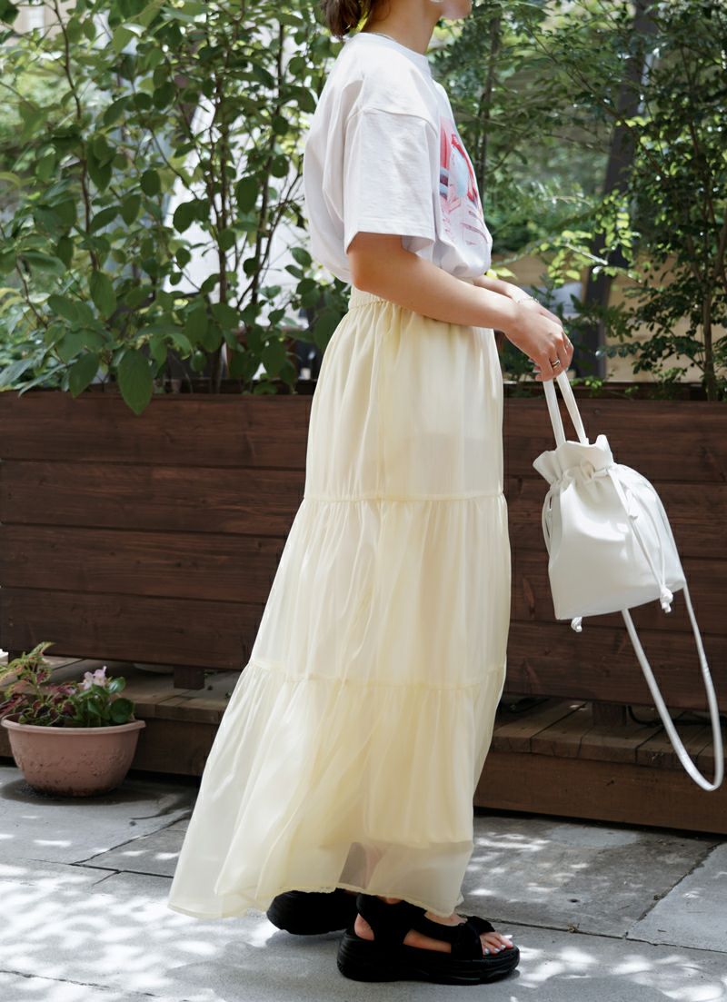 revoam【ふわっと広がるボリューム感が魅力。涼しげに揺れる、オーガンジースカート】 【30%OFF】ブロードオーガンジーティアードスカート