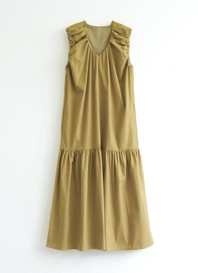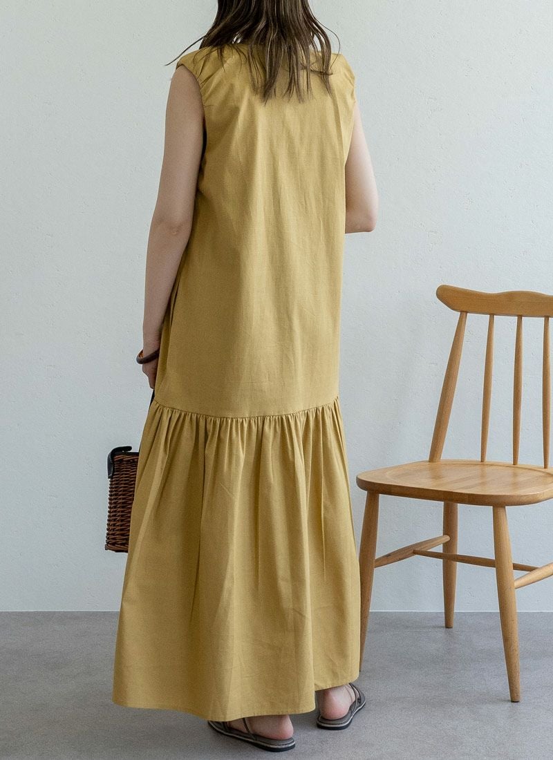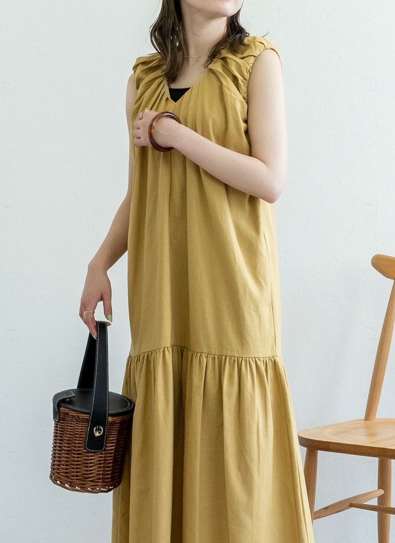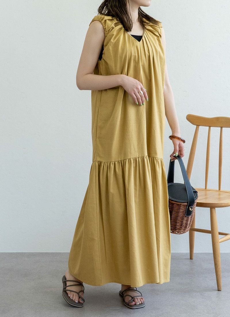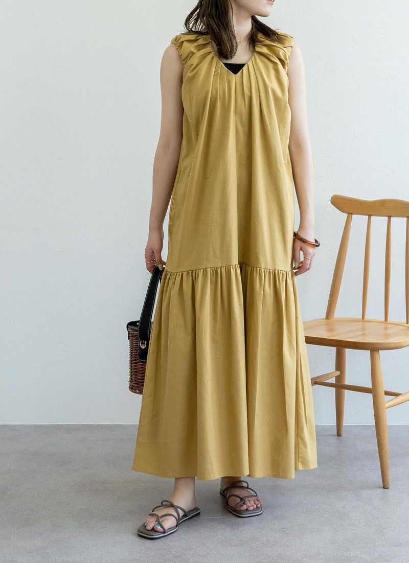 revoam【らくちん×可愛いが両立。大人のための体型カバー美シルエット】 【35%OFF】ワッシャータフタギャザーノースリワンピース