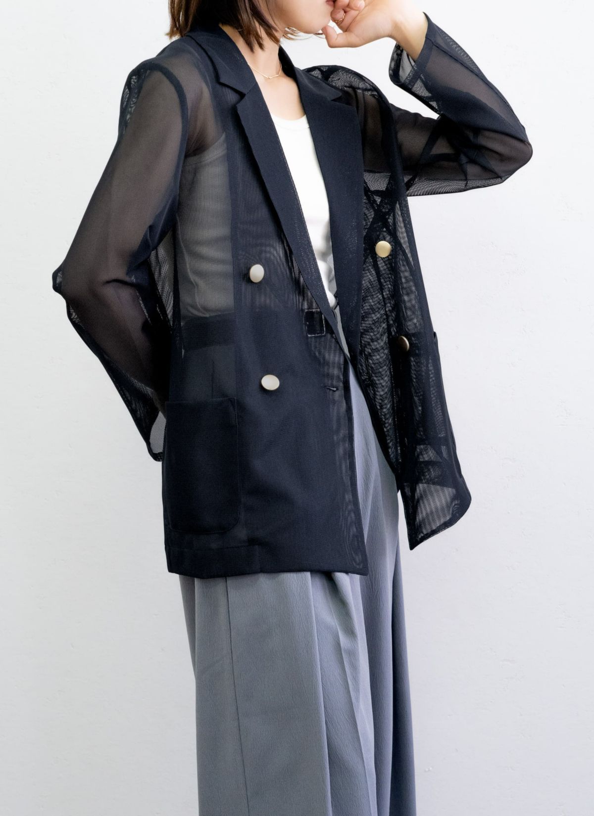 revoam【羽織るだけで今っぽい旬顔ジャケット】 メッシュテーラードジャケット