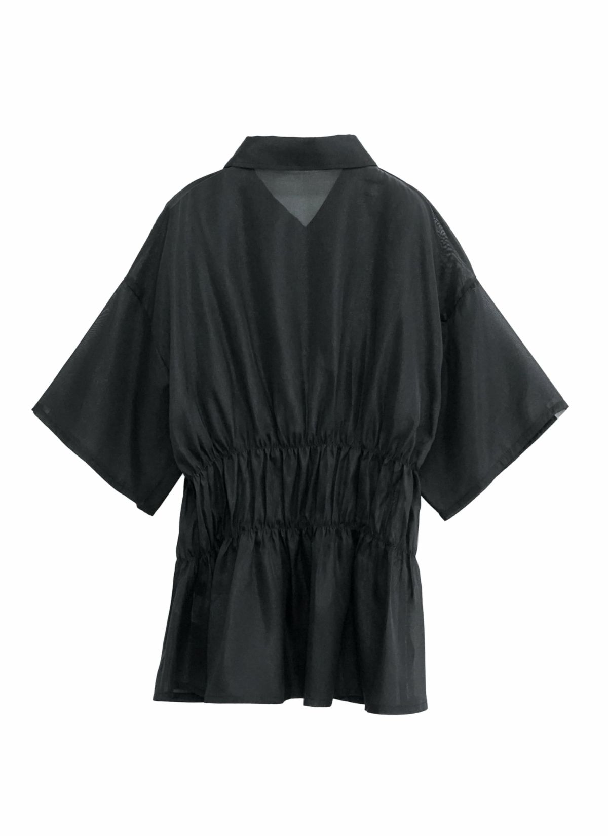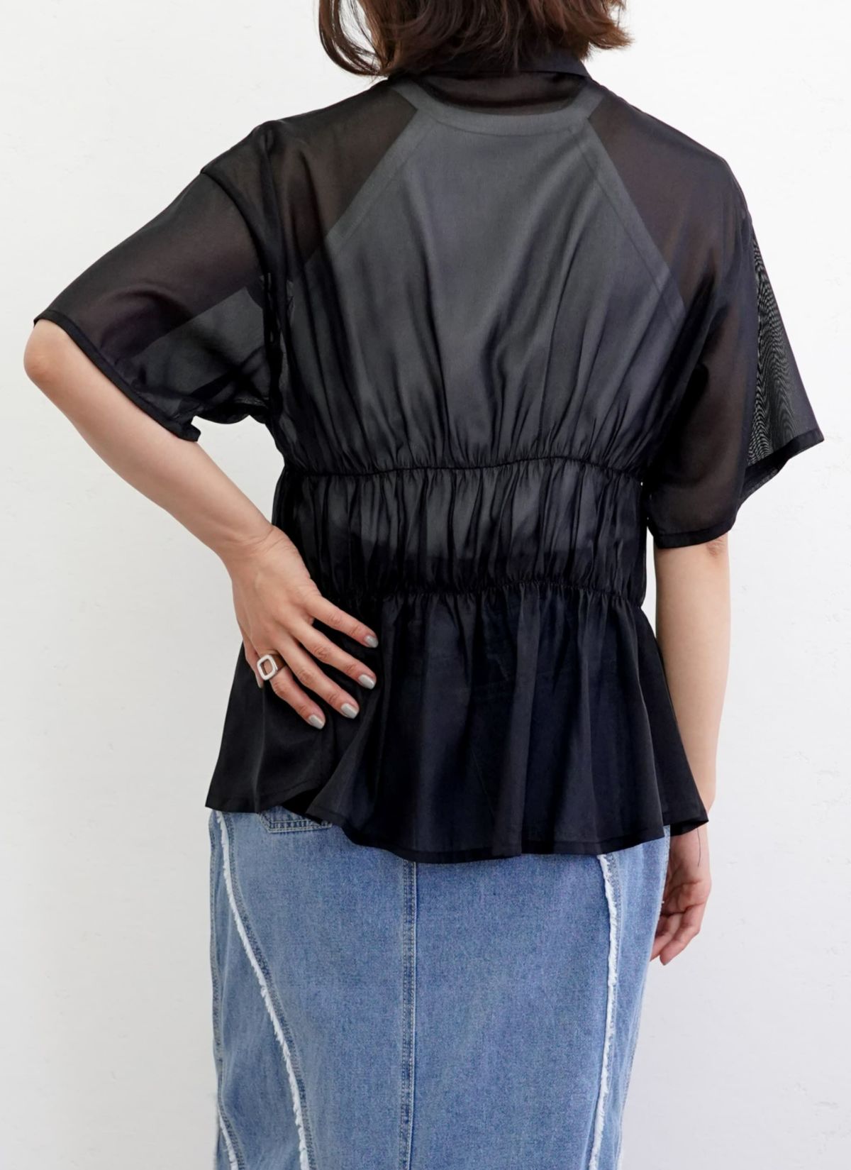 revoam【シャーリングとラメシアーが作り出す美シルエットな1枚◎】 【15%OFF】シャーリングハーフスリーブシャツ