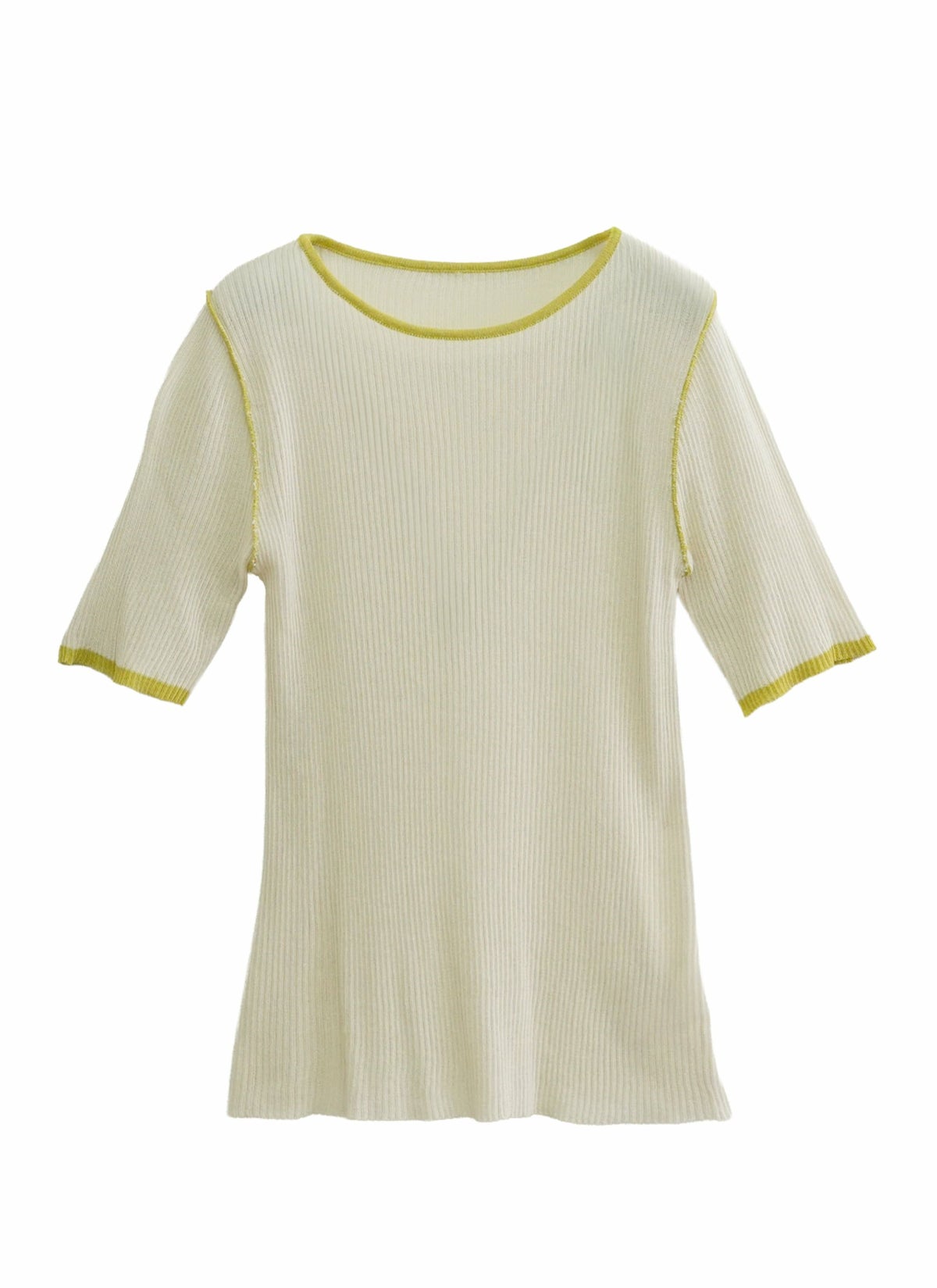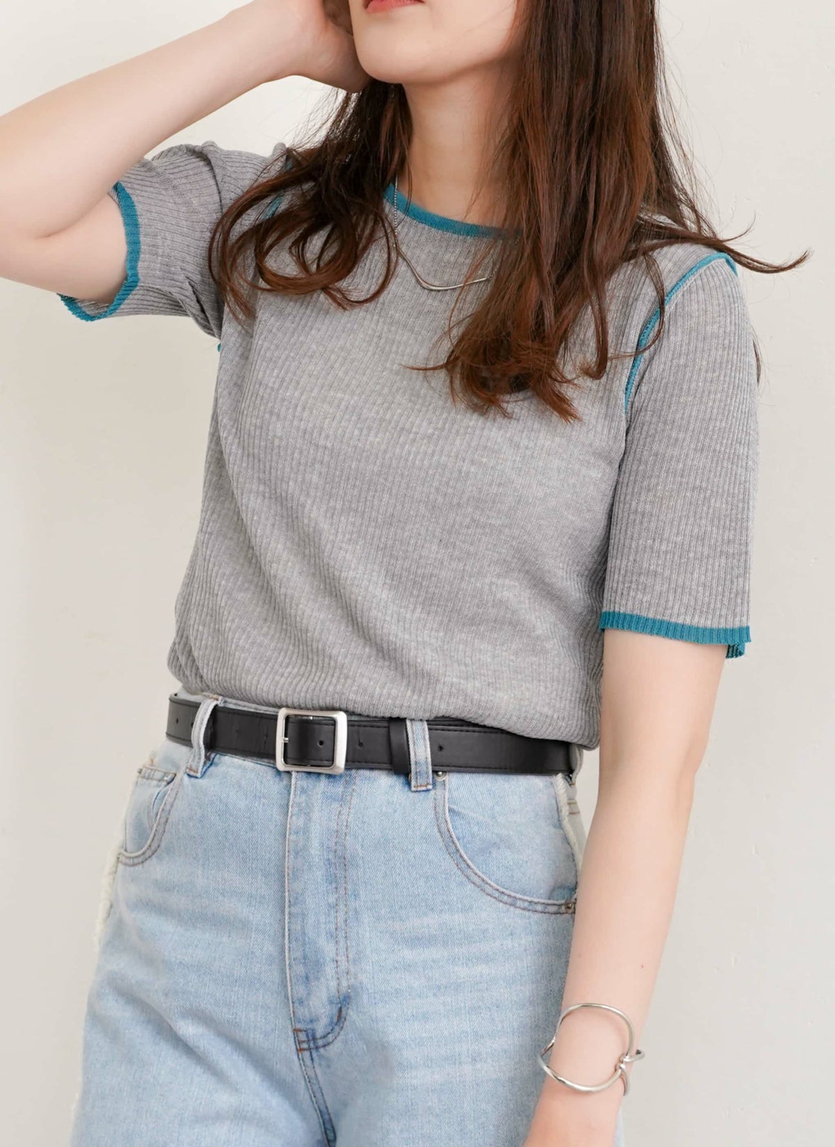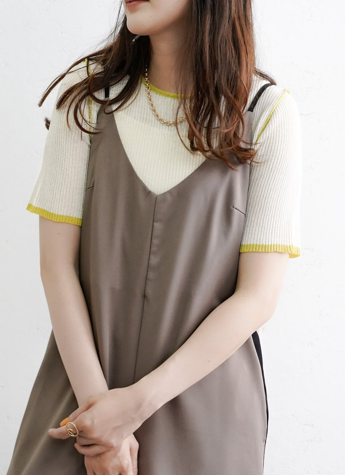 revoam【コーデに大活躍の配色プルオーバー】 麻タッチ配色デザインクルーネックトップス