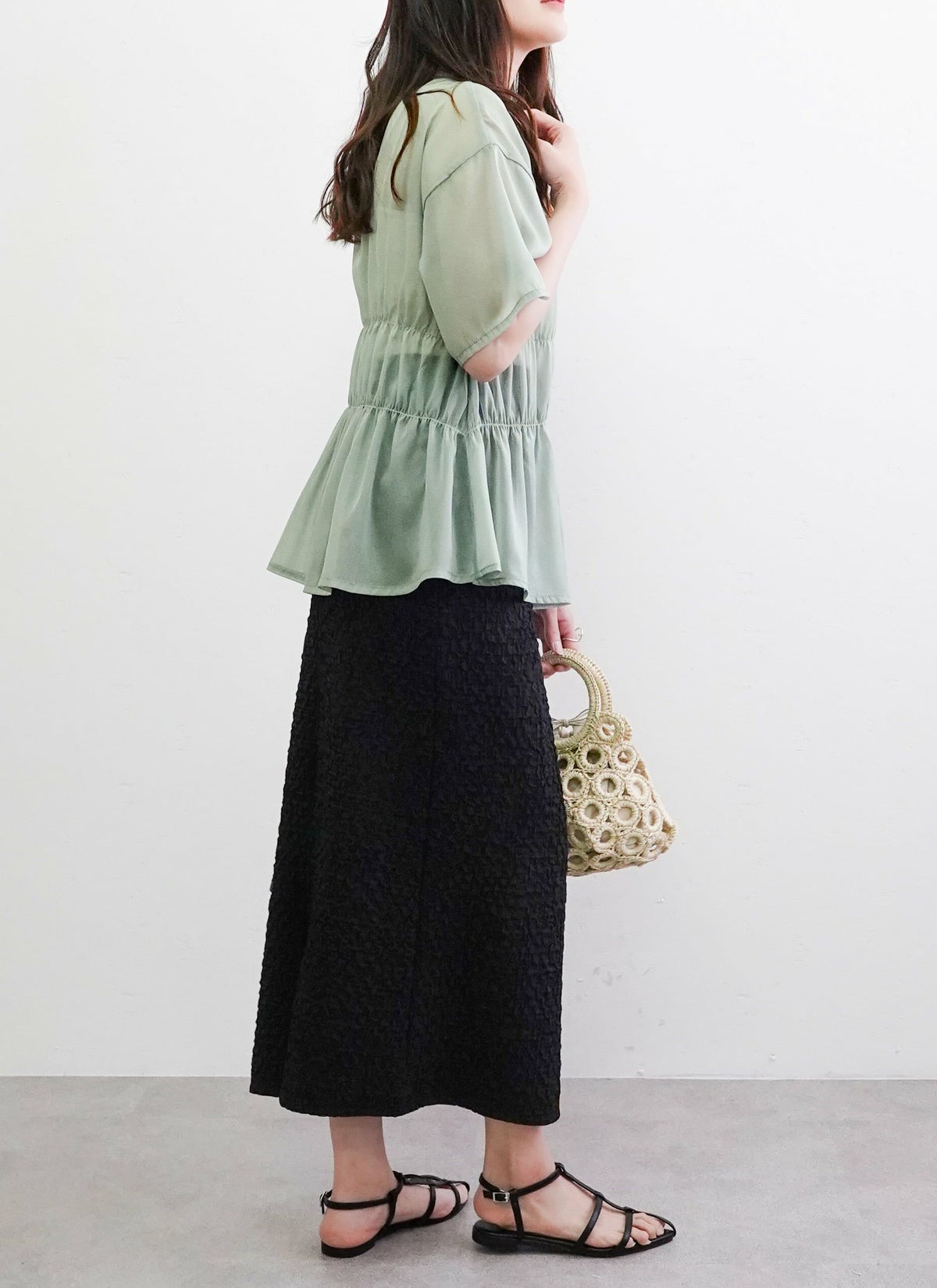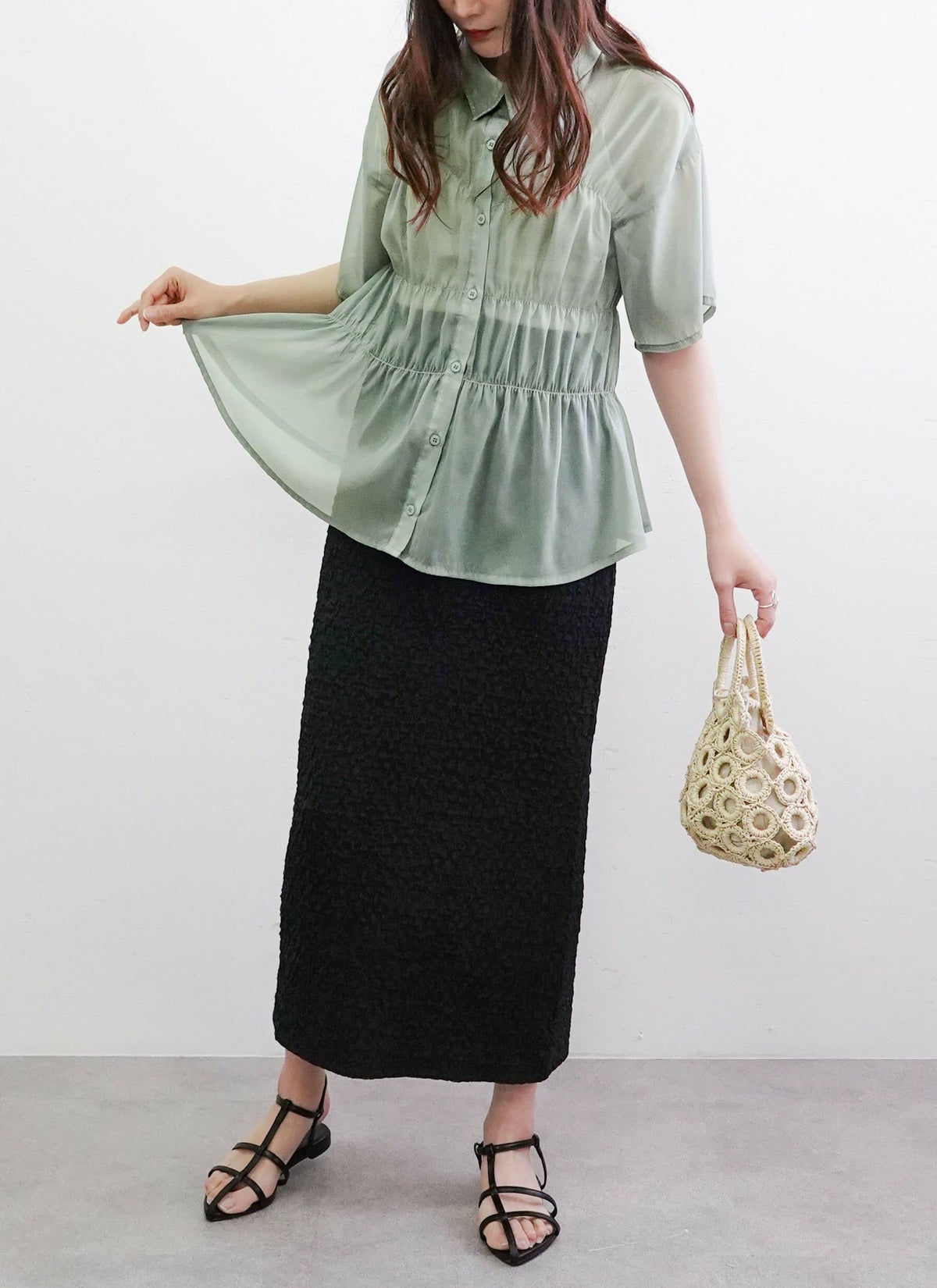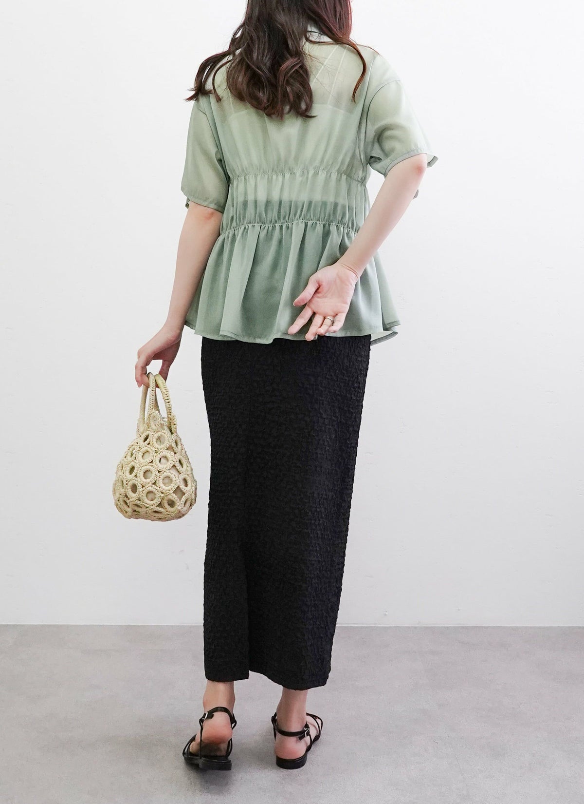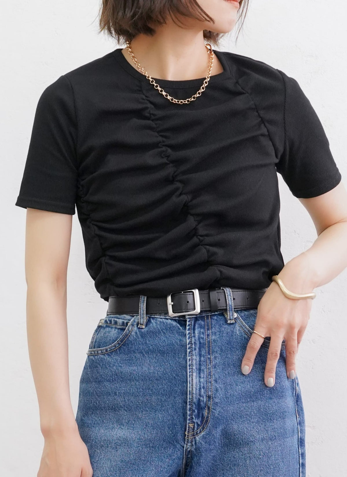 revoam【シャーリングとラメシアーが作り出す美シルエットな1枚◎】 【15%OFF】シャーリングハーフスリーブシャツ