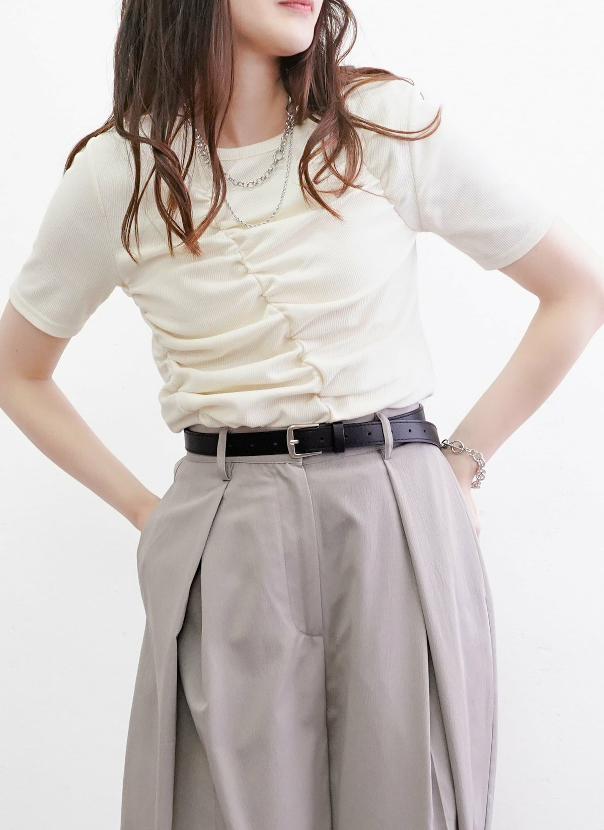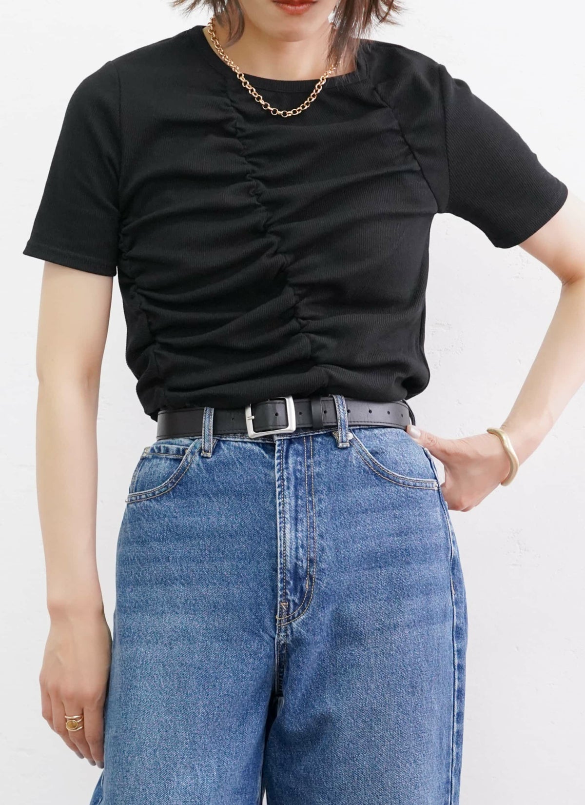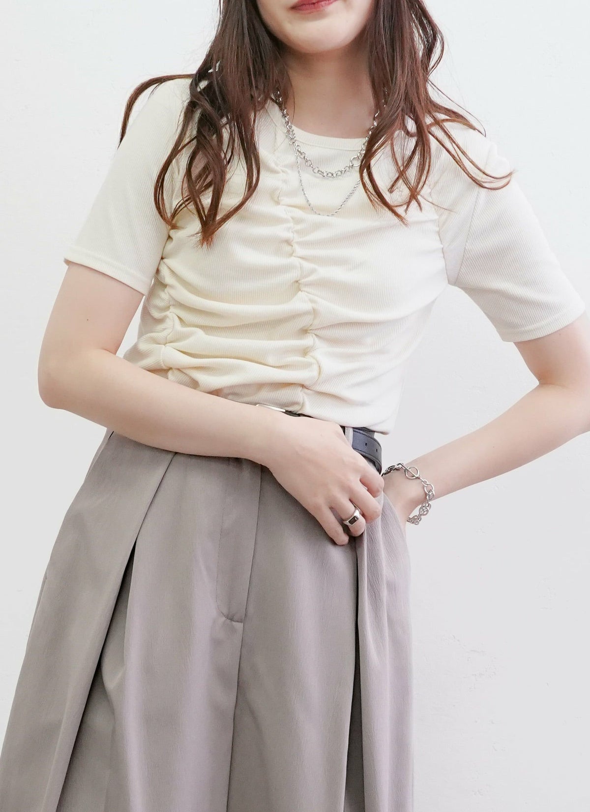 revoam【シャーリングとラメシアーが作り出す美シルエットな1枚◎】 【15%OFF】シャーリングハーフスリーブシャツ
