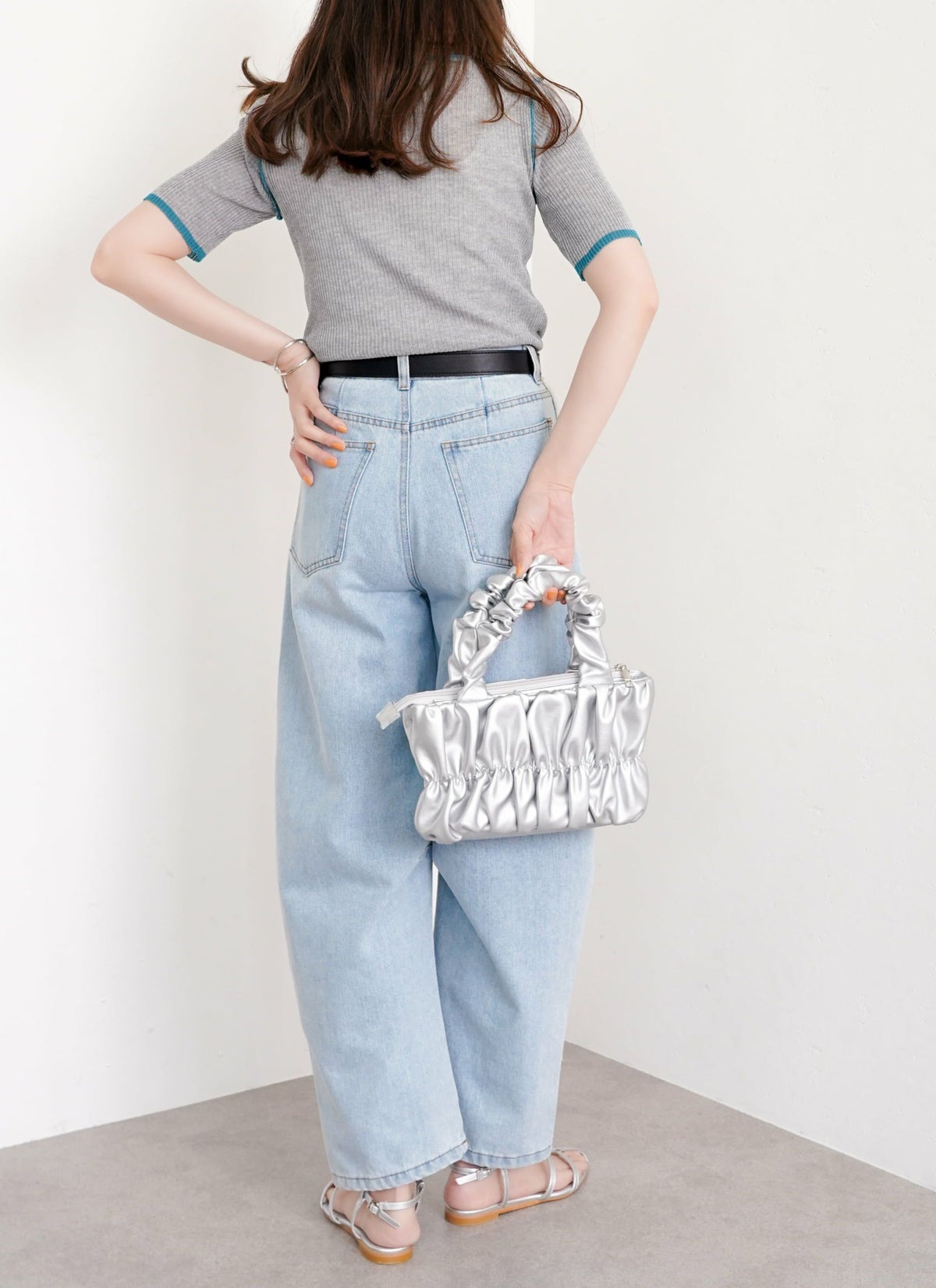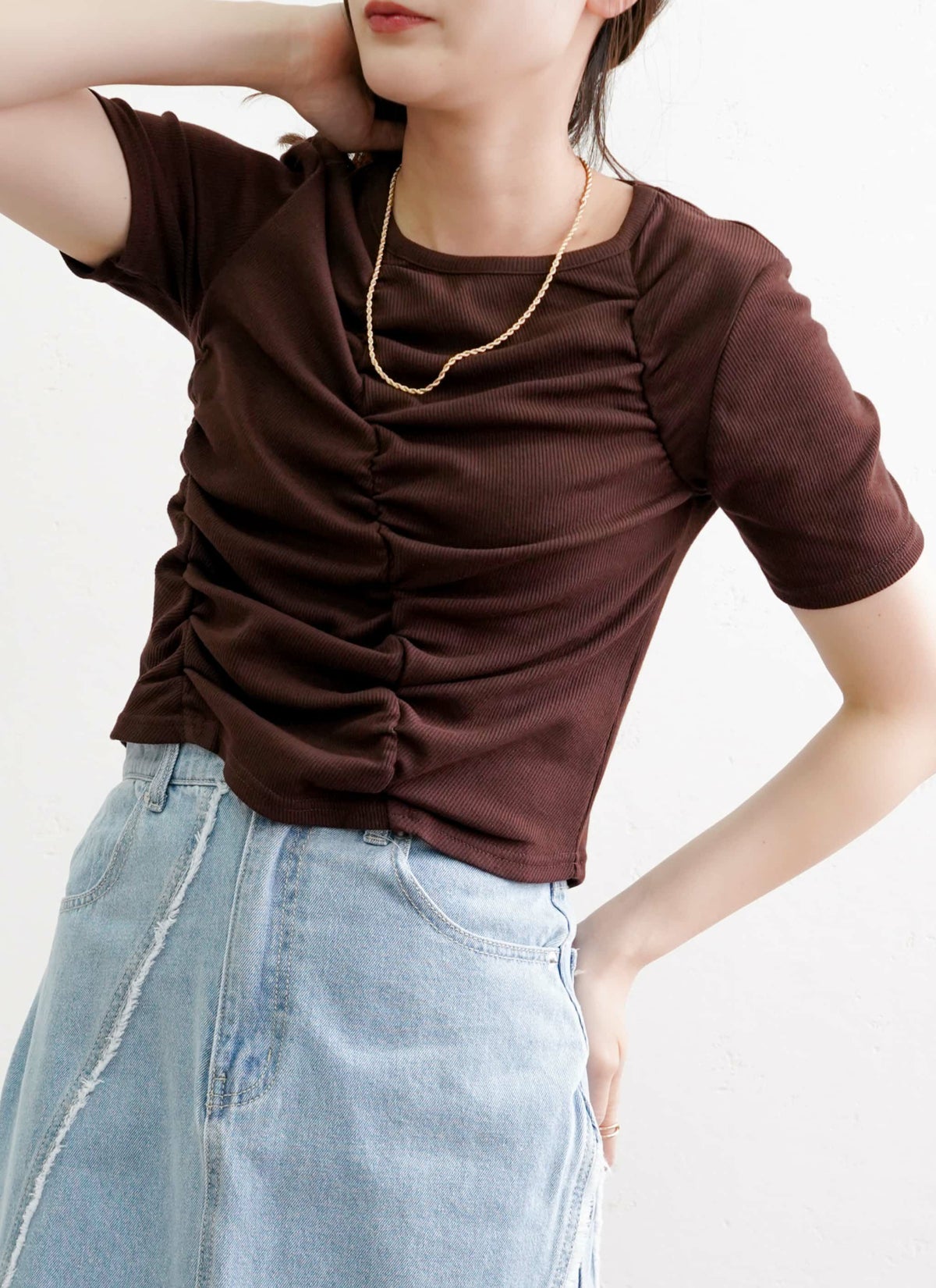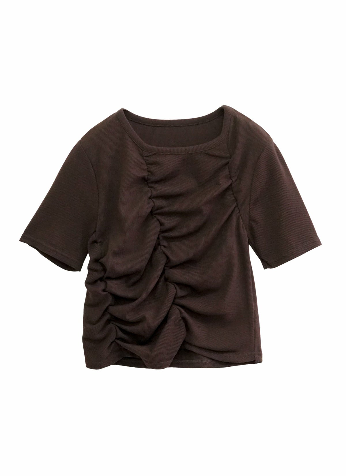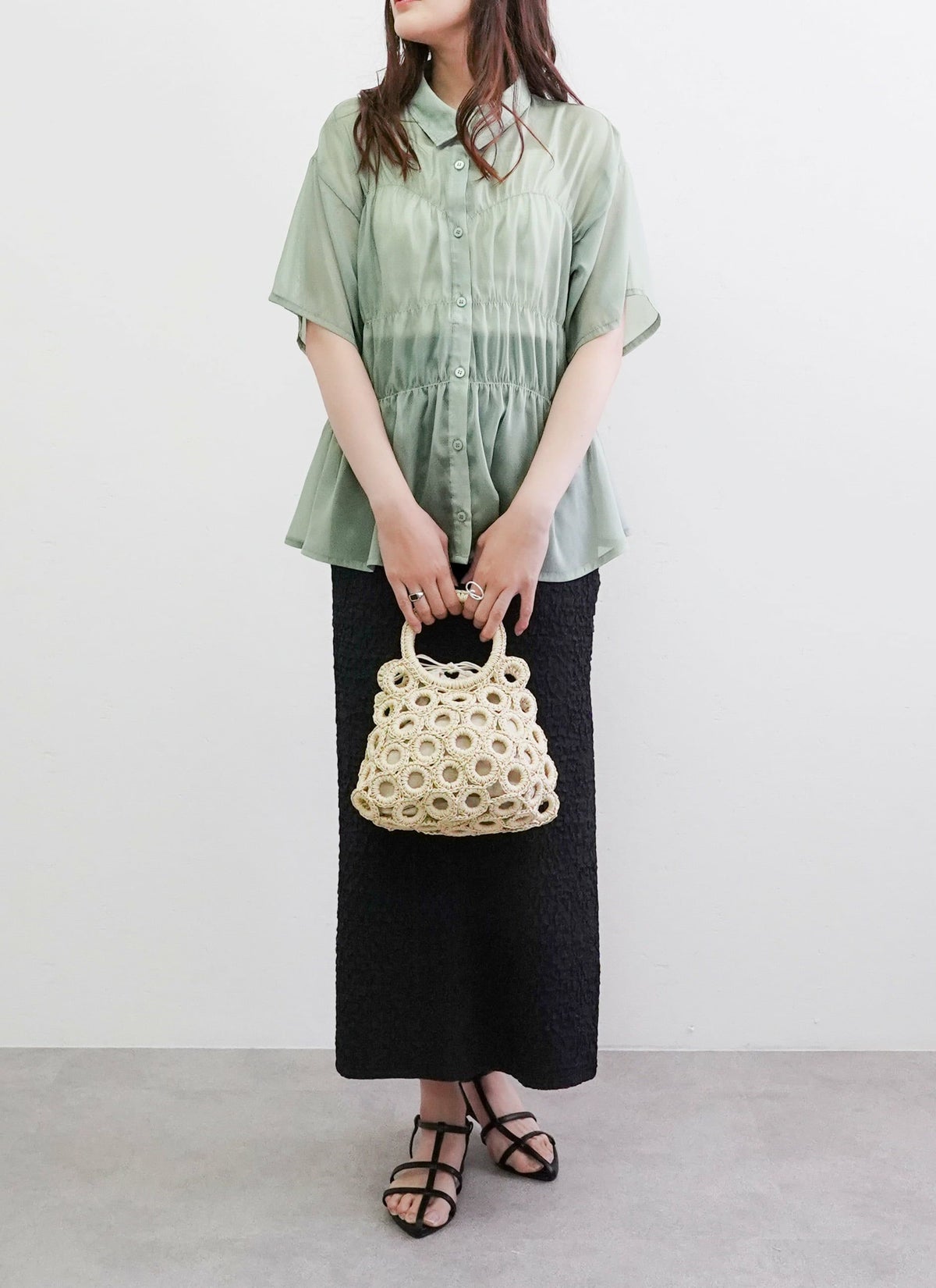 revoam【シャーリングとラメシアーが作り出す美シルエットな1枚◎】 【15%OFF】シャーリングハーフスリーブシャツ