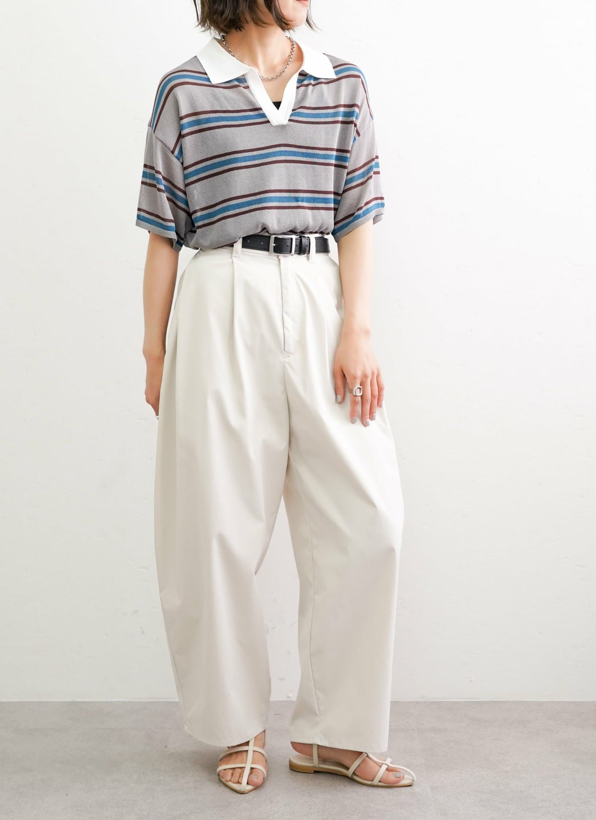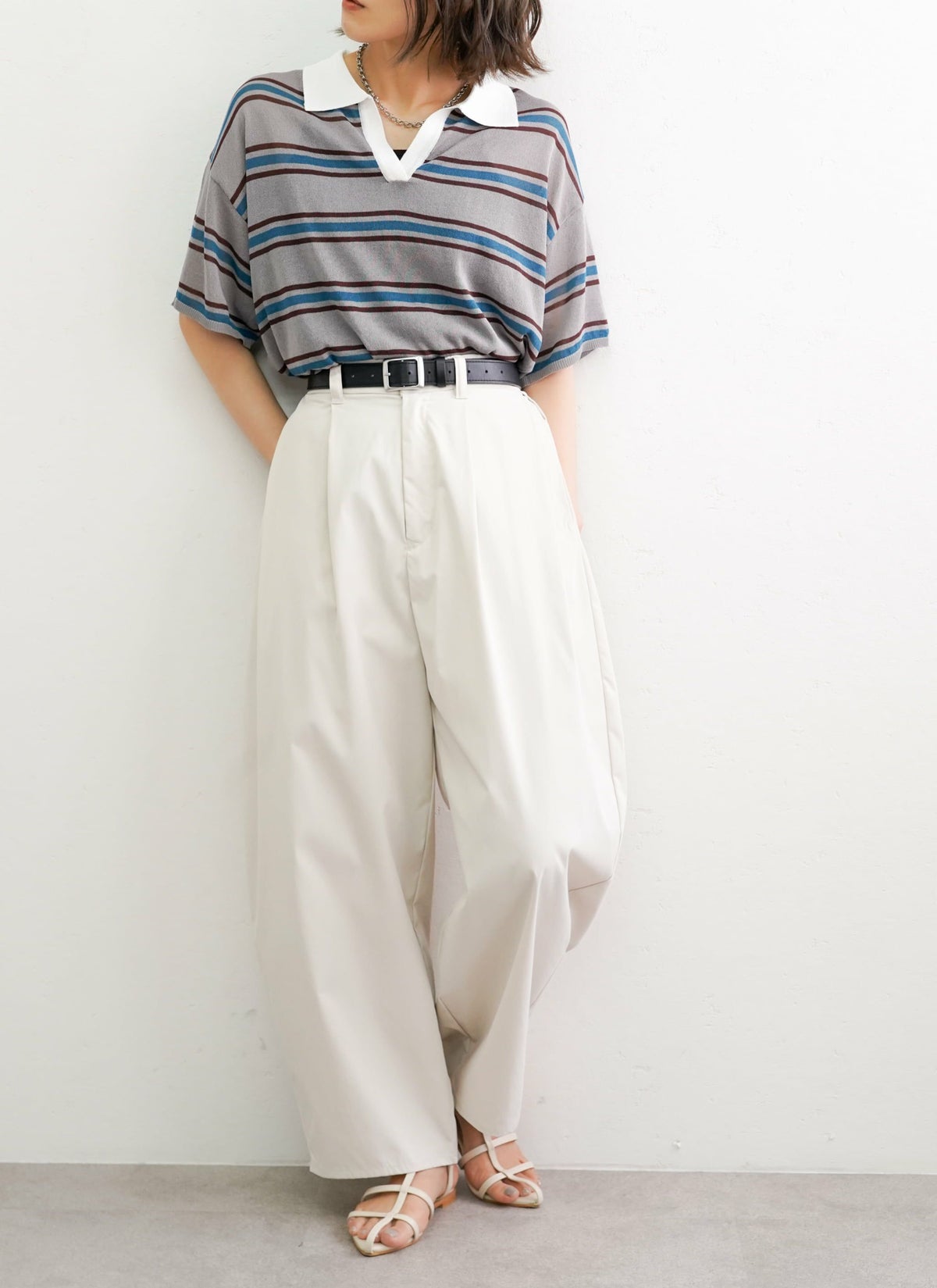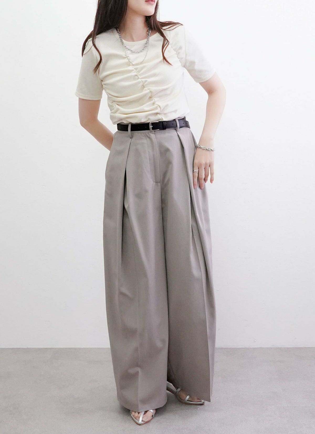 revoam【ミニマルな大人セットアップ ◎】 【15%OFF】[SET]裏毛フレンチスリーブトップス+タックボリュームパンツセット