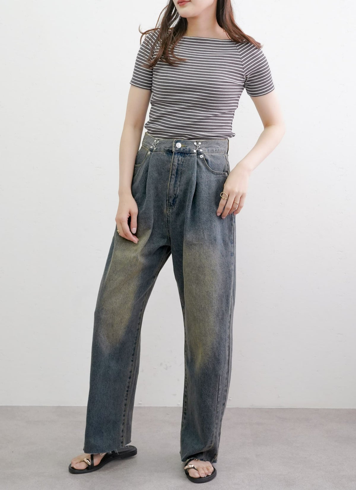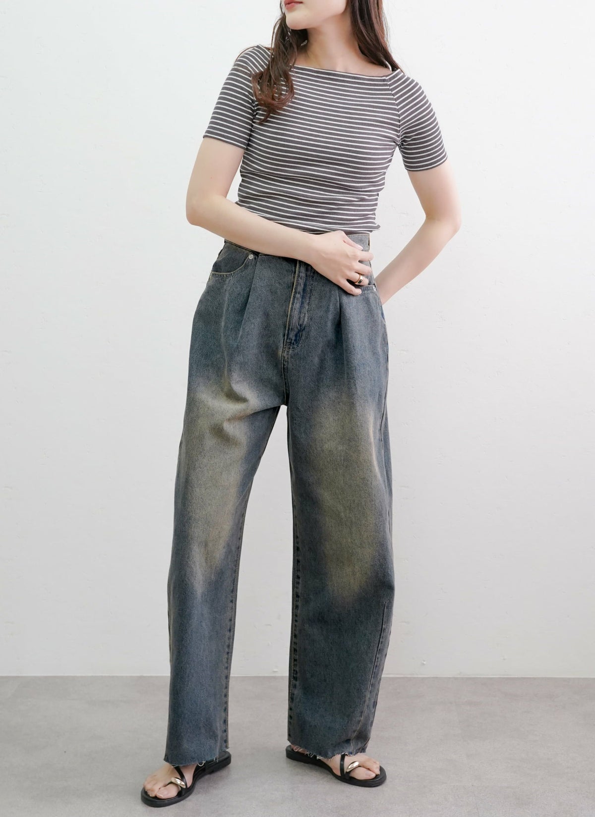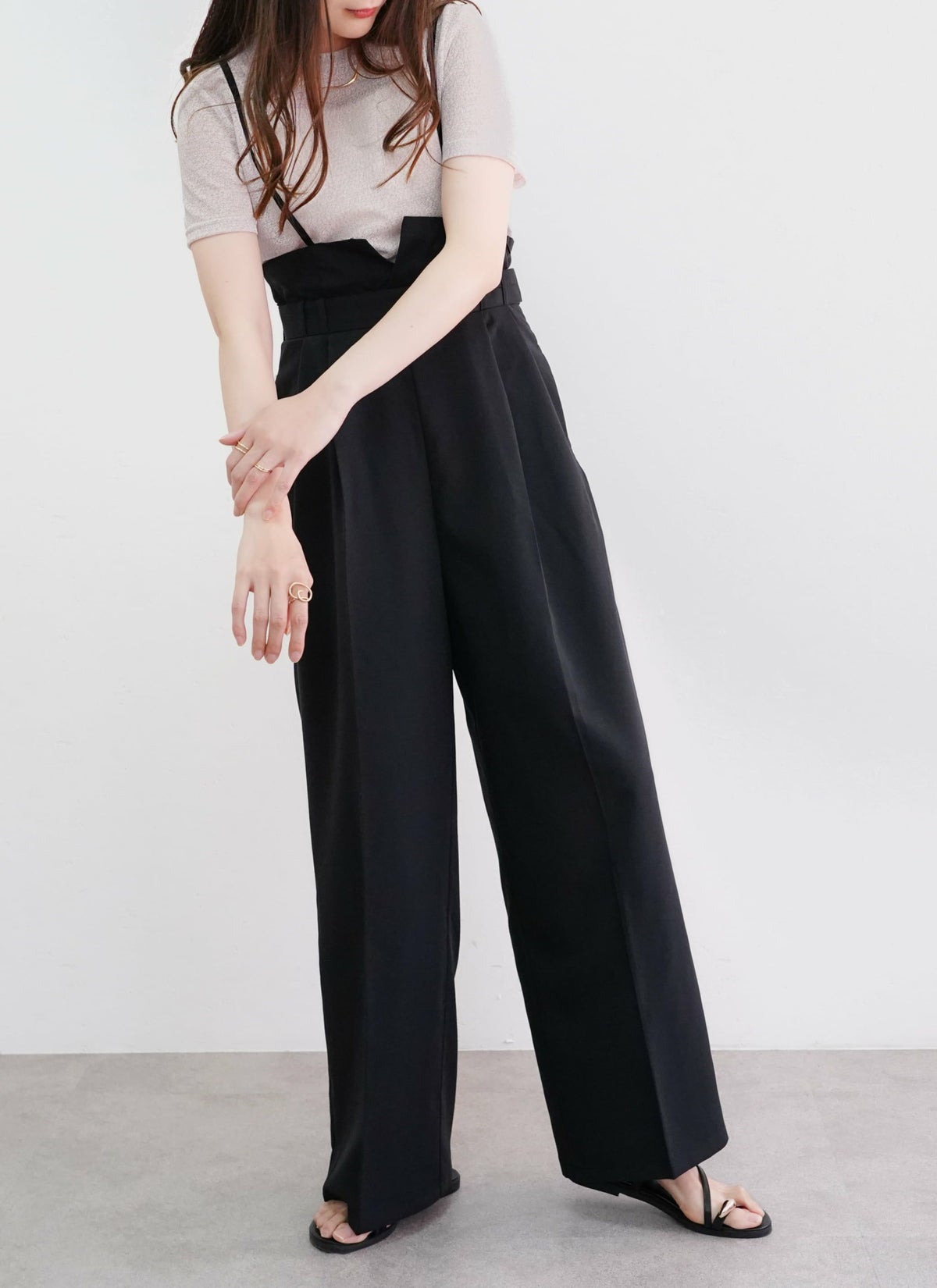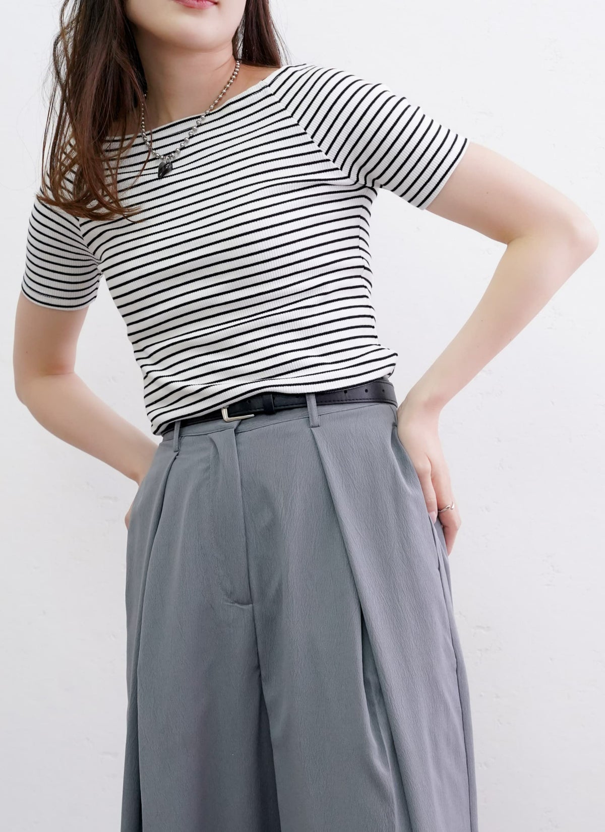 revoam【ミニマルな大人セットアップ ◎】 【15%OFF】[SET]裏毛フレンチスリーブトップス+タックボリュームパンツセット