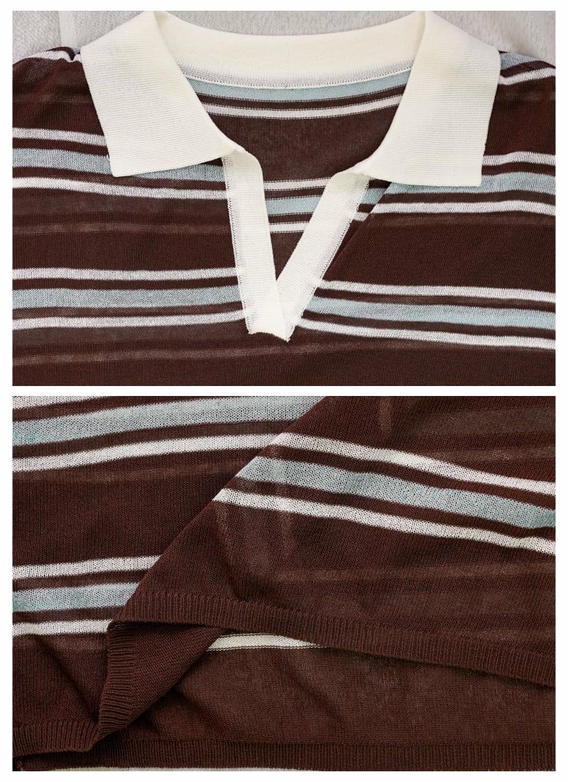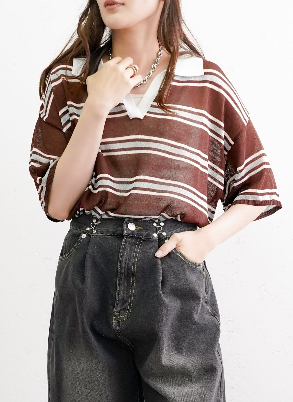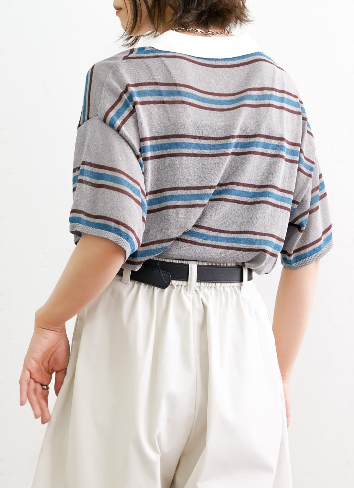 revoam【1枚でおしゃれ見え、ボーダーポロニット】 ボーダーポロニットプルオーバー