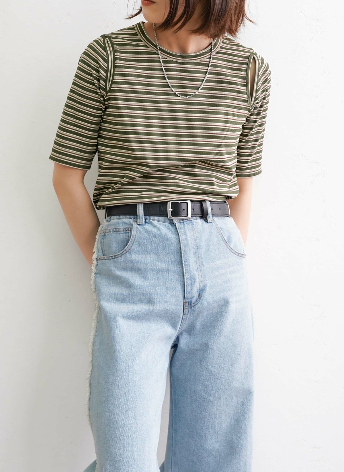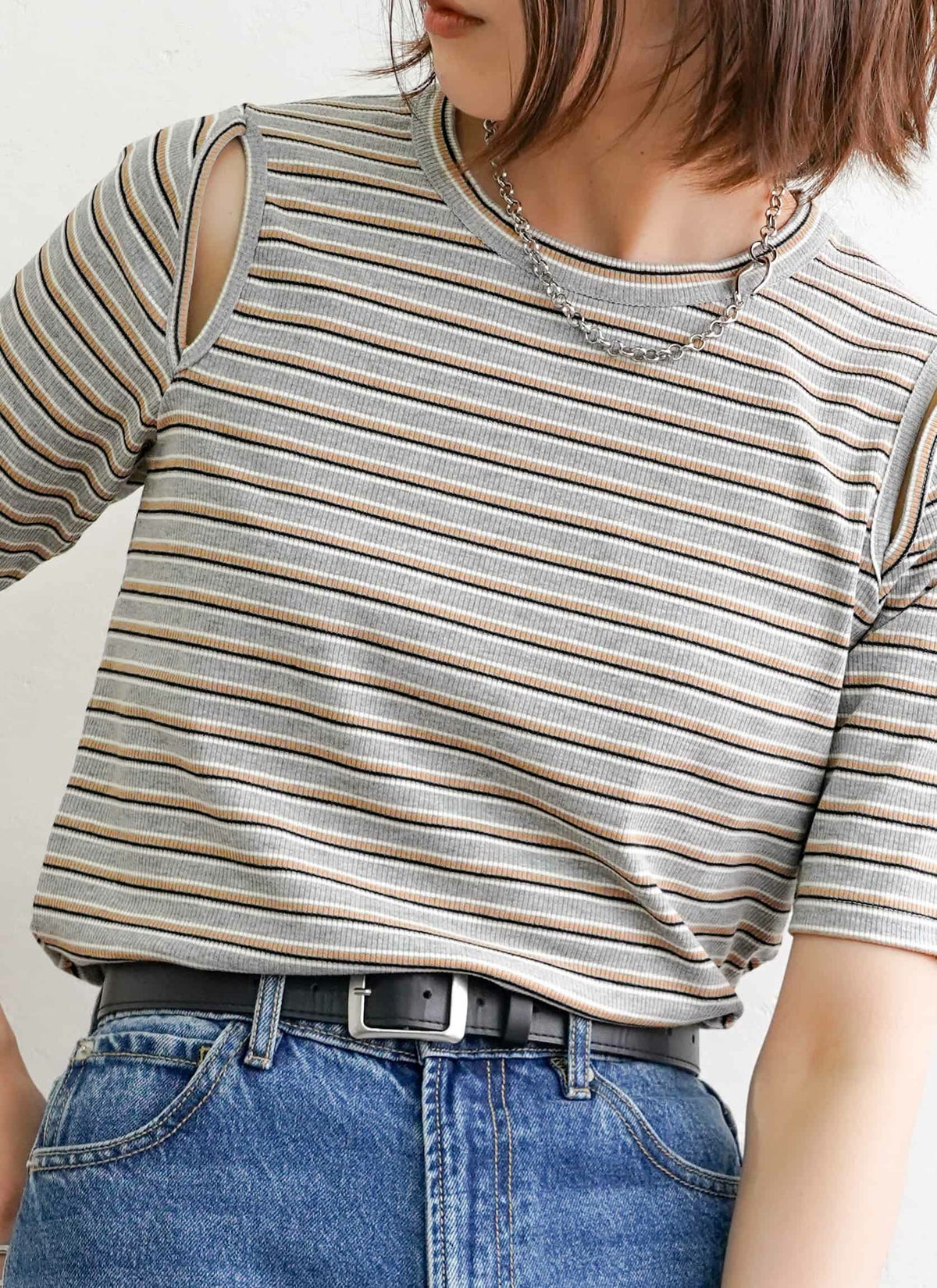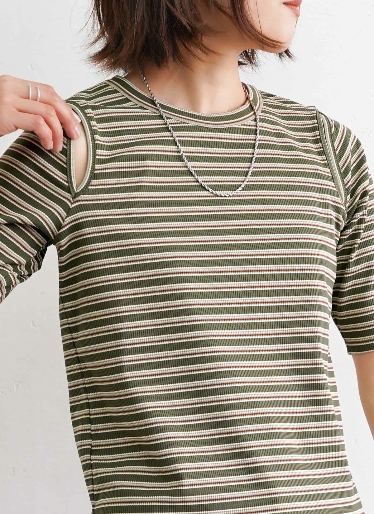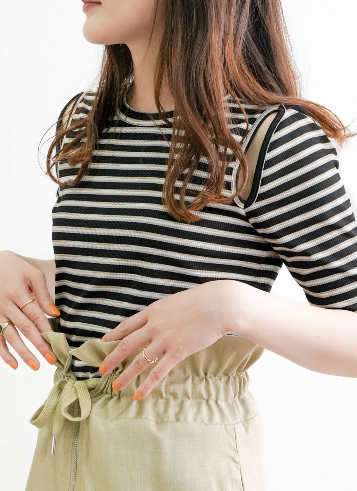 revoam【一枚でコーディネートの主役に◎】 ボーダーリブカットアウトプルオーバー