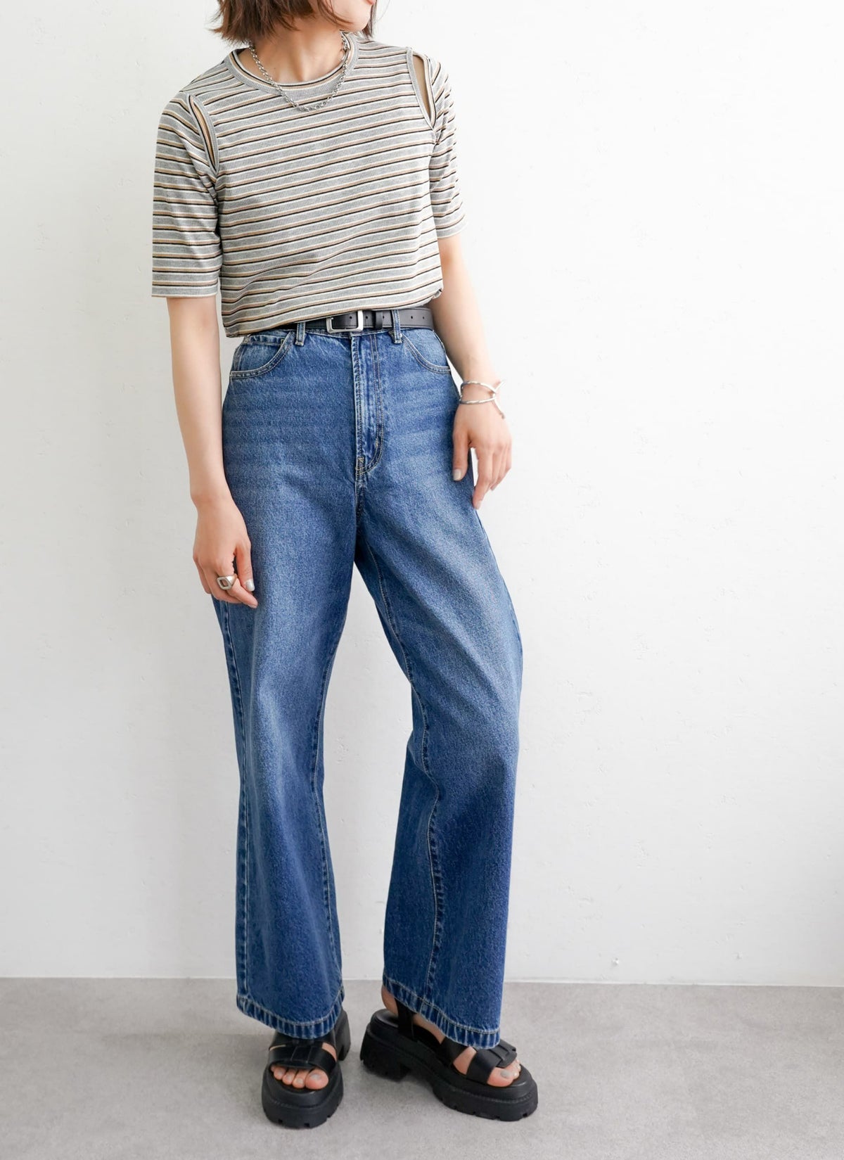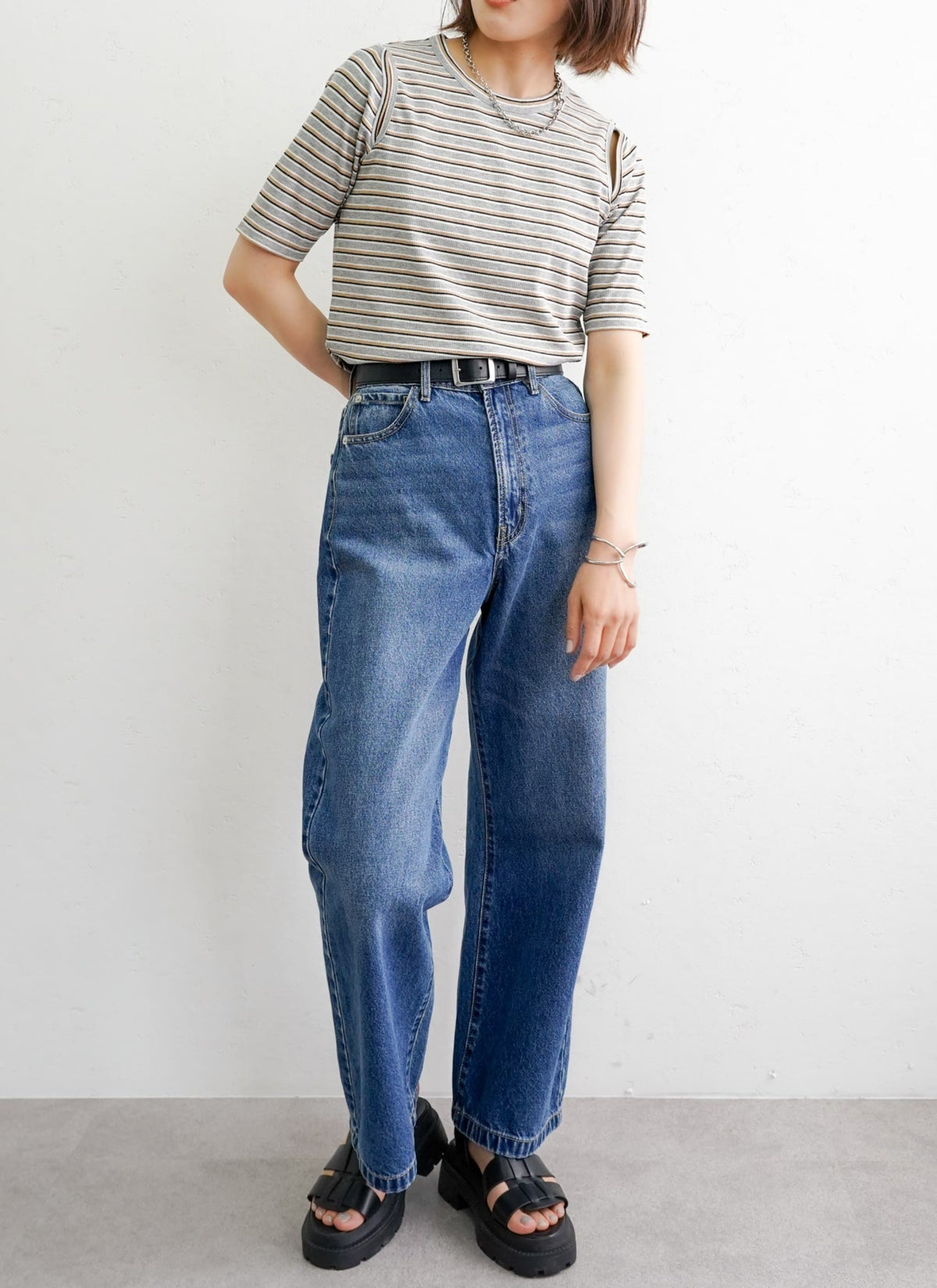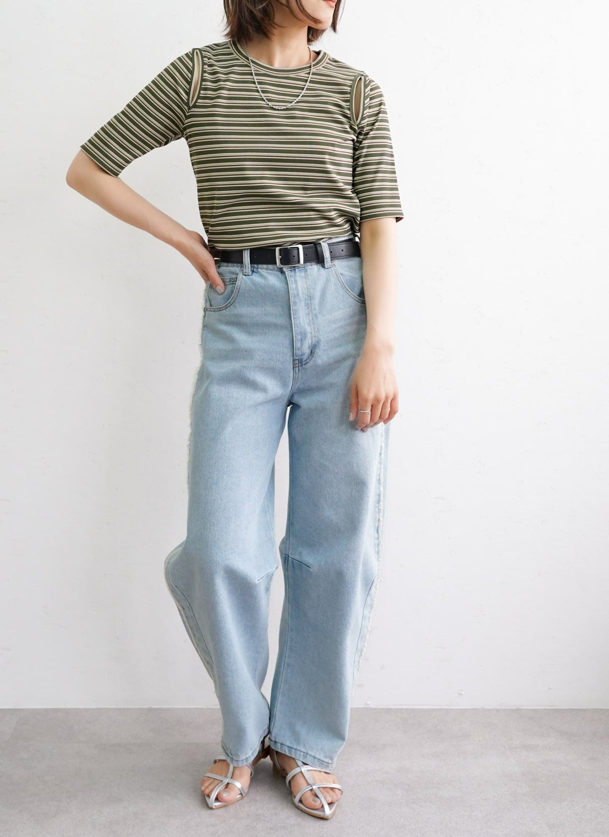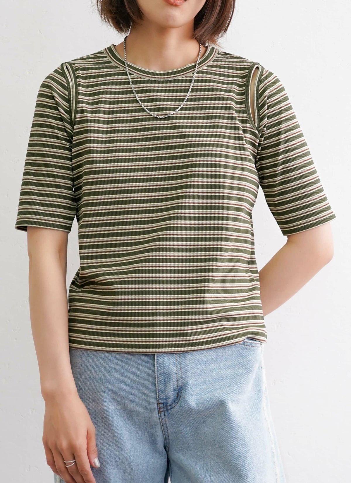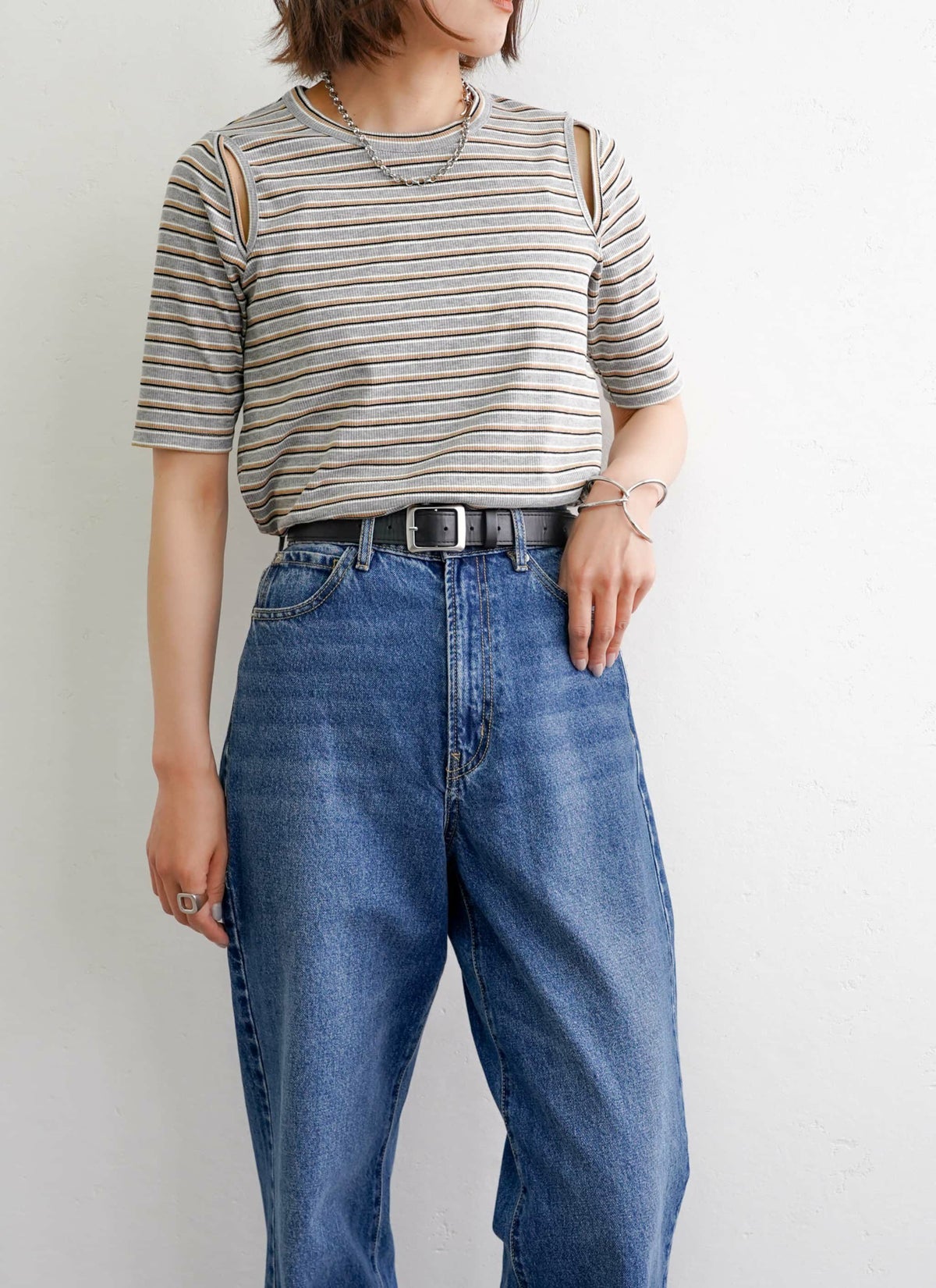 revoam【一枚でコーディネートの主役に◎】 ボーダーリブカットアウトプルオーバー
