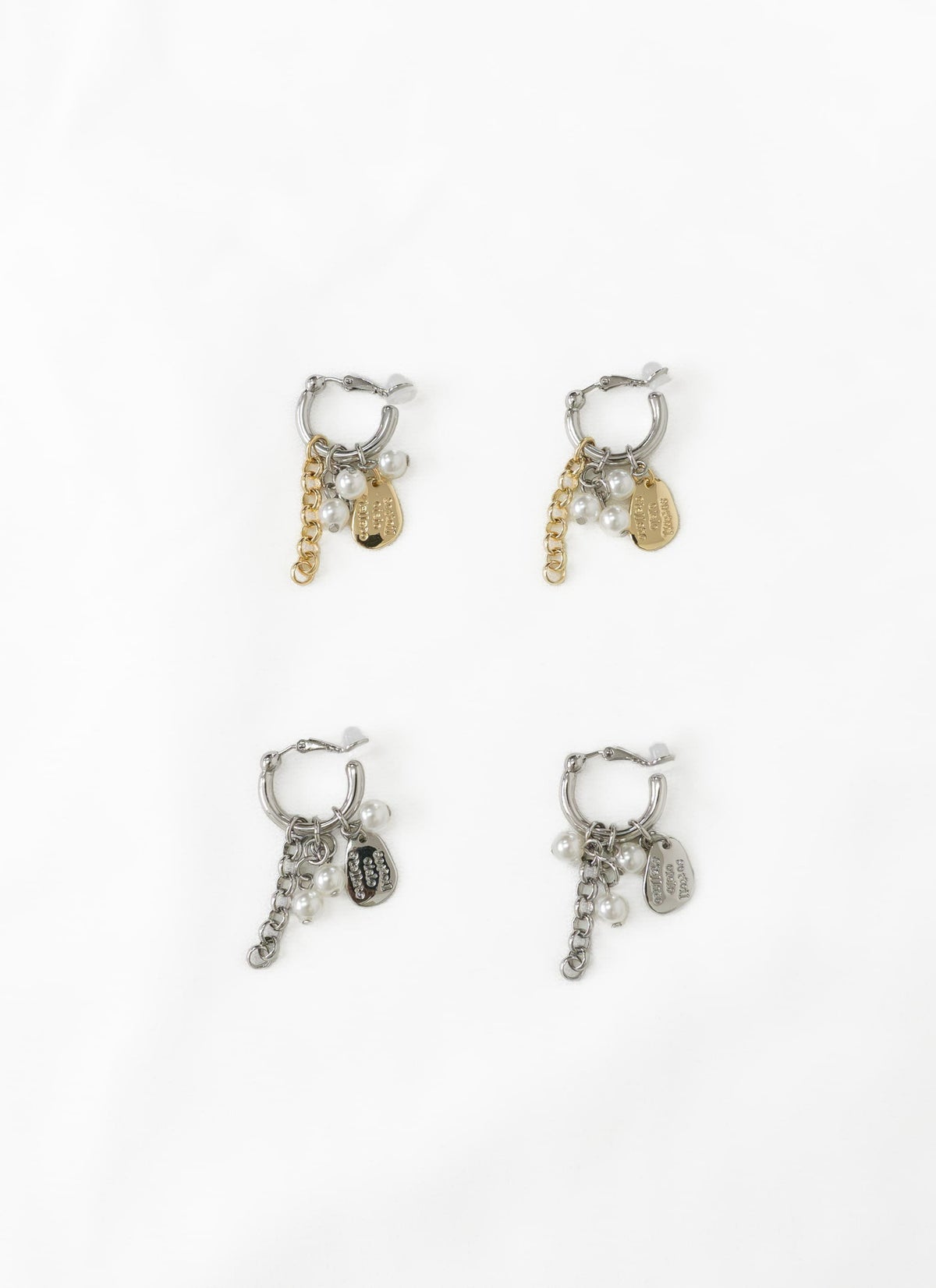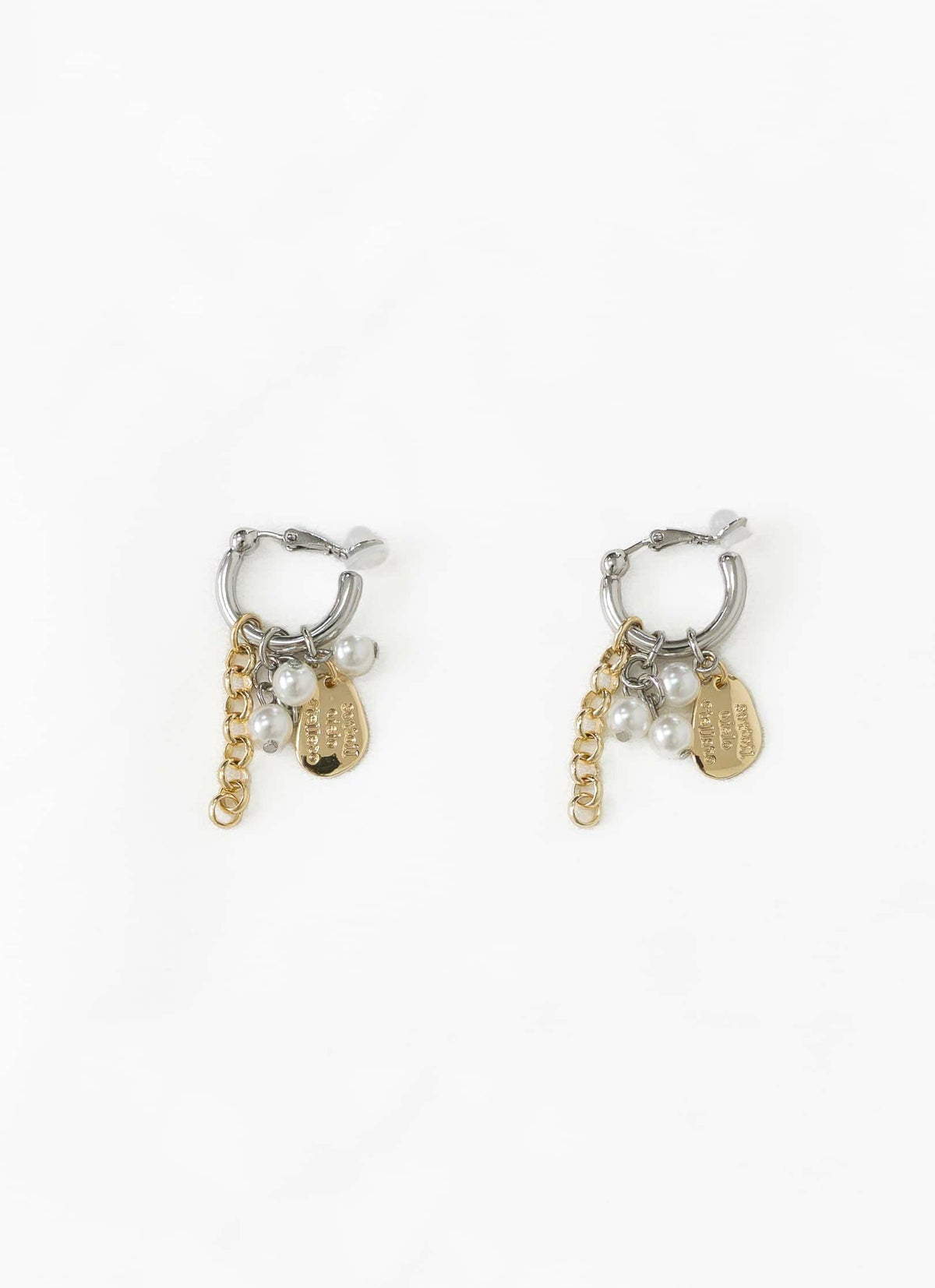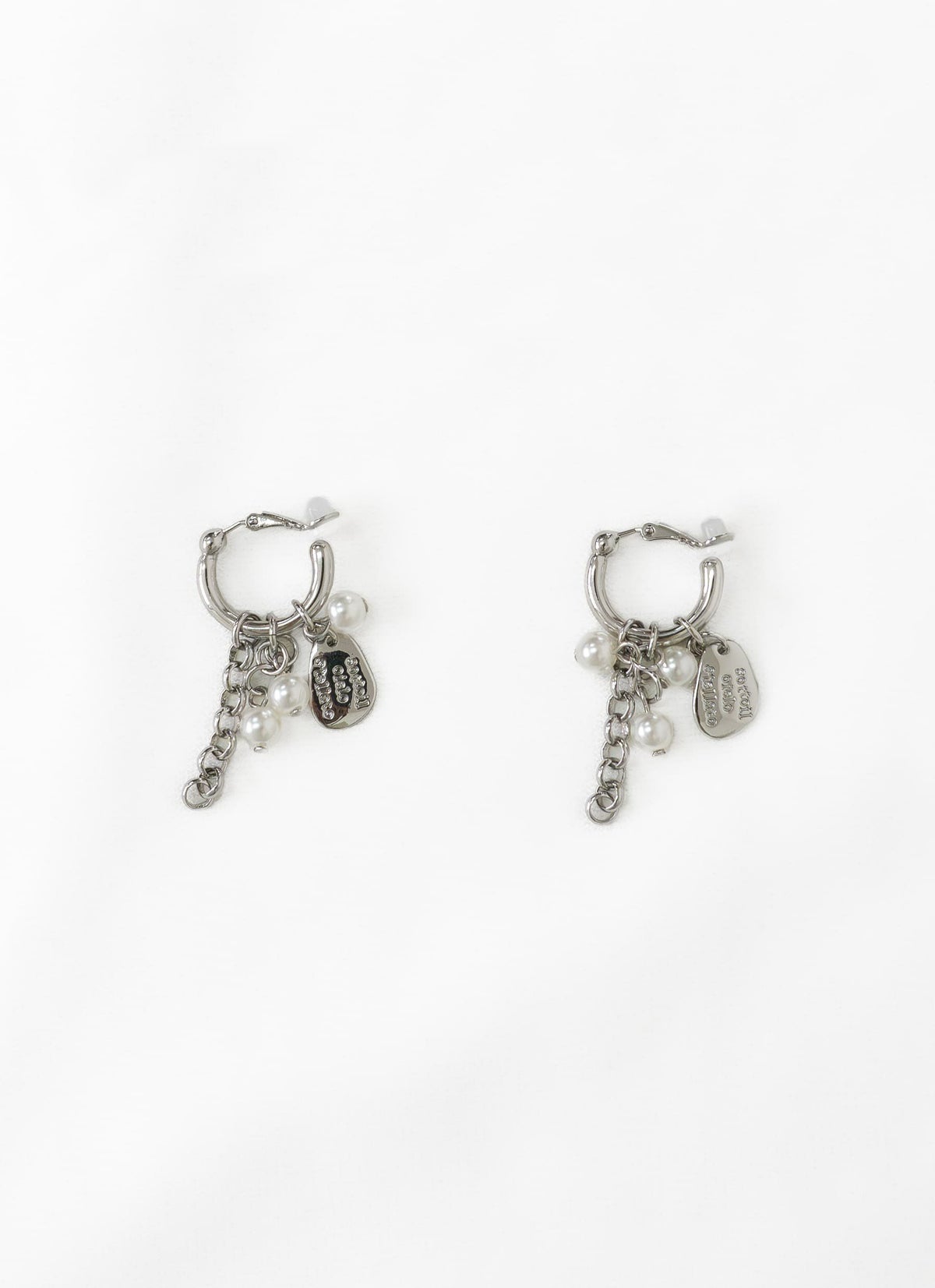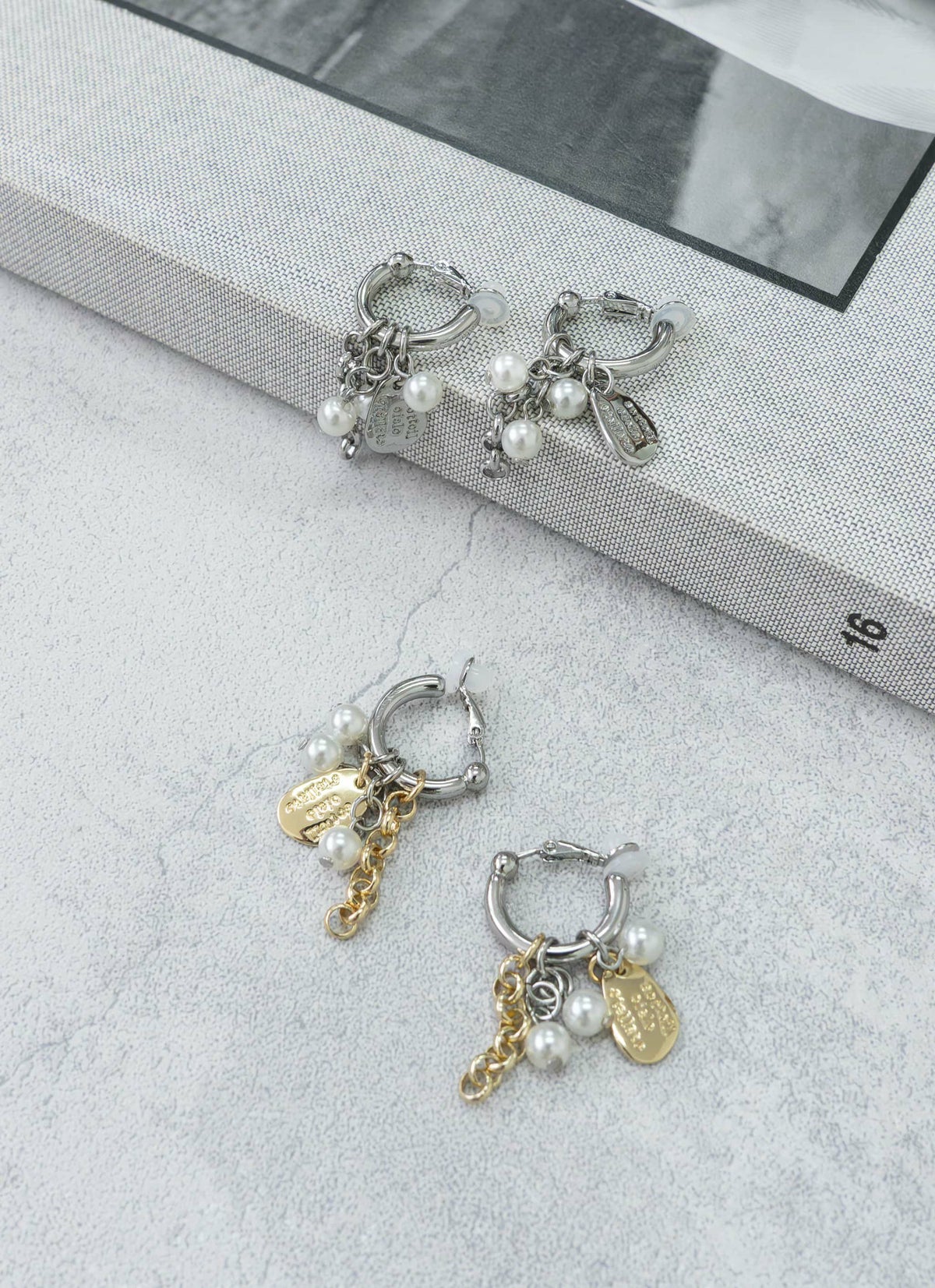 revoam【コイン風のプレートがポイントのイヤリング】 コインプレートチャームパールイヤリング