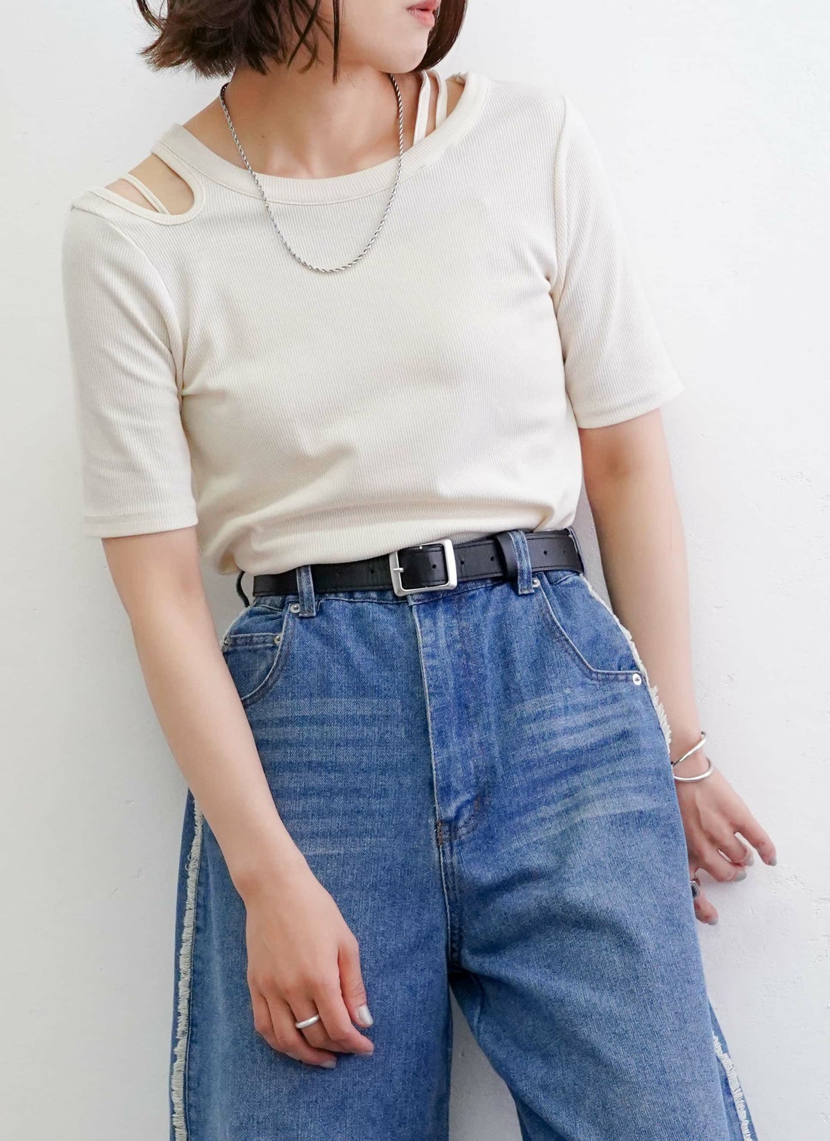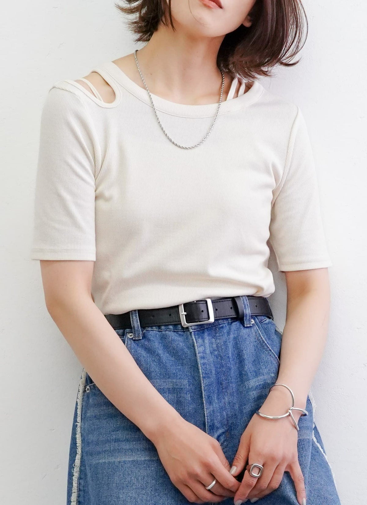 revoam【一枚でコーディネートの主役になる存在感。】 リブカットアウトプルオーバー