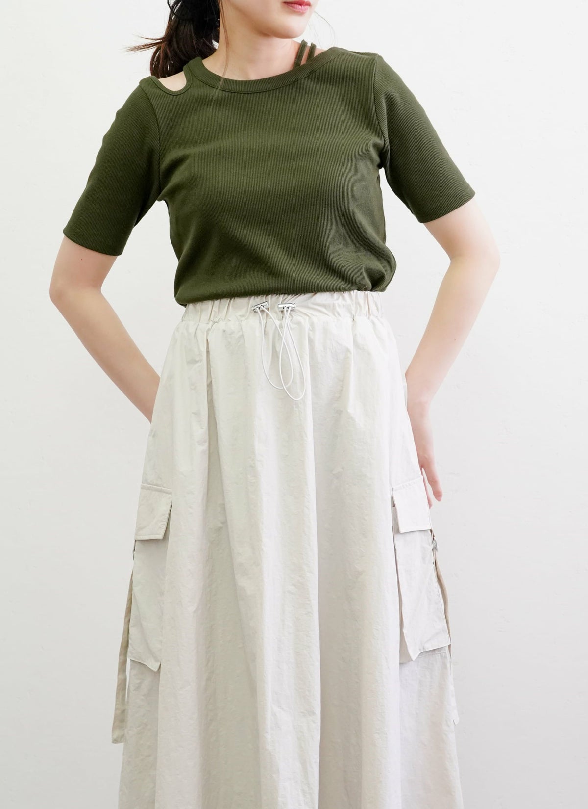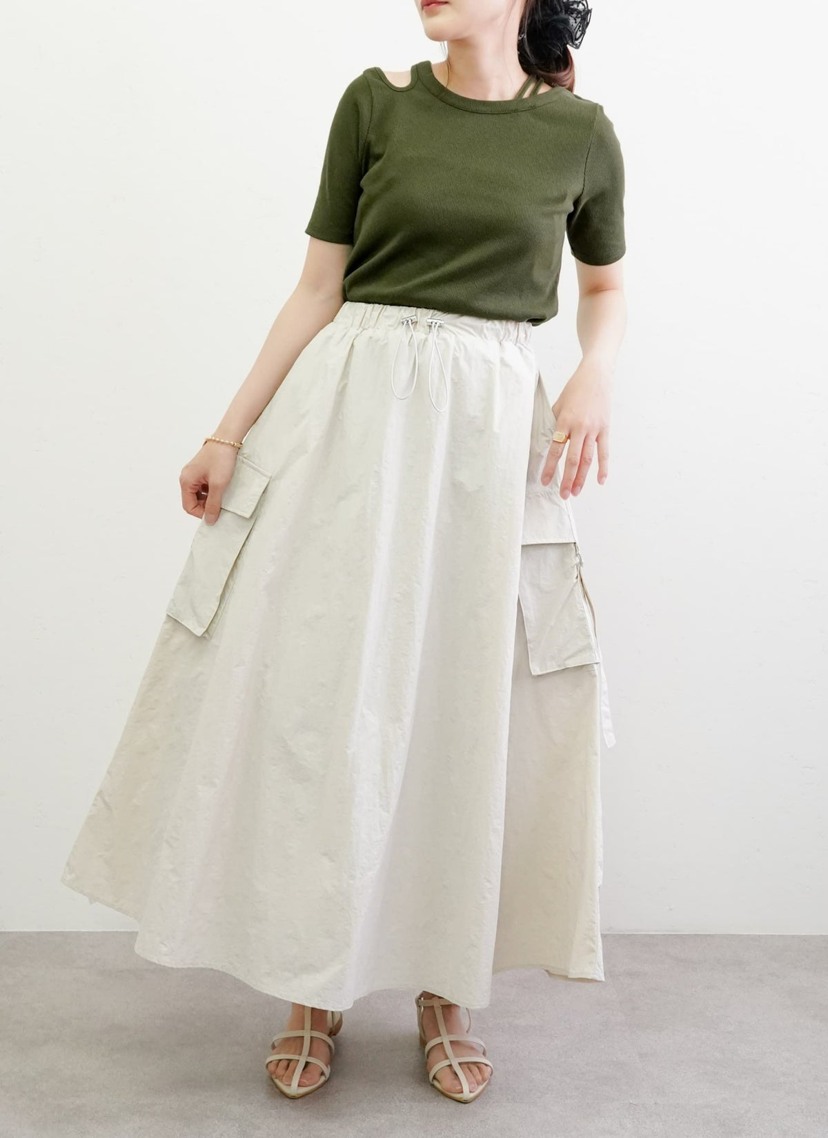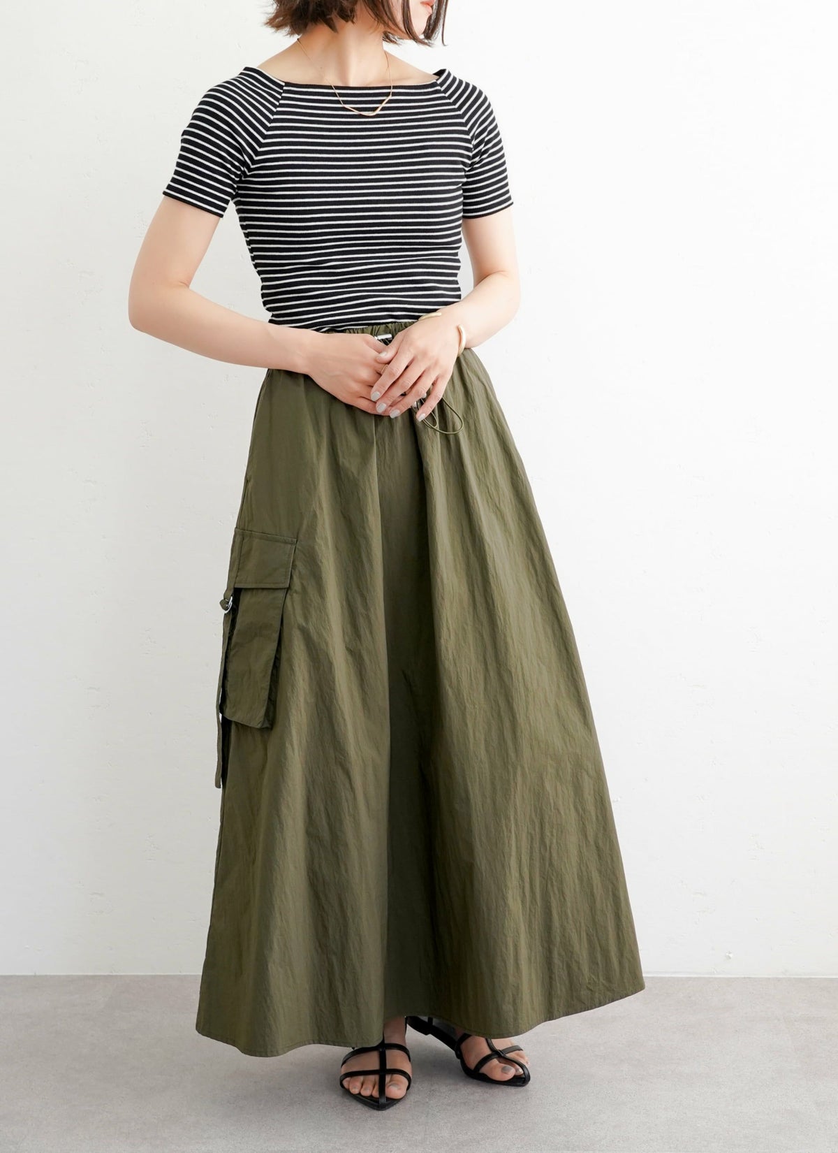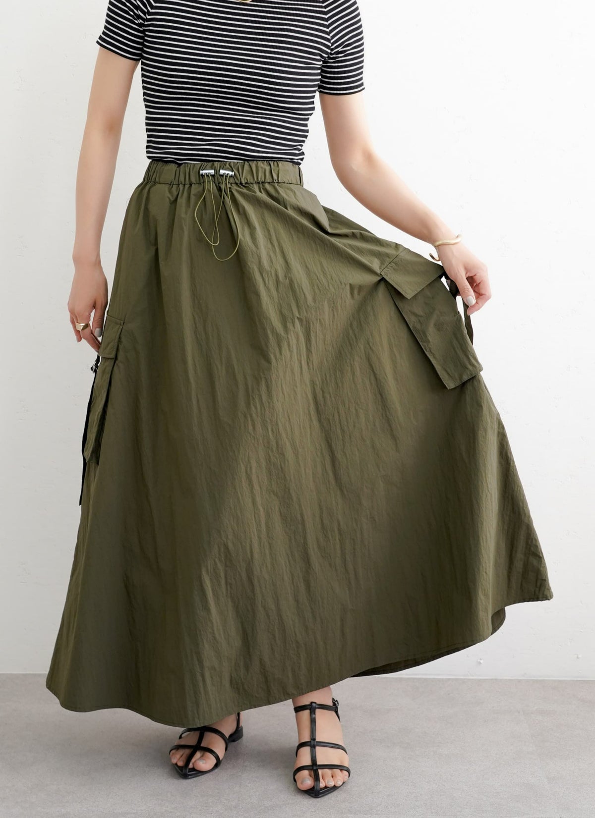 revoam【スタイルアップが叶うギャザースカート】 ドロストカーゴフレアスカート