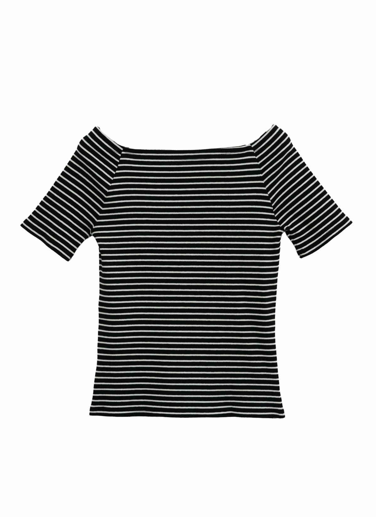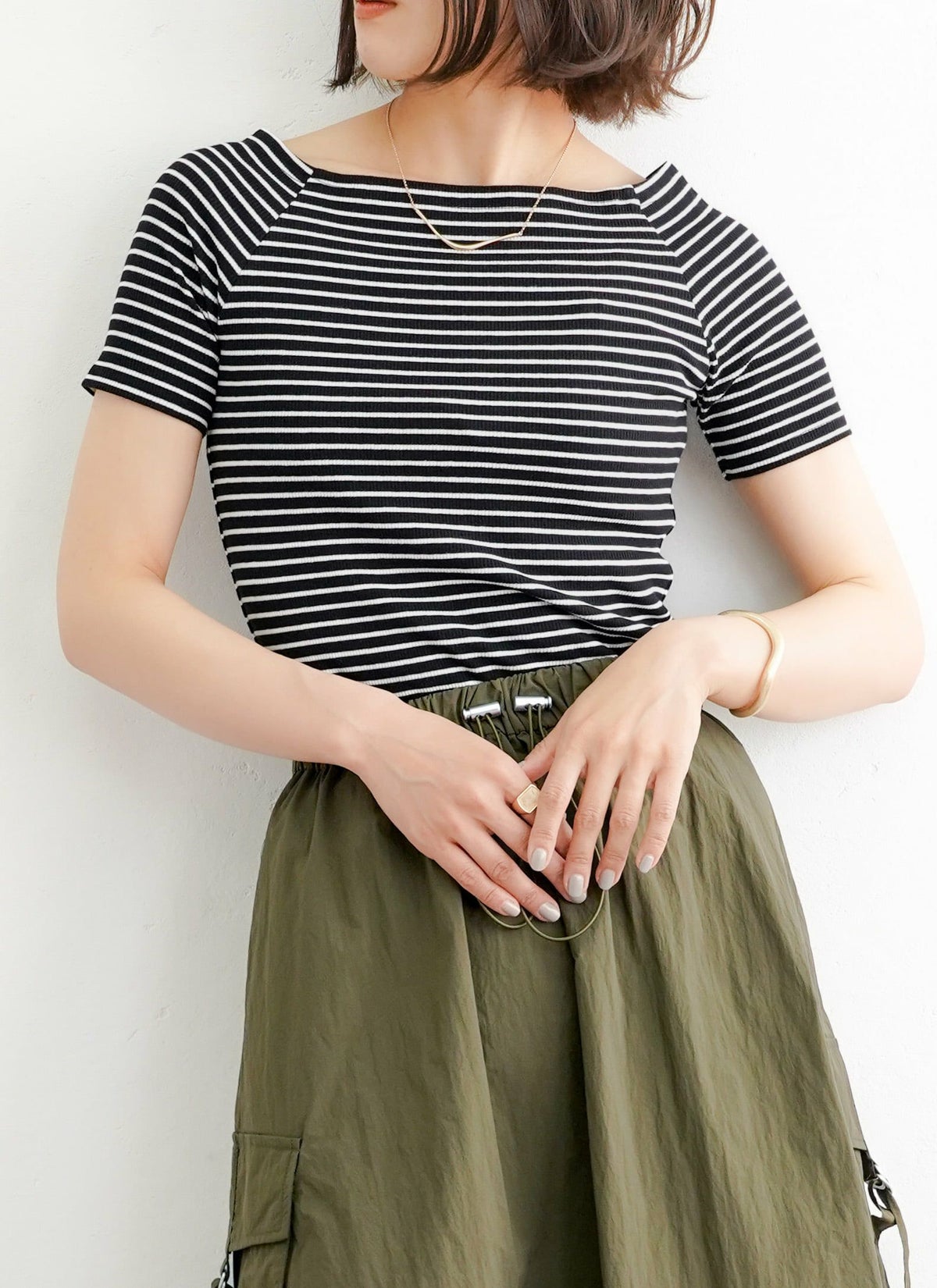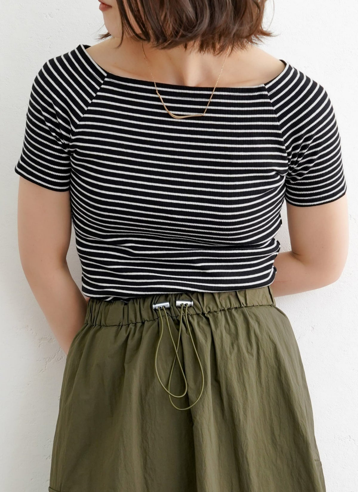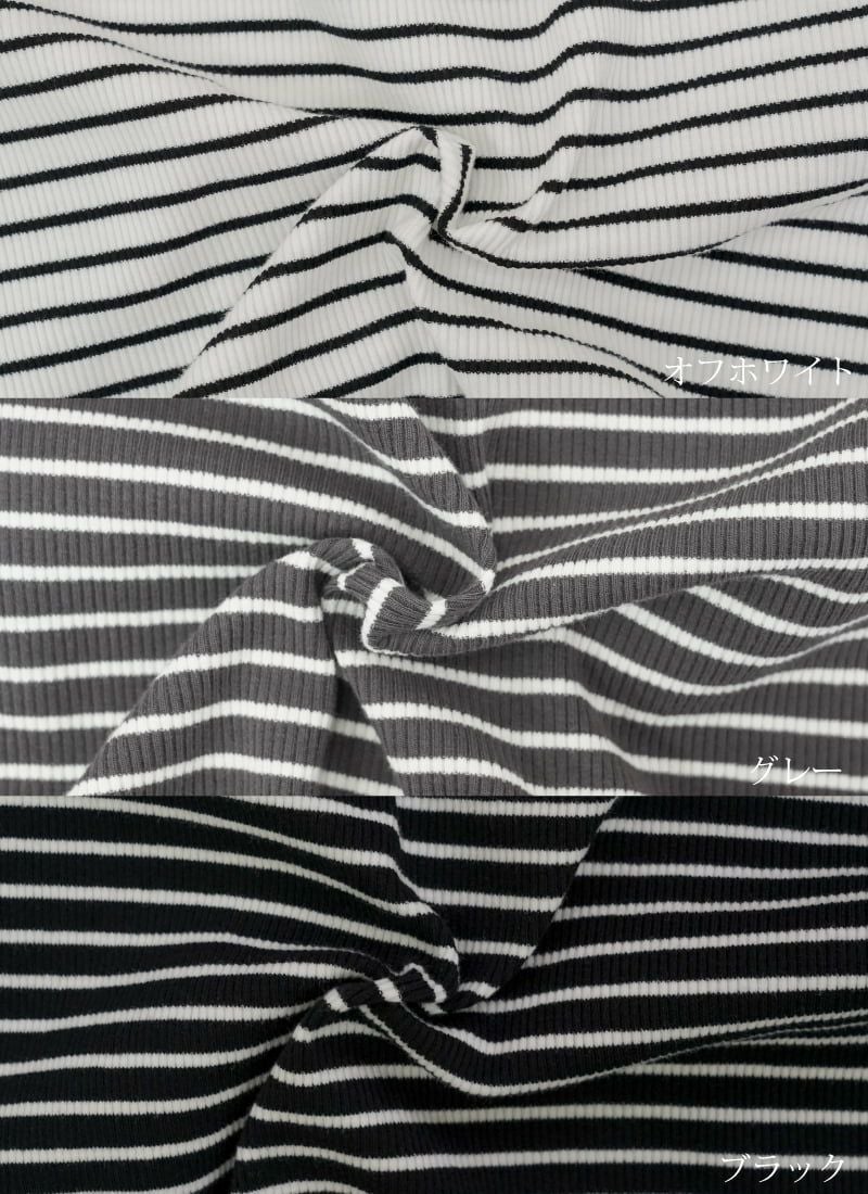 revoam【華奢な雰囲気を演出するボーダートップス】 ボーダーリブオフショルトップス