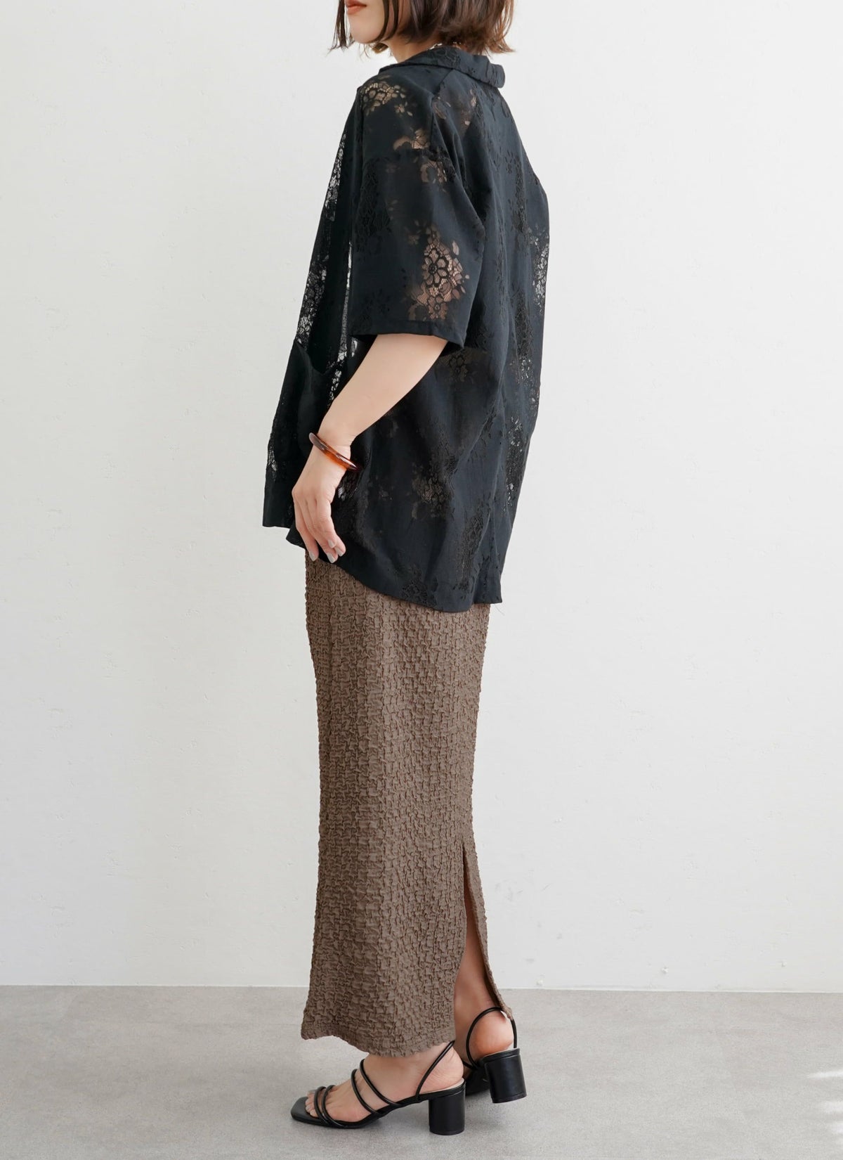 revoam【一枚で大人フェミニンを演出するレースシャツ】 レースハーフスリーブシャツ