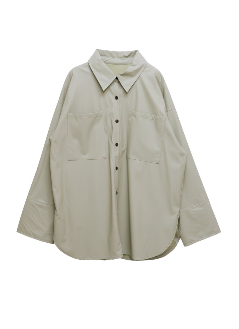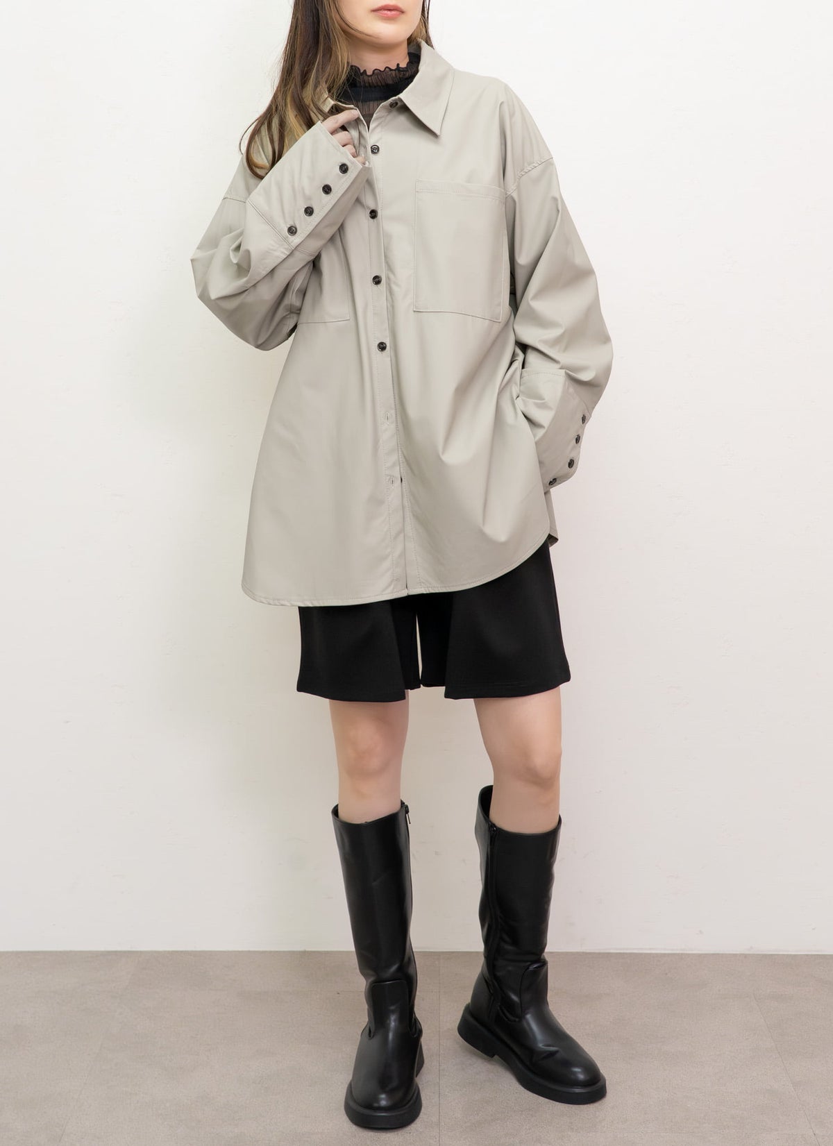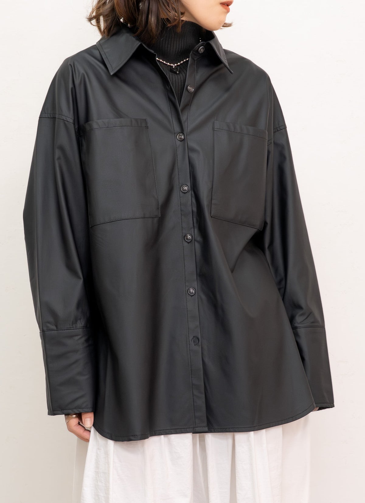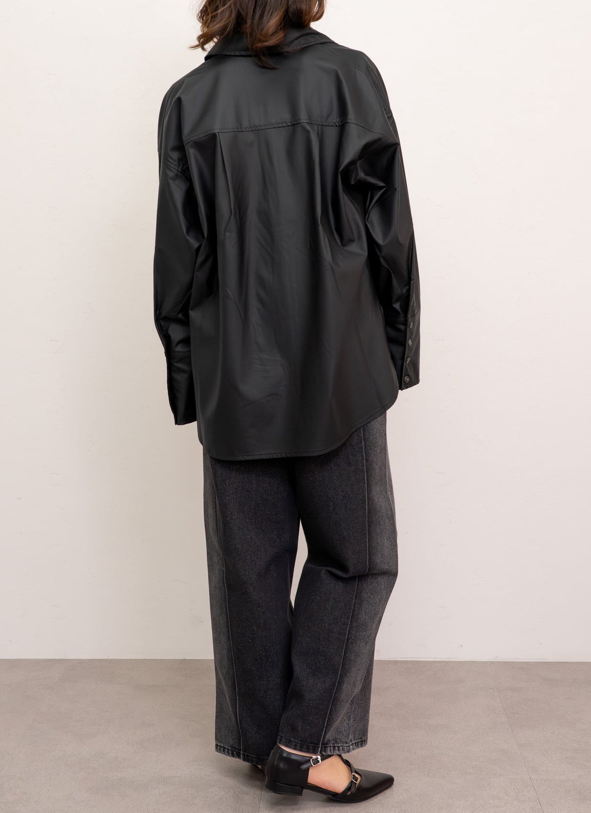 revoam【レザーの気品を、日常に。洗える贅沢を纏うビッグシャツ】 ウォッシャブルフェイクレザービッグシャツ